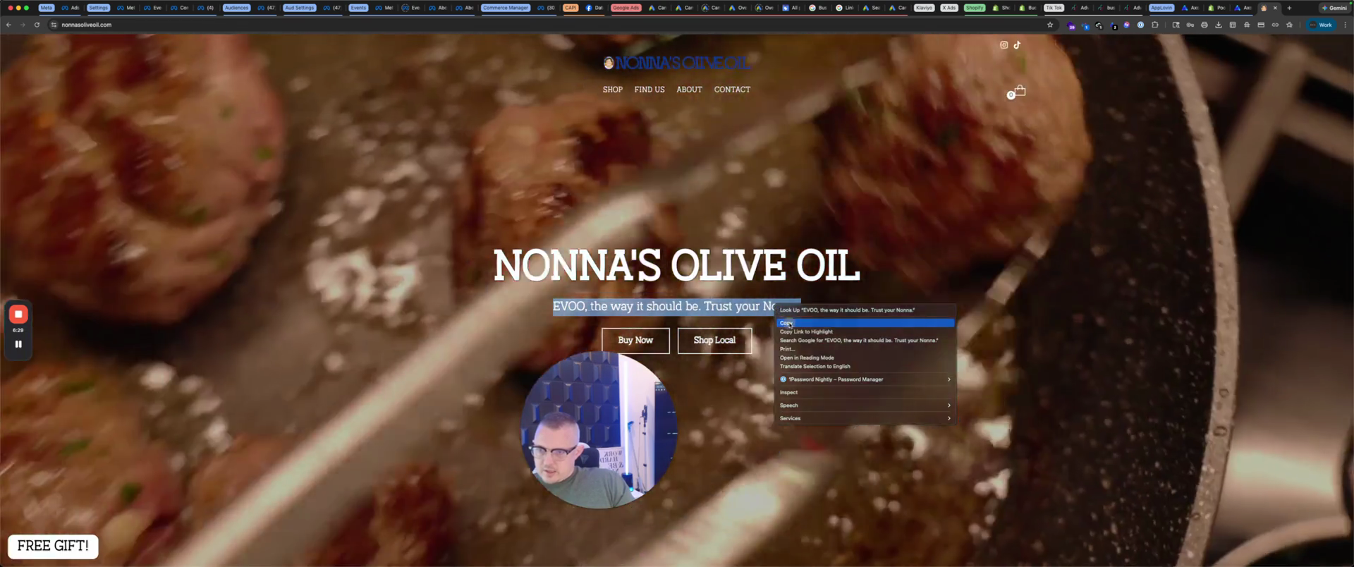 Nonna, what are you doing? Today, I am going to make a meatloaf for my grandchildren. Once the video is finished, it will display, "Actual quality olive oil straight from Italy," and we will save it as Live.