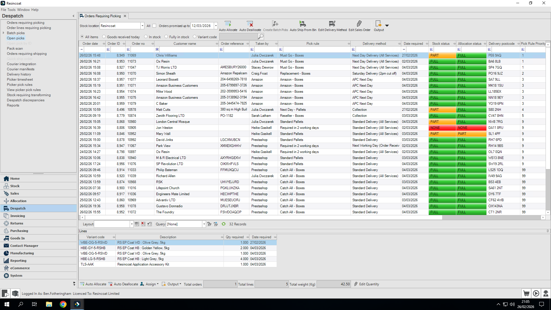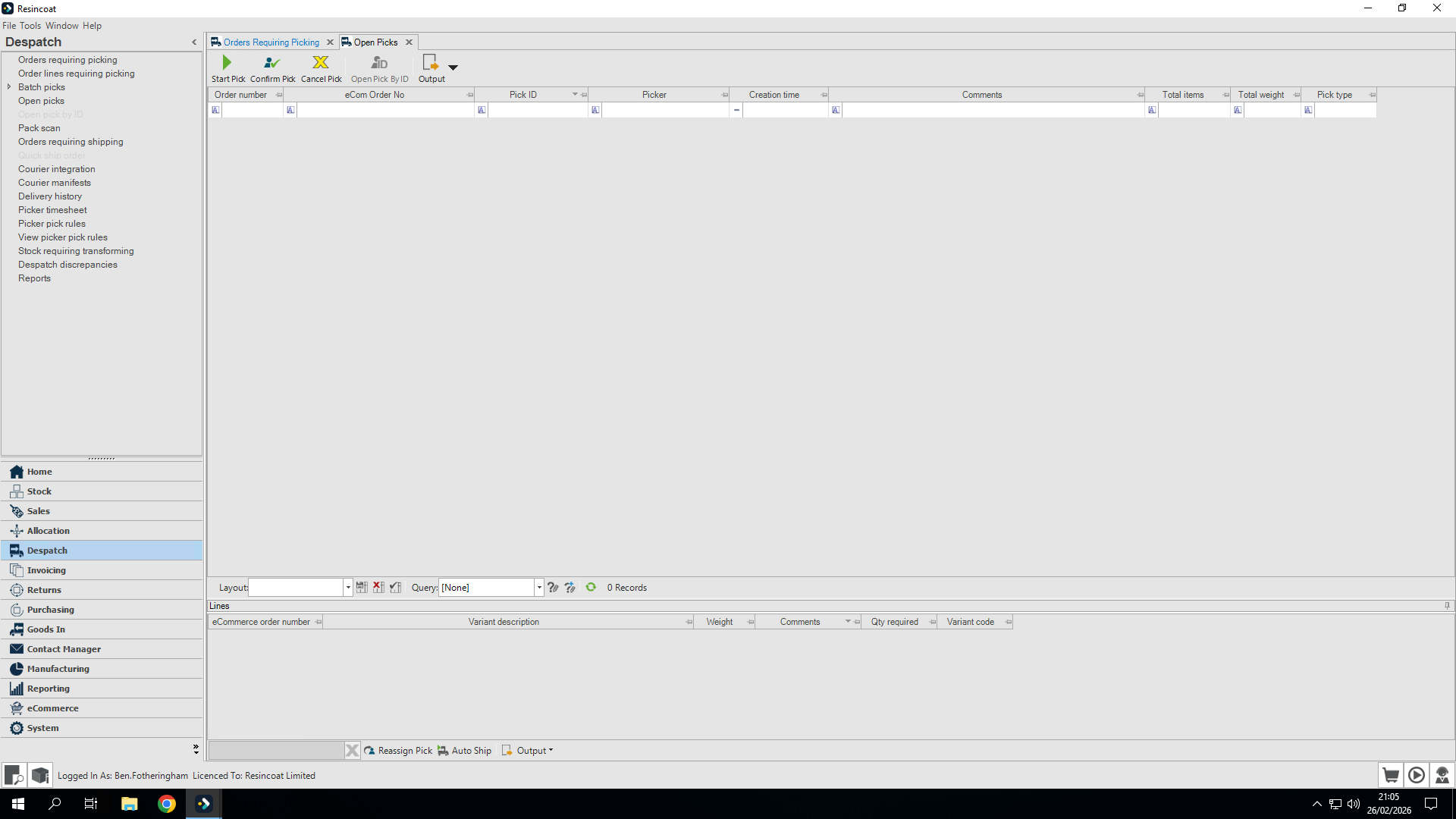 Let's look at how to cancel an order that is currently being picked by a warehouse team member. First, go to the dispatch and open the picks section.