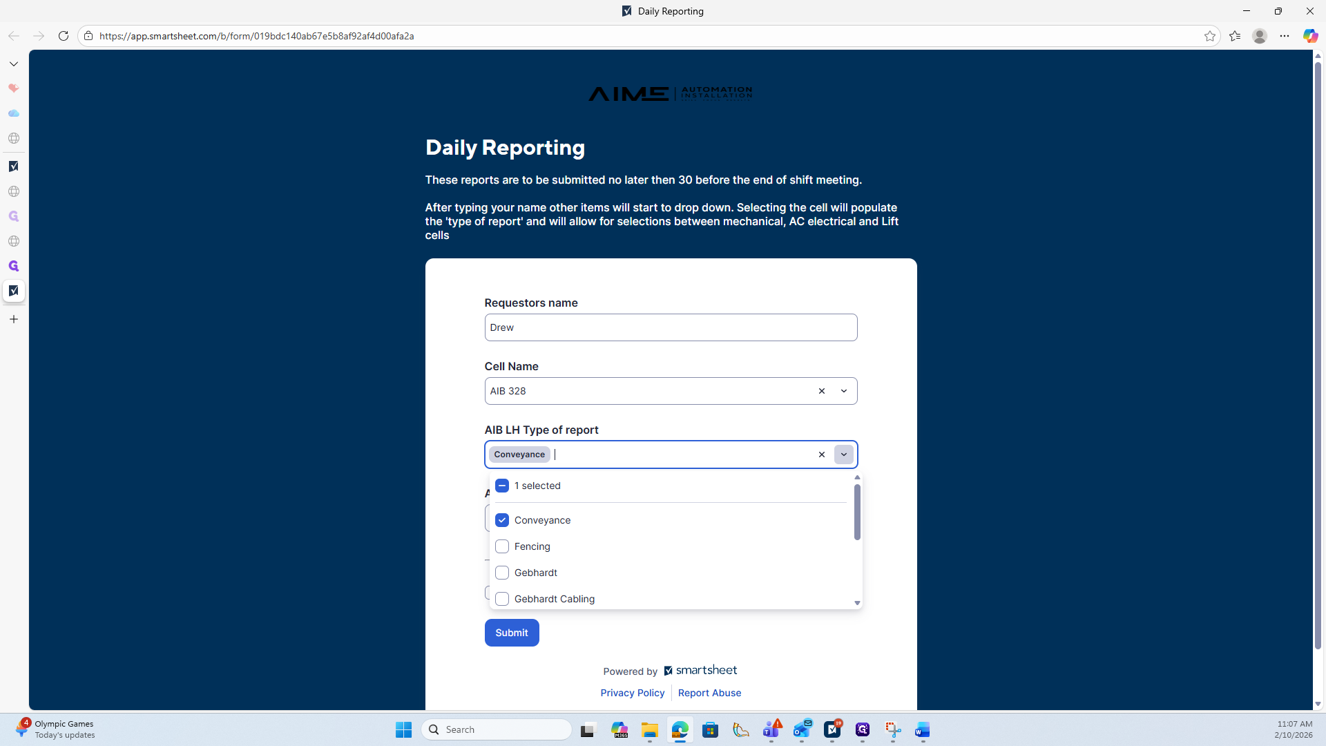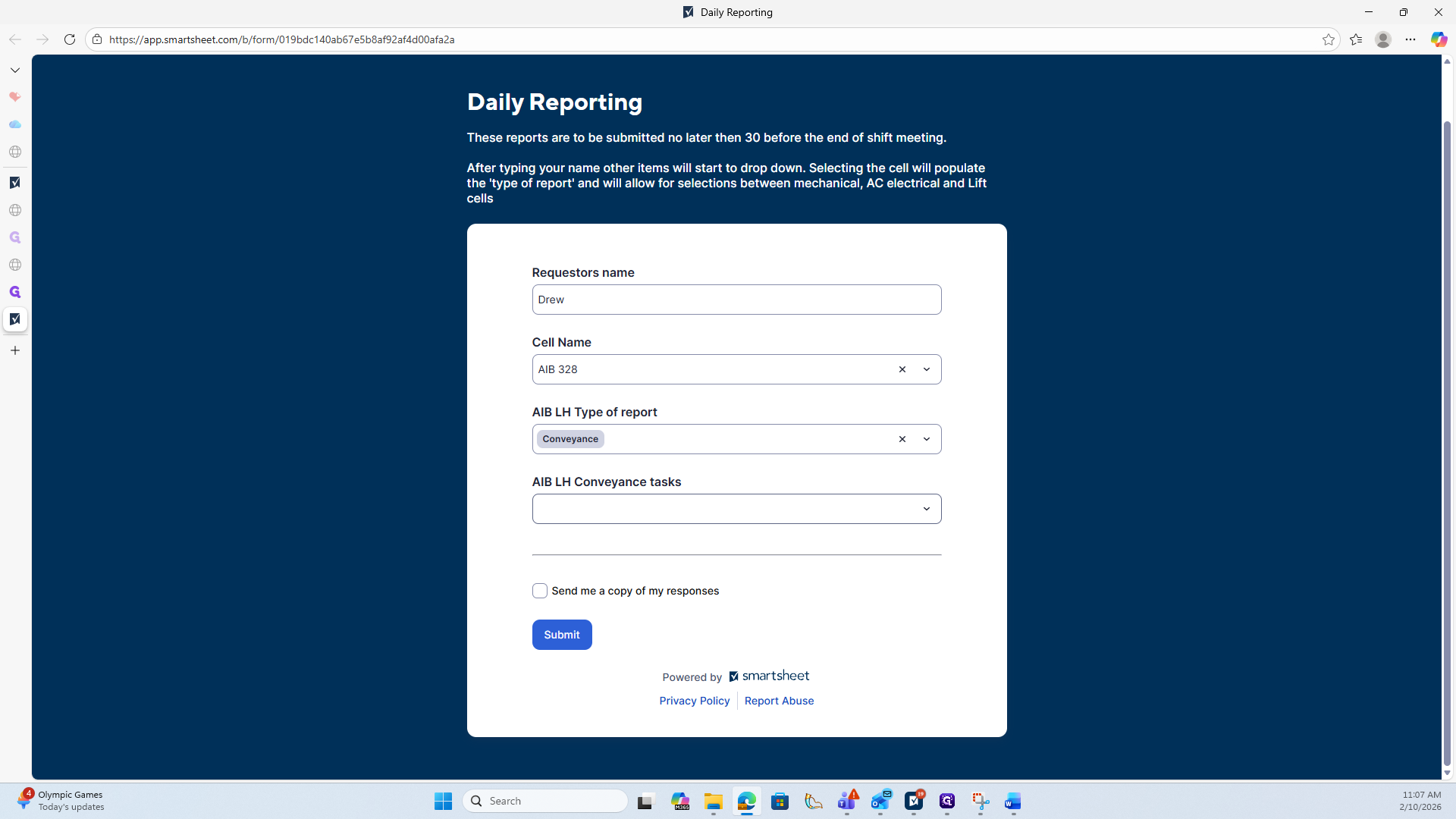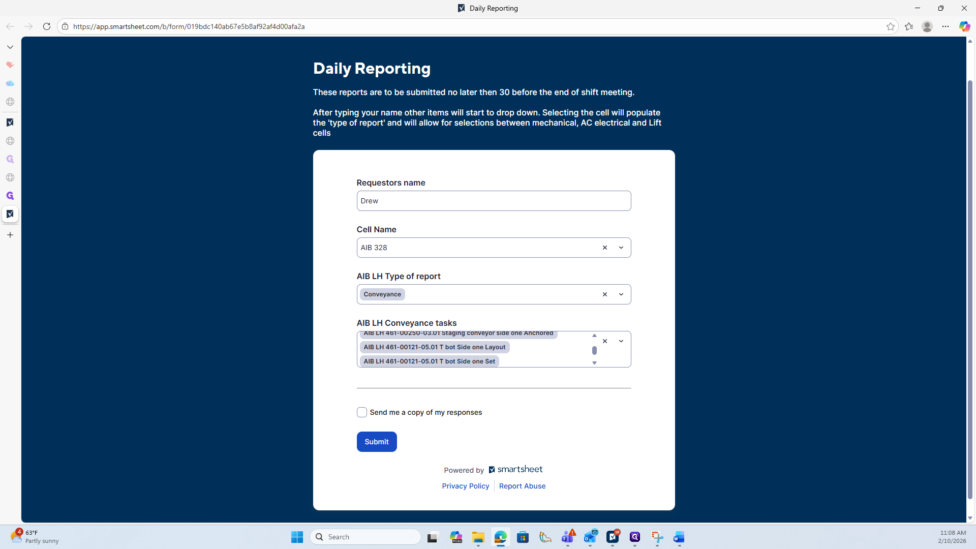 Once all completed tasks have been selected, go to the Submit area below.