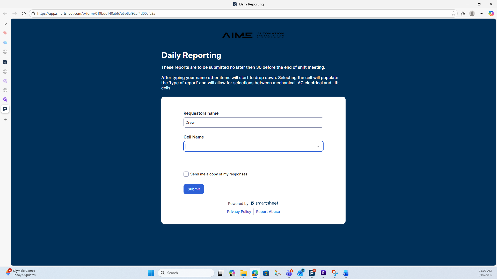 In this video, I will show you how to complete and modify a cell mechanical report. Each site will have a printed sheet with a QR code. You can scan it to fill out any required report. Once scanned, you will arrive at this page to complete the Adapt to Cell Mechanical Report.