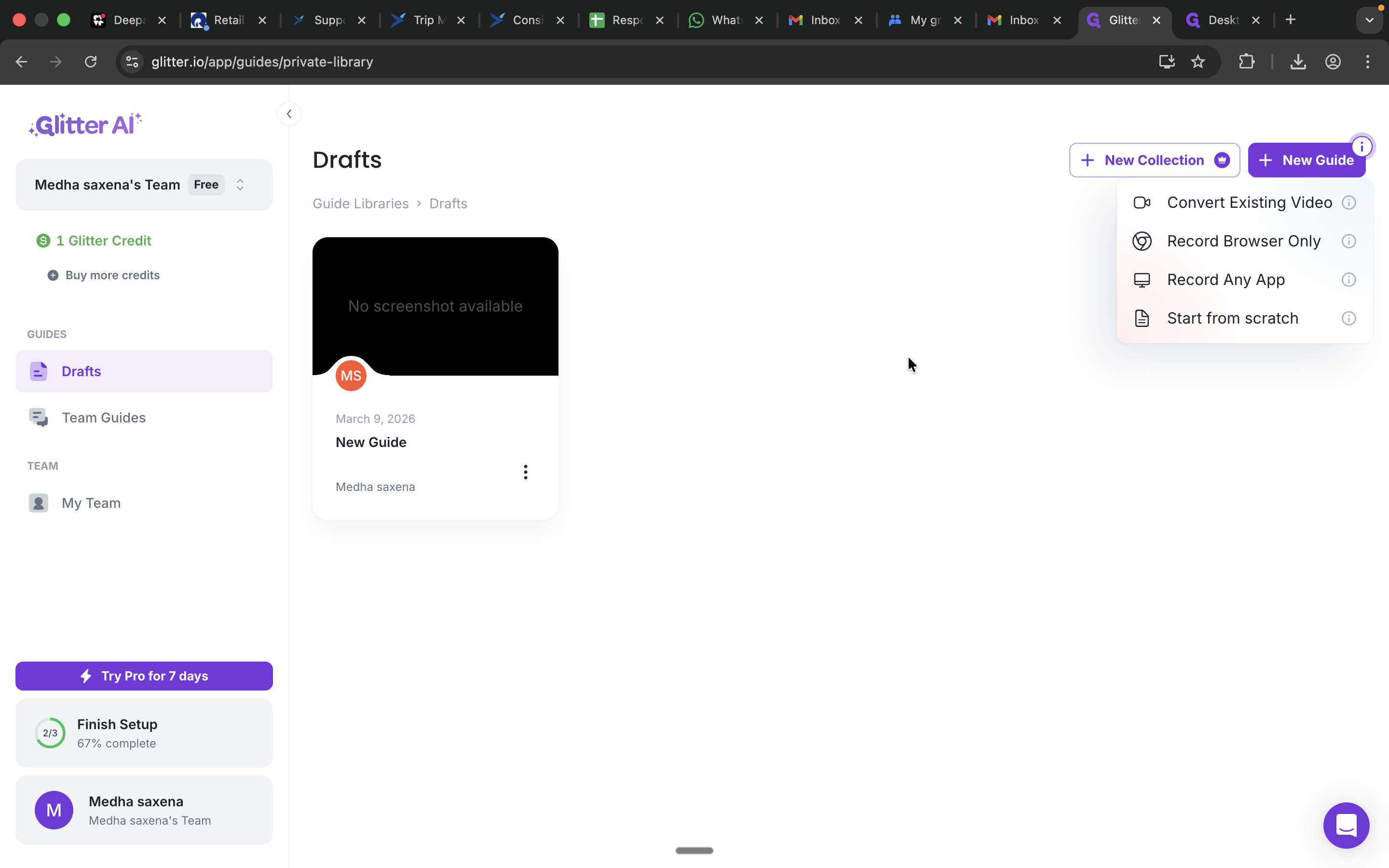 In this guide, we'll learn how to create a document using Glitter.ai. We will cover the steps to start a new guide, select the right template, and save your work.