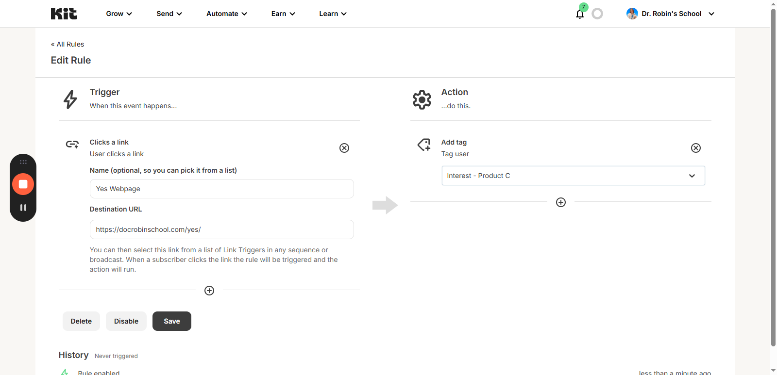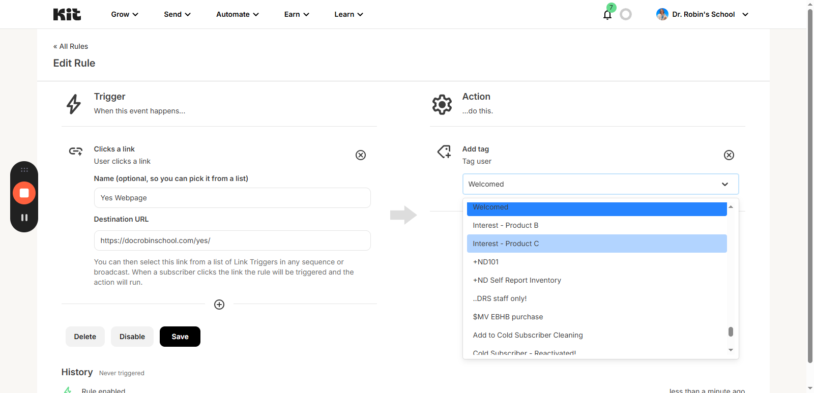 You can reuse and update this rule for different campaigns or launches by changing the tag or destination link as needed. This method is useful for managing subscriber engagement and organizing your email list.