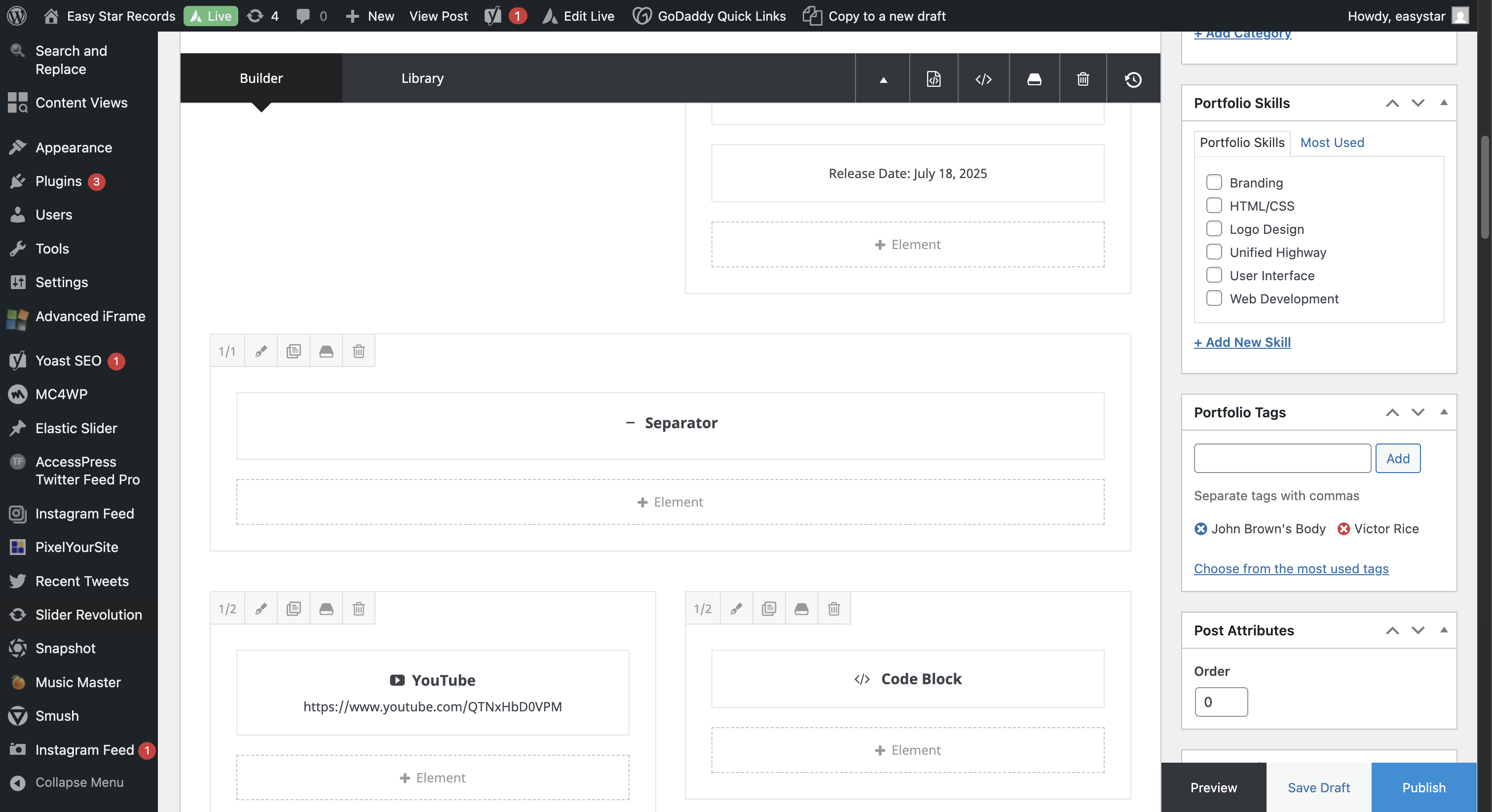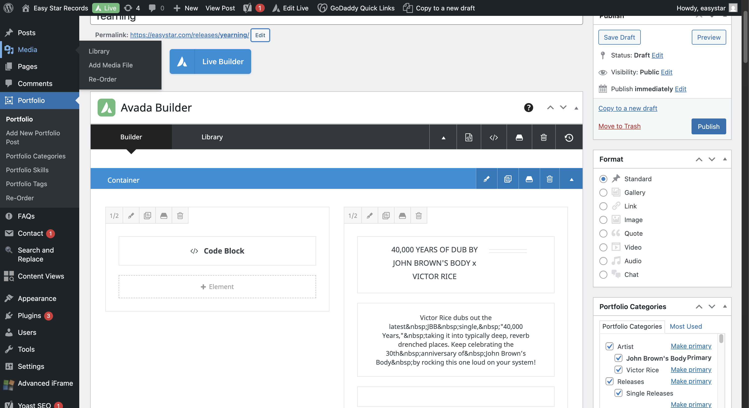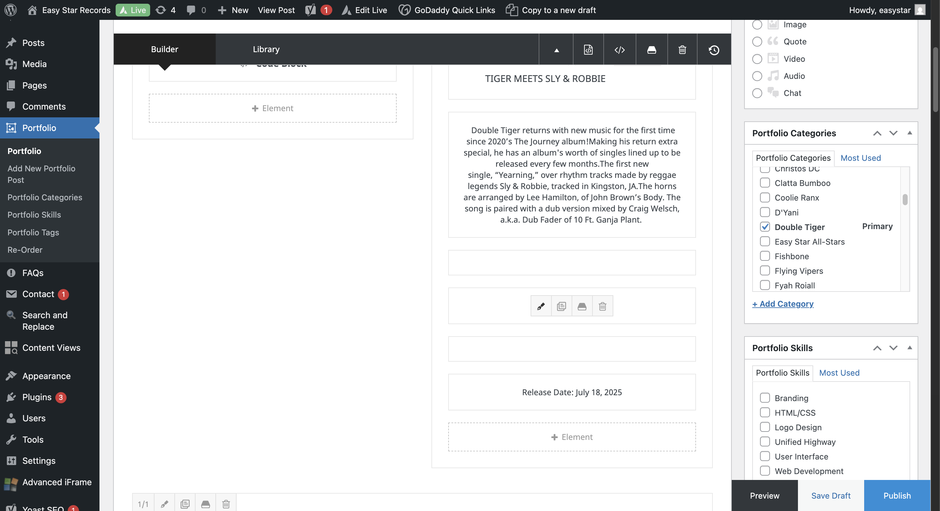 In this guide, we'll learn how to create a new release page on the EasyStar WordPress site. This process includes duplicating an existing portfolio entry, updating release details, resizing and uploading artwork, and embedding media such as YouTube and Spotify players.