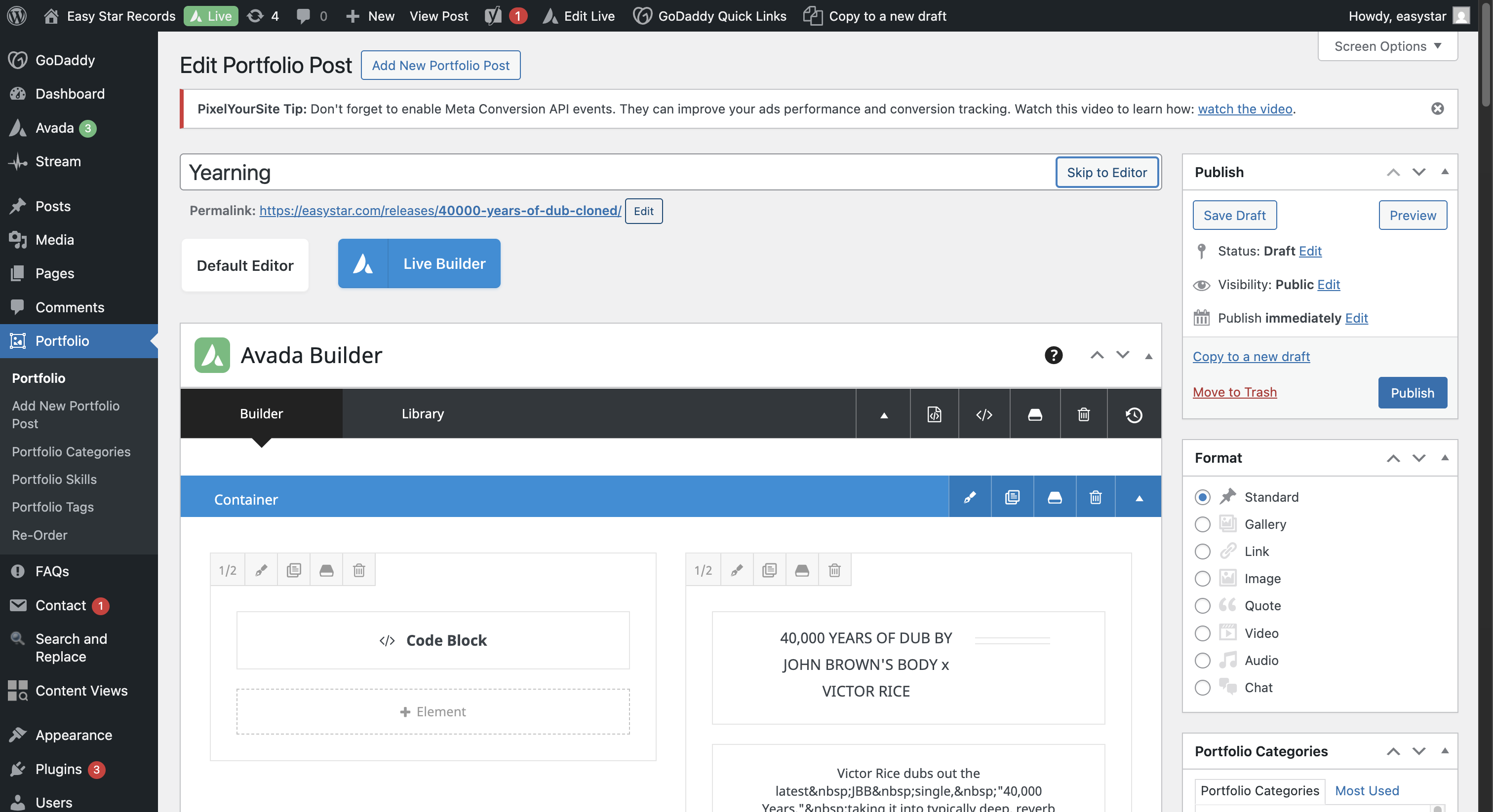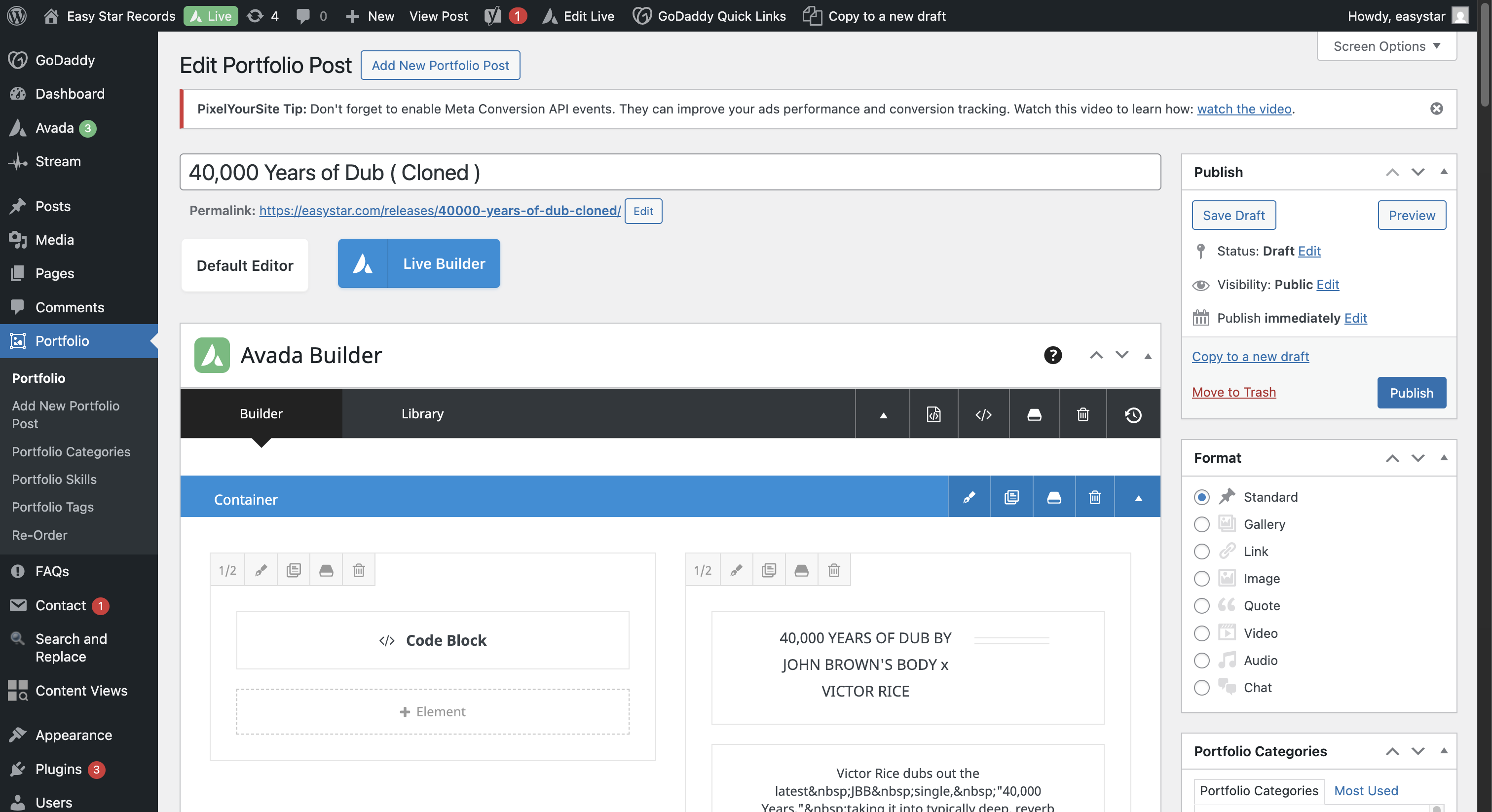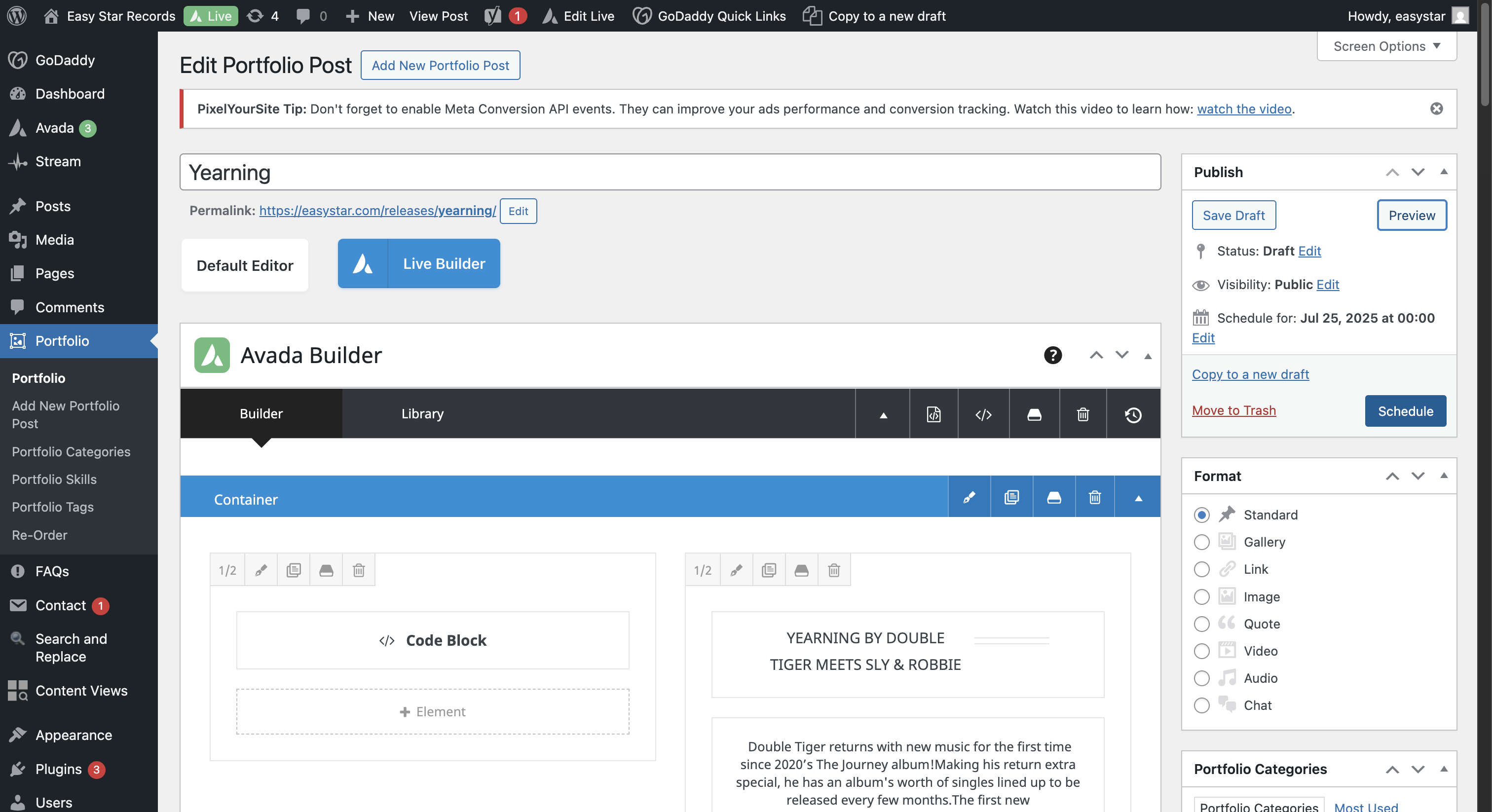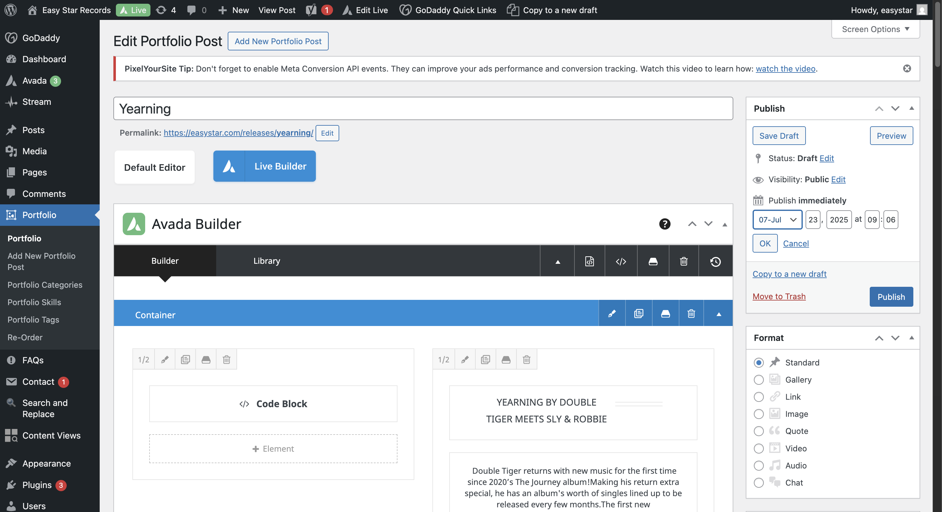In this guide, we'll learn how to create a new release page on the EasyStar WordPress site. This process includes duplicating an existing portfolio entry, updating release details, resizing and uploading artwork, and embedding media such as YouTube and Spotify players.
