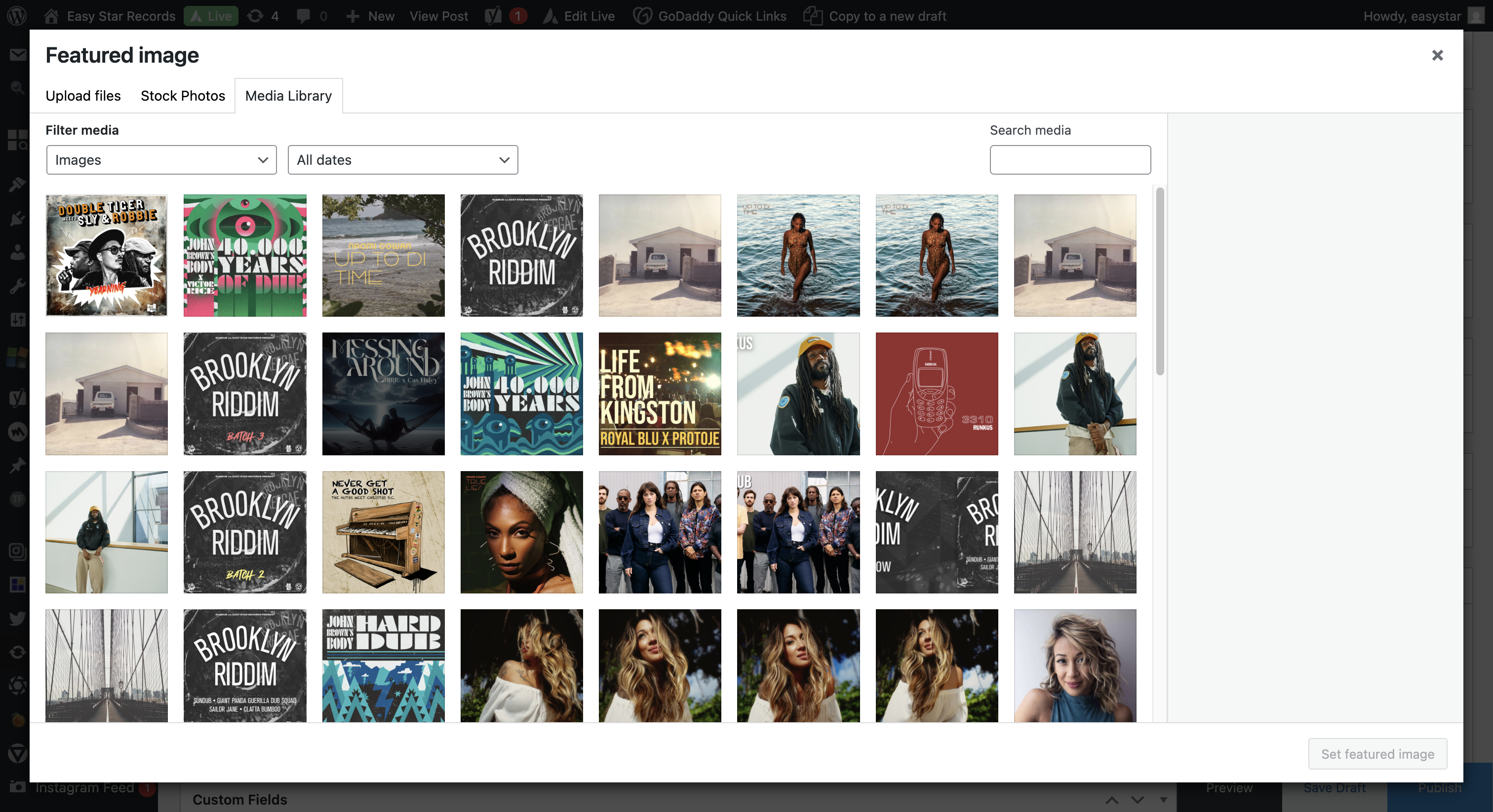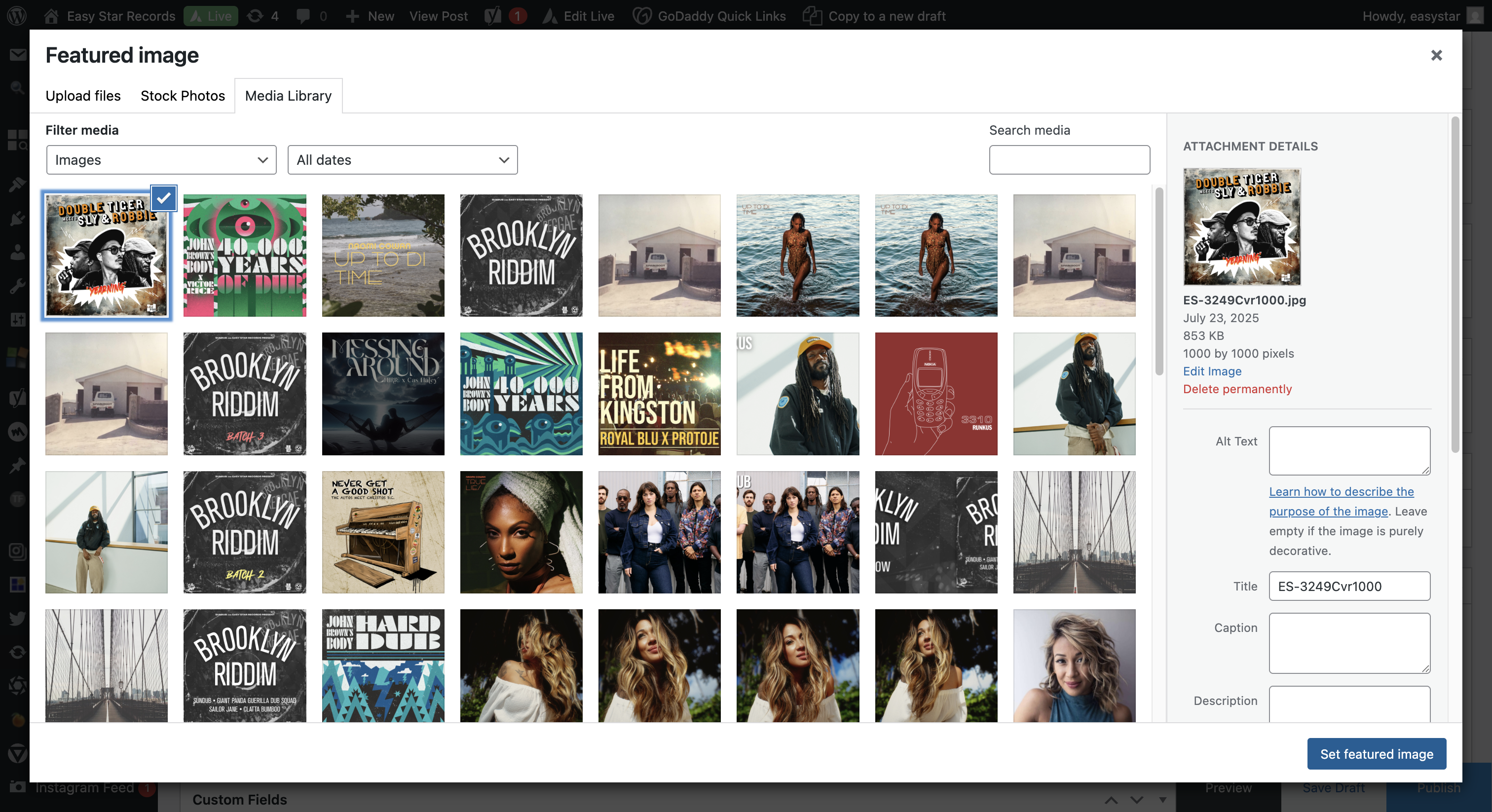 I need to update the featured image to the release artwork. This time, we can select it from the media library.