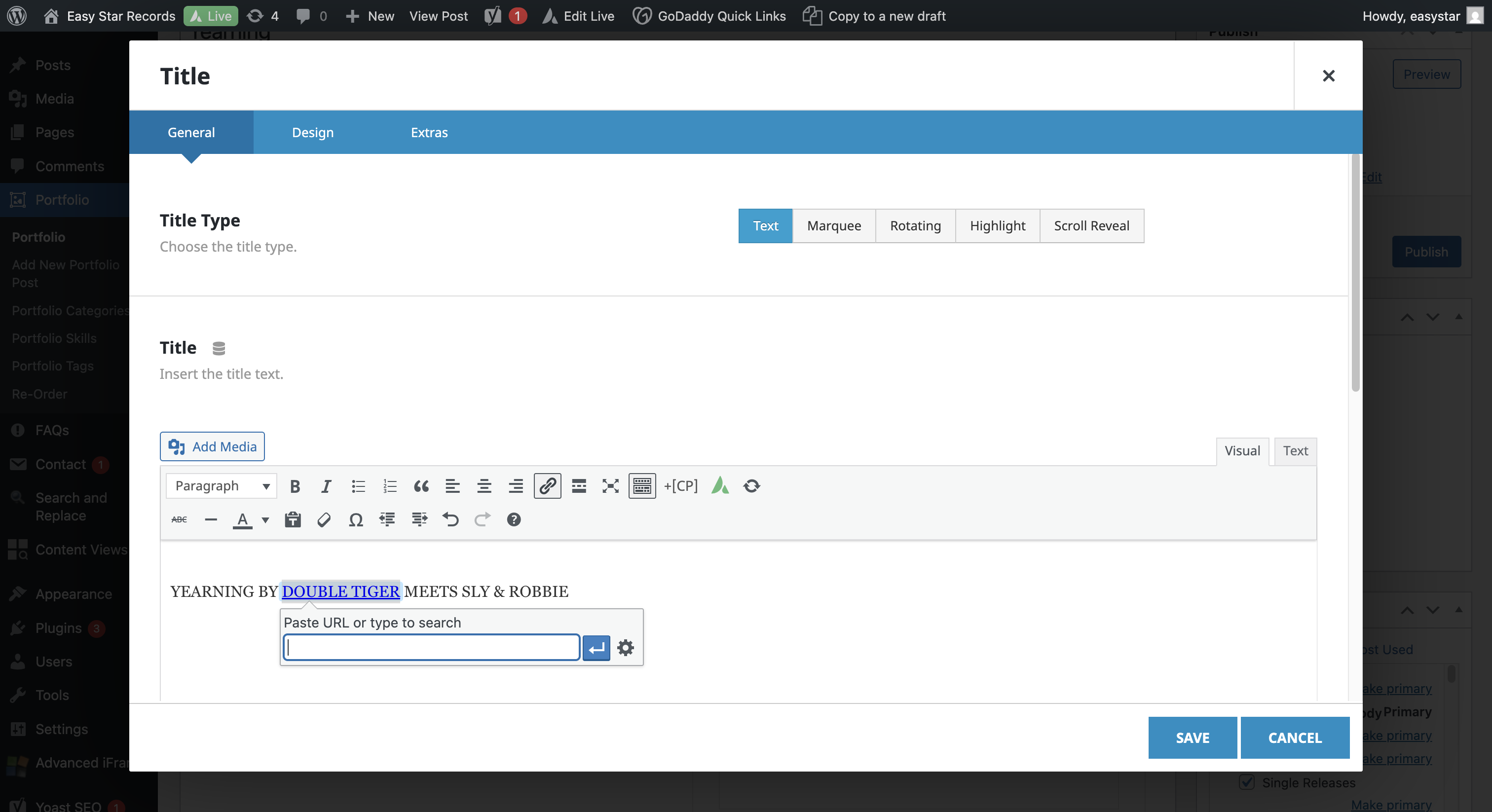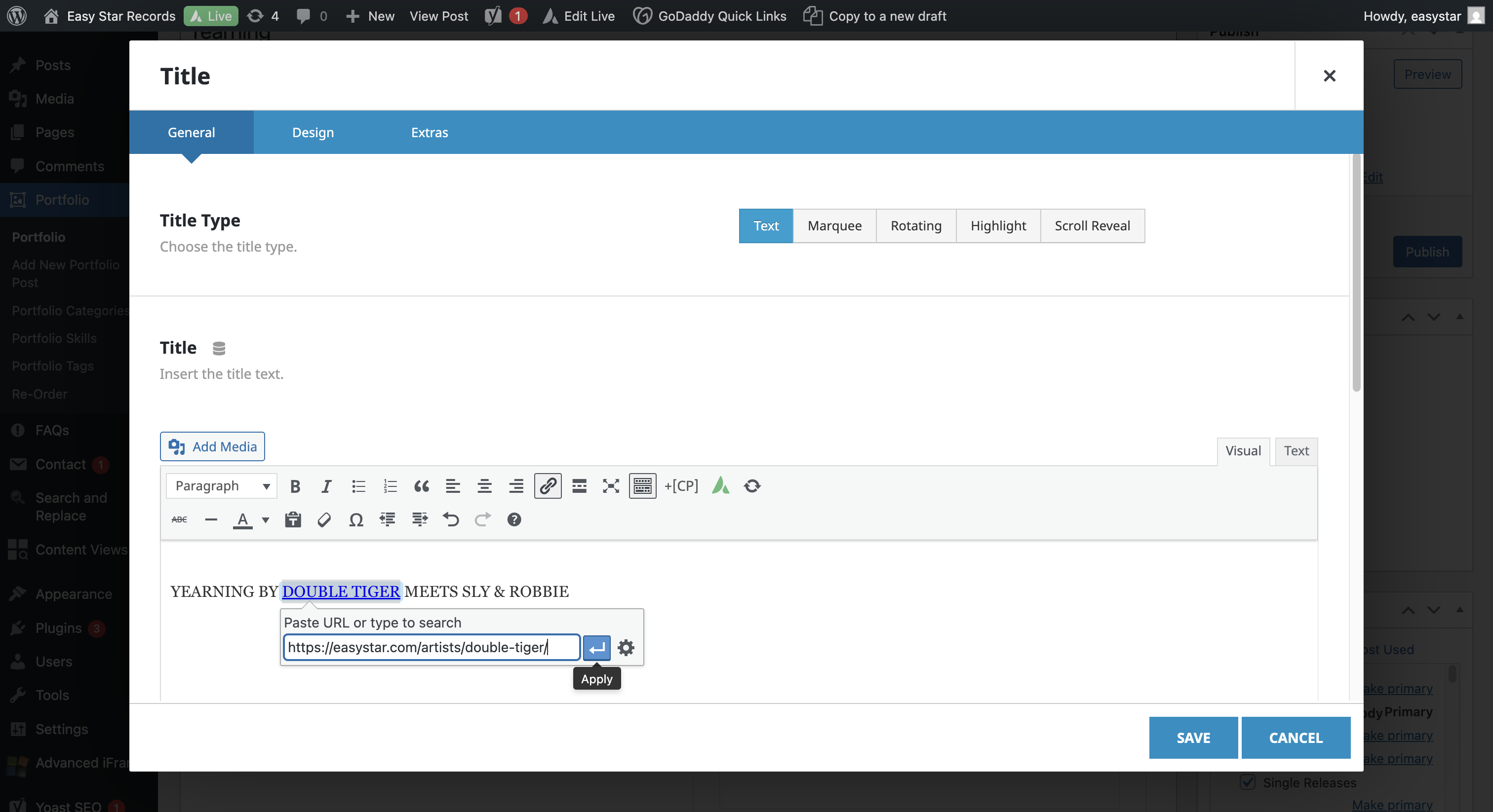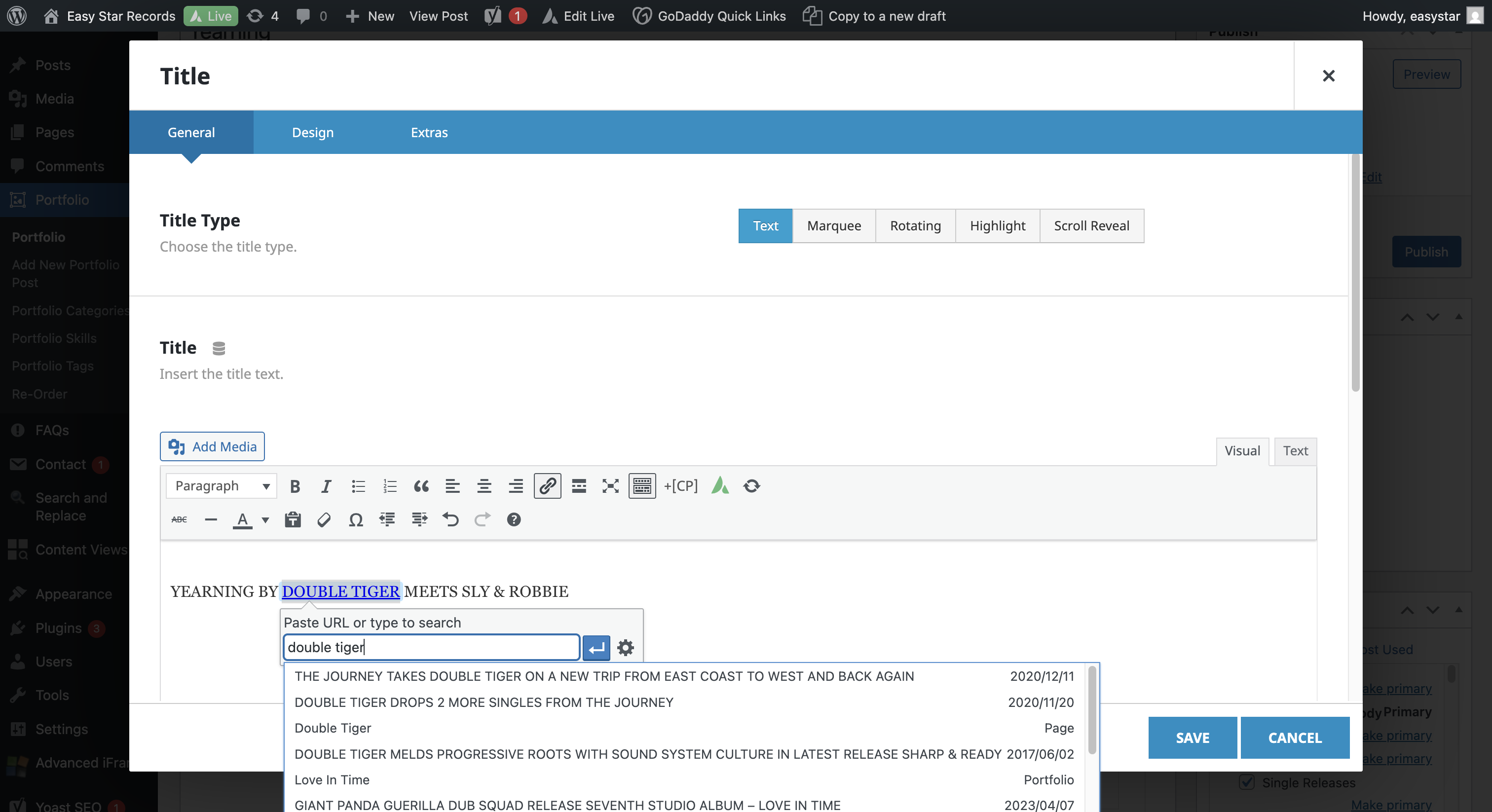 In this case, we will not link to Sly and Robbie. Click Save.