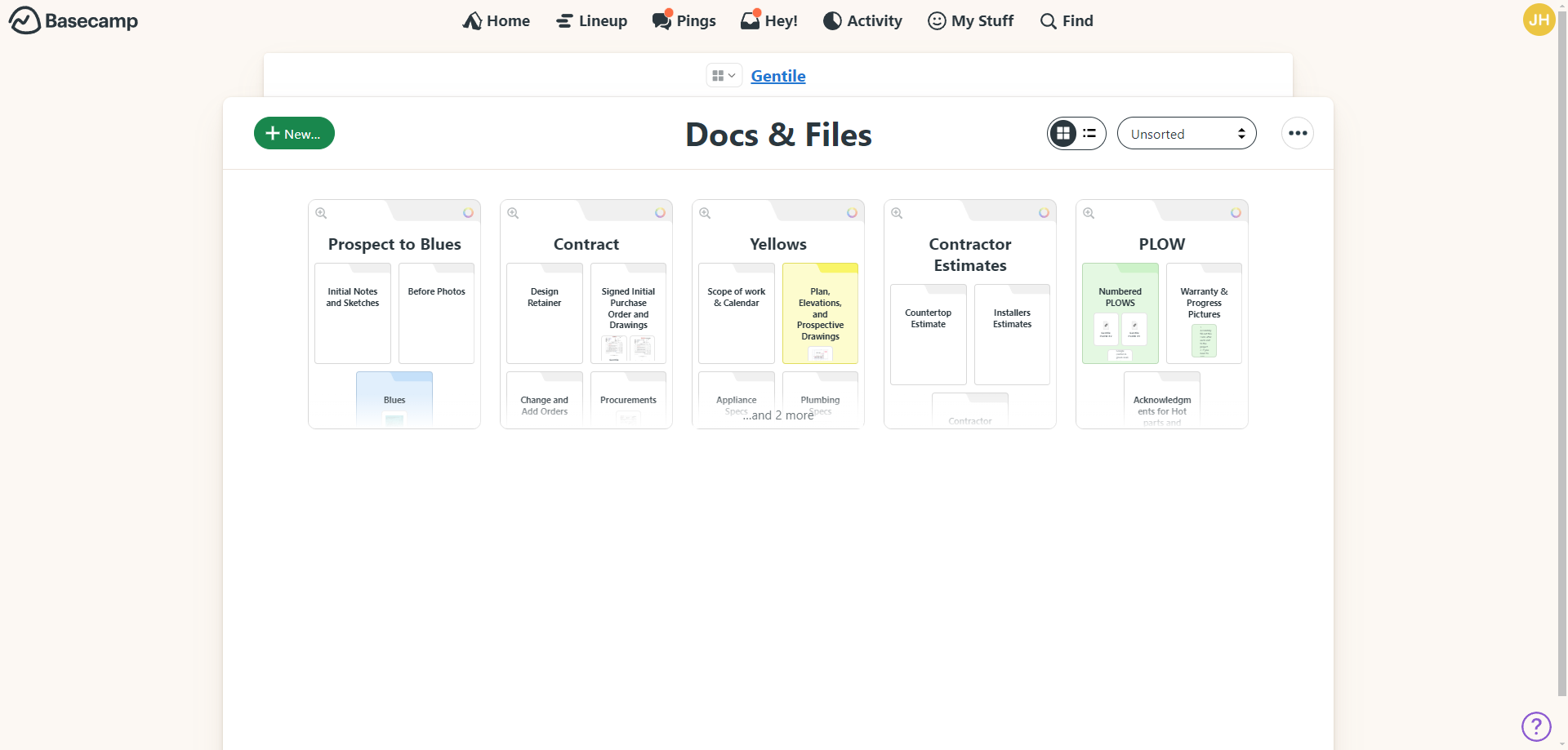To begin, access a client file in Basecamp. Once there, navigate to the Documents and Files section and click on it.
