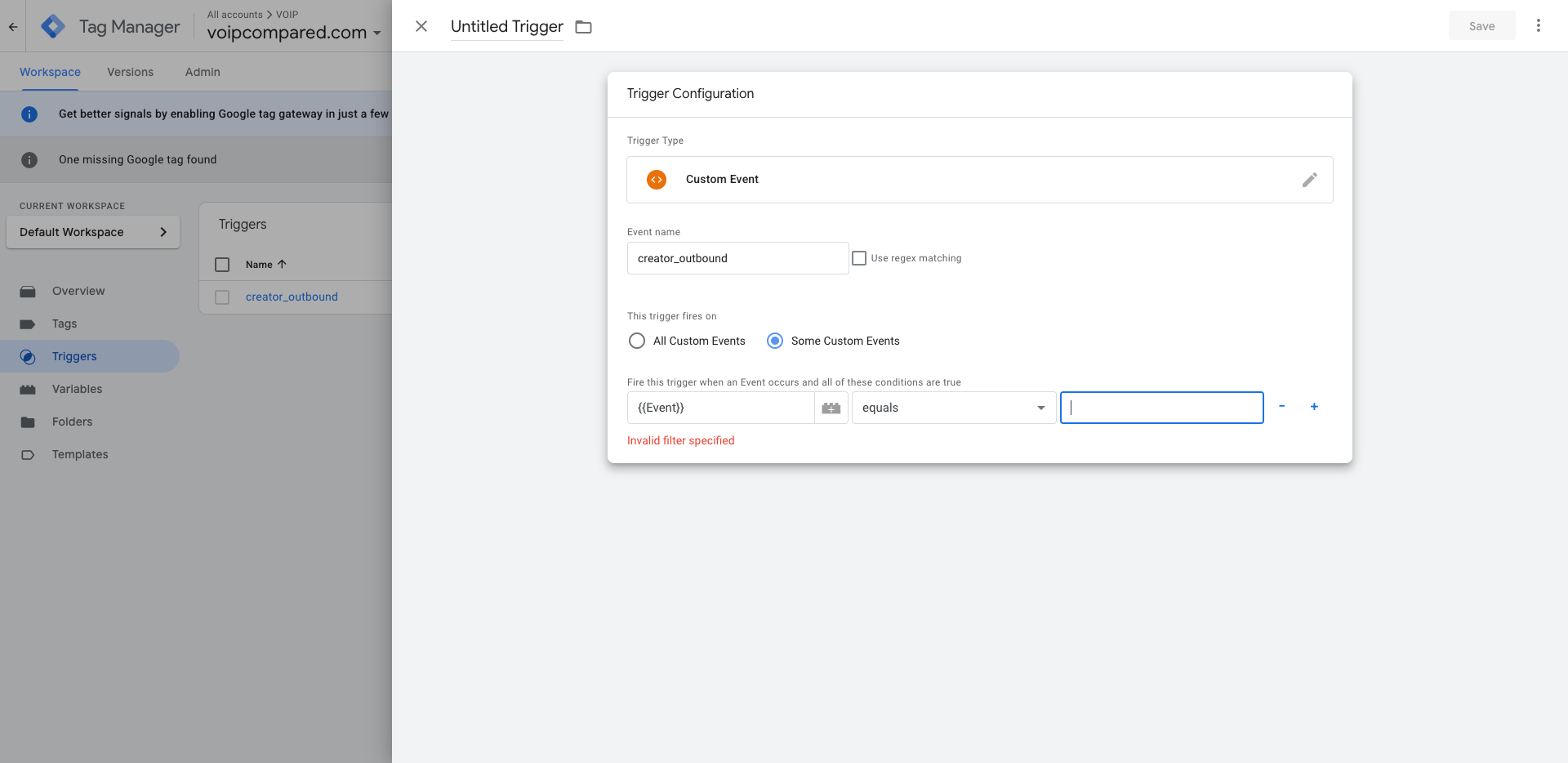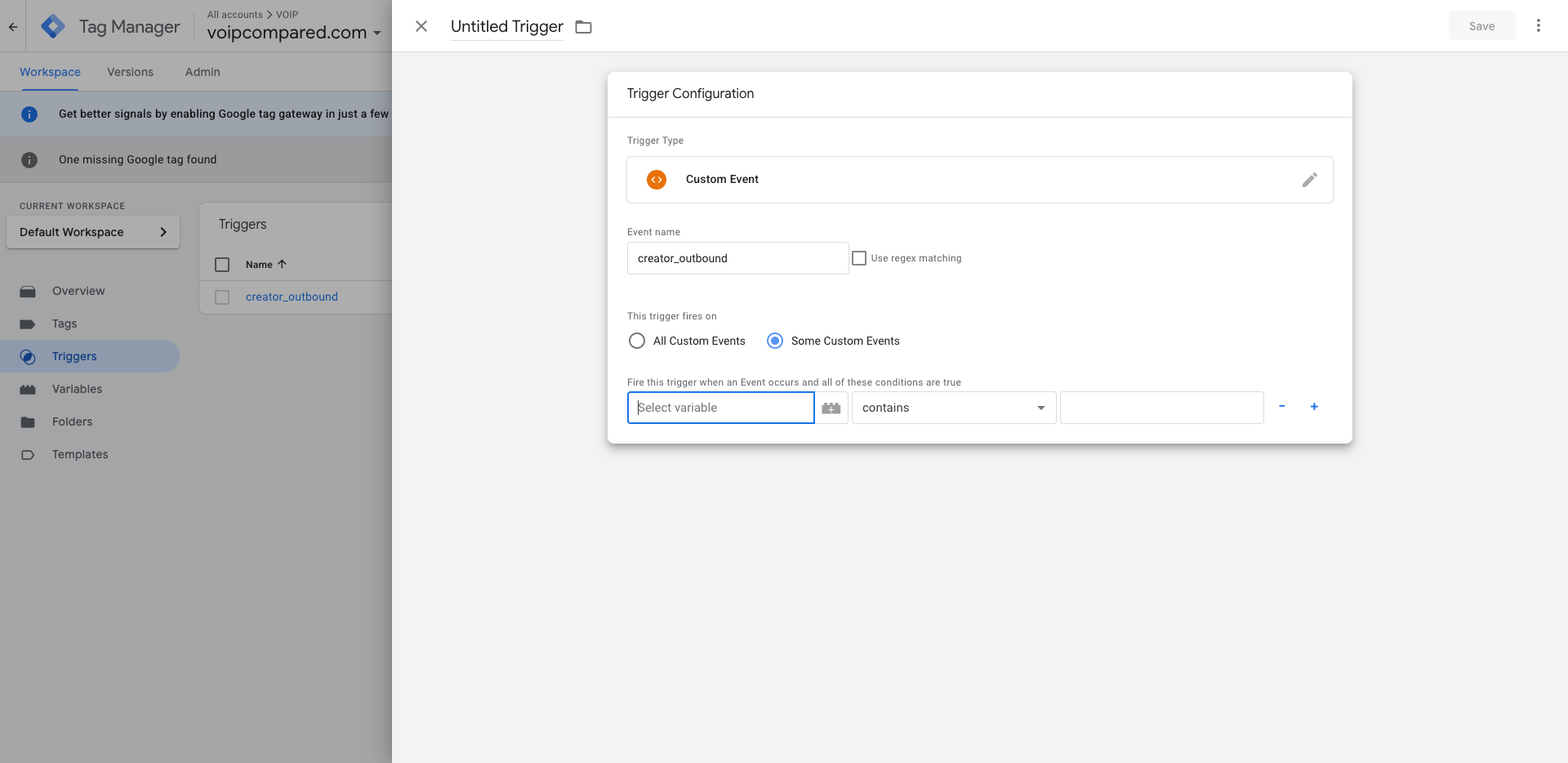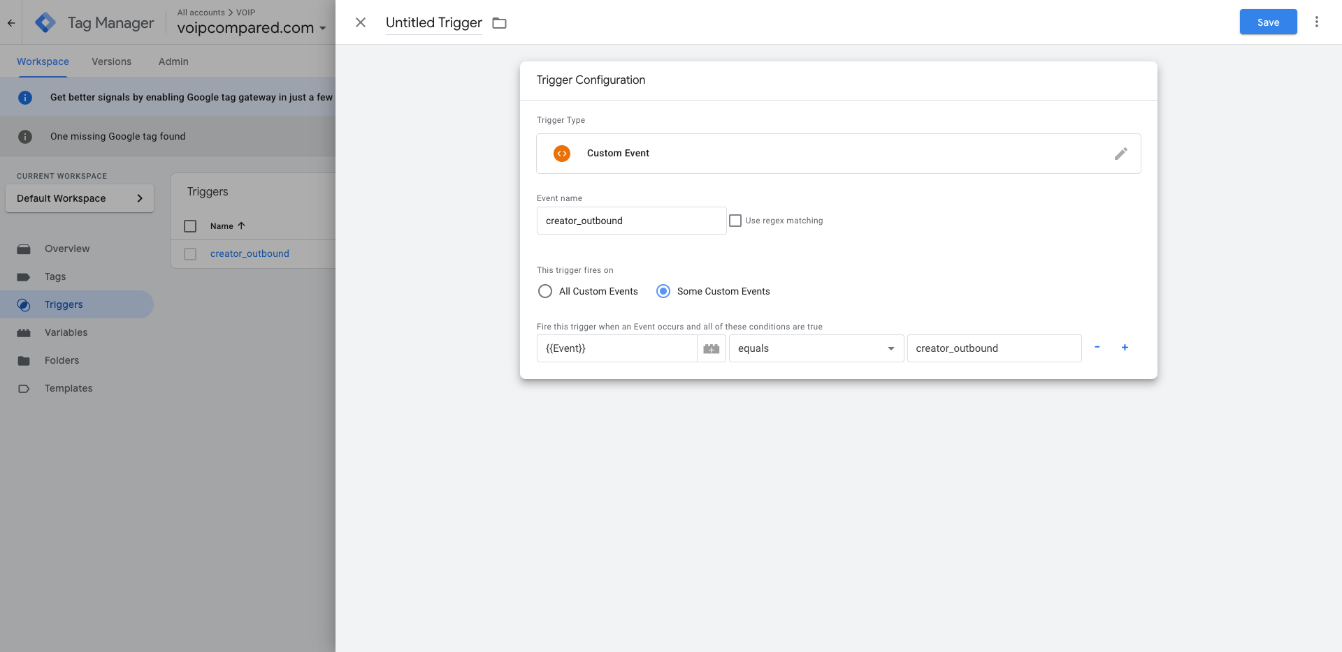 Learn step-by-step how to set up a custom event trigger for outbound clicks in your project, using Web Compare as an example. Improve your tracking and analytics with this easy guide.