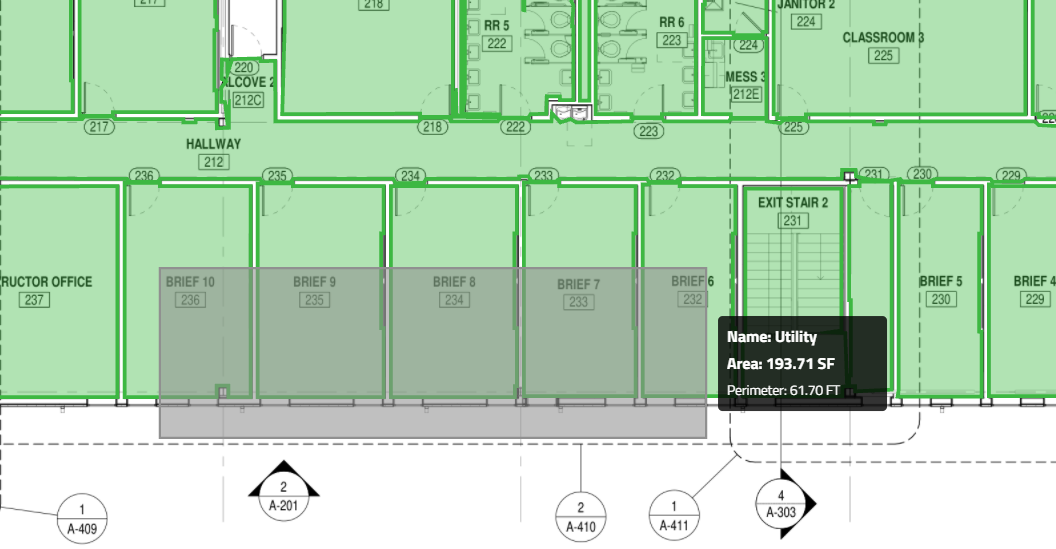 Hover above any area to see its name, size and perimeter