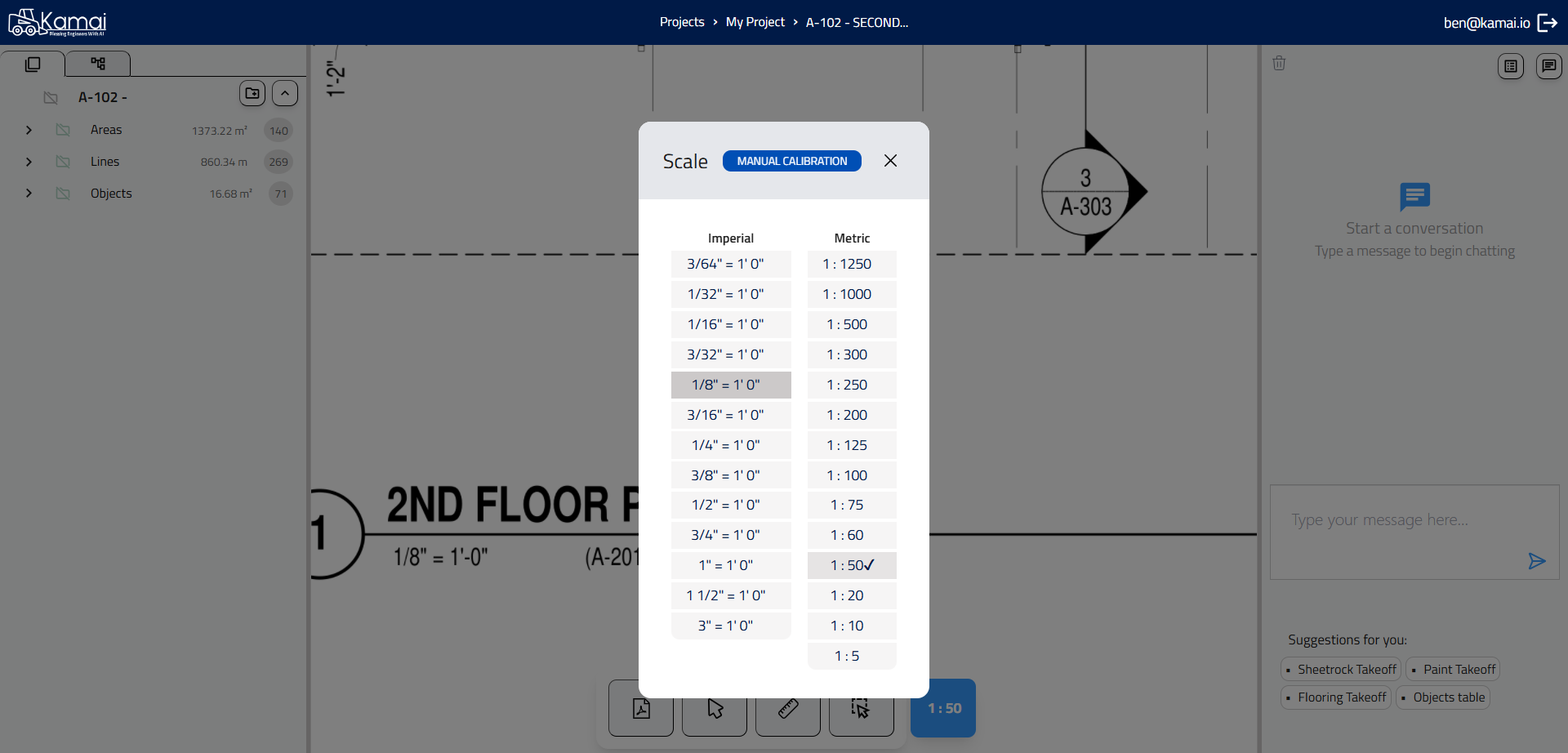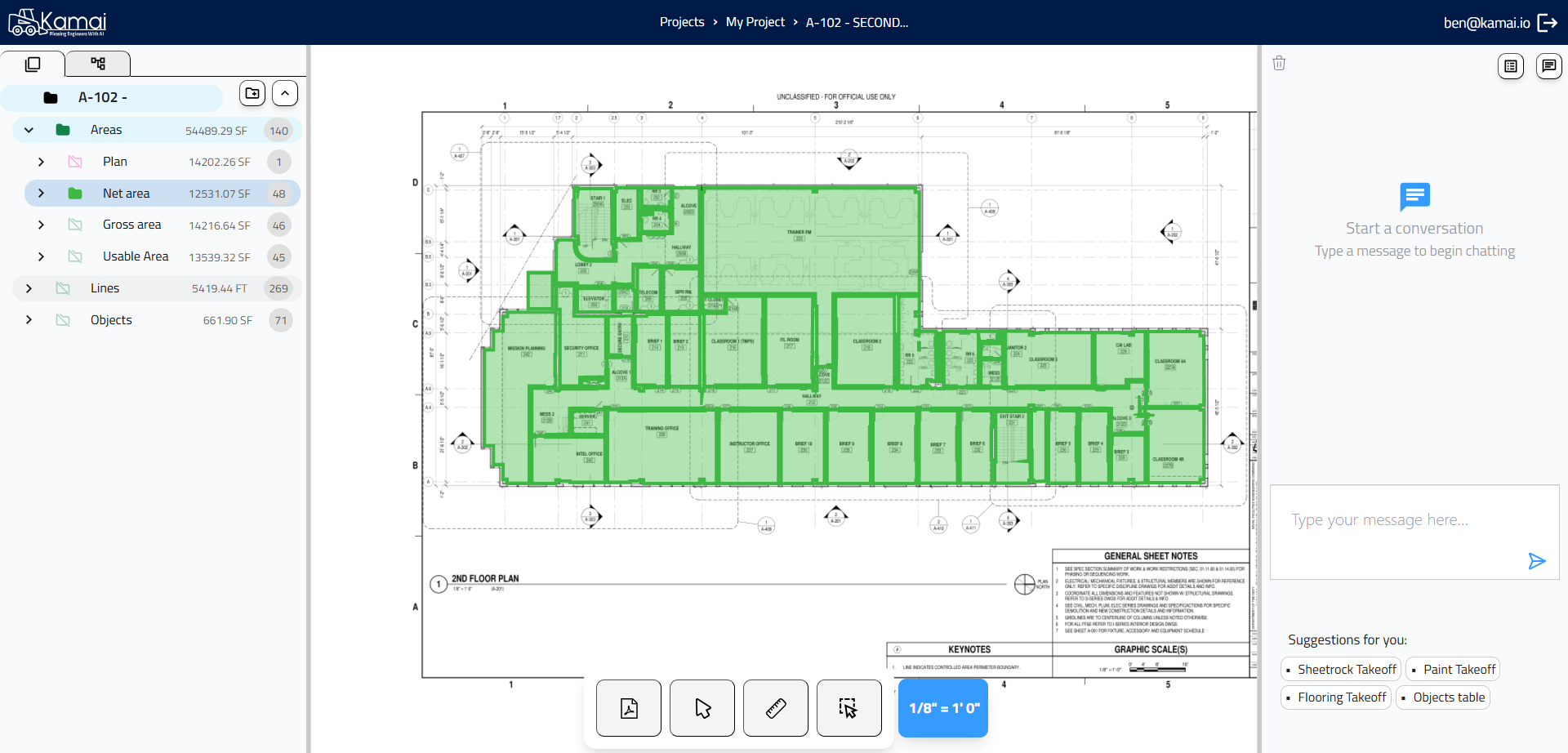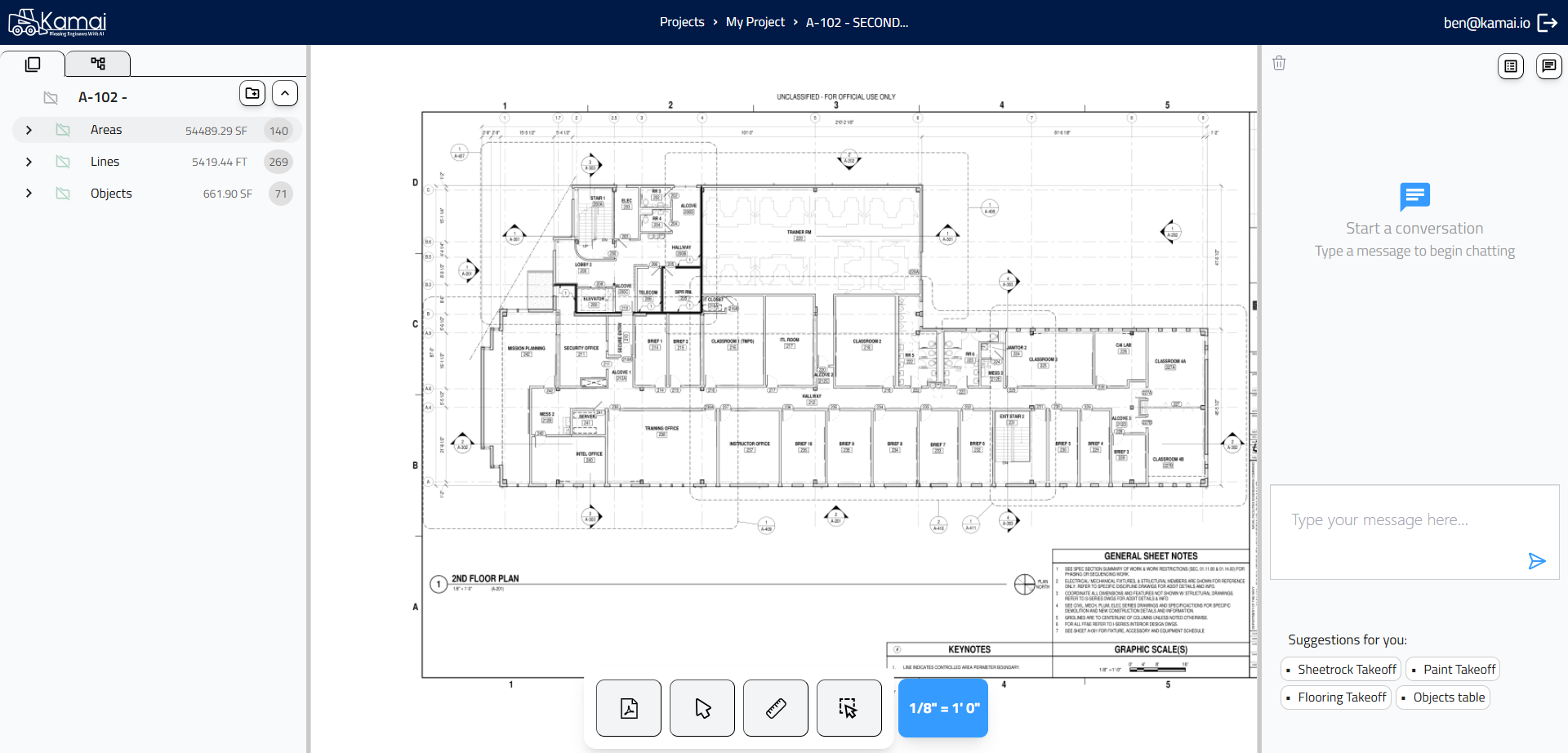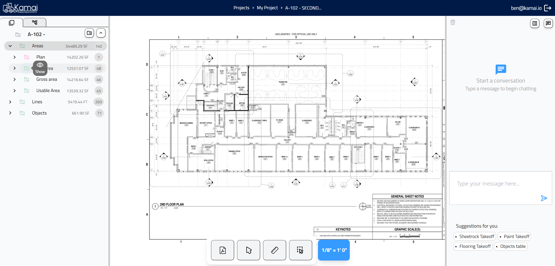 In this guide, we'll learn how to create a new project, upload your files, and set the correct scale. We will also cover how to view, add, or remove areas within your project. You will see how to use the chat feature to ask questions as you work.