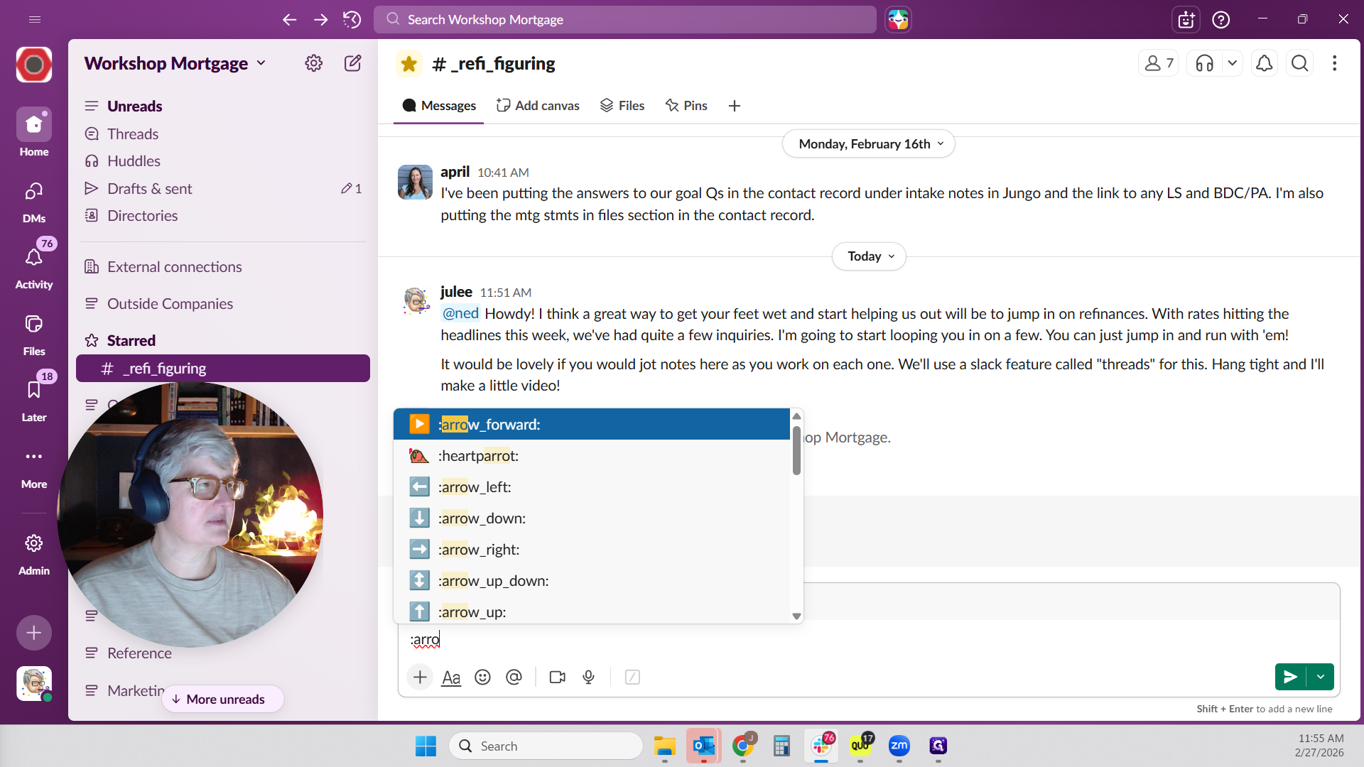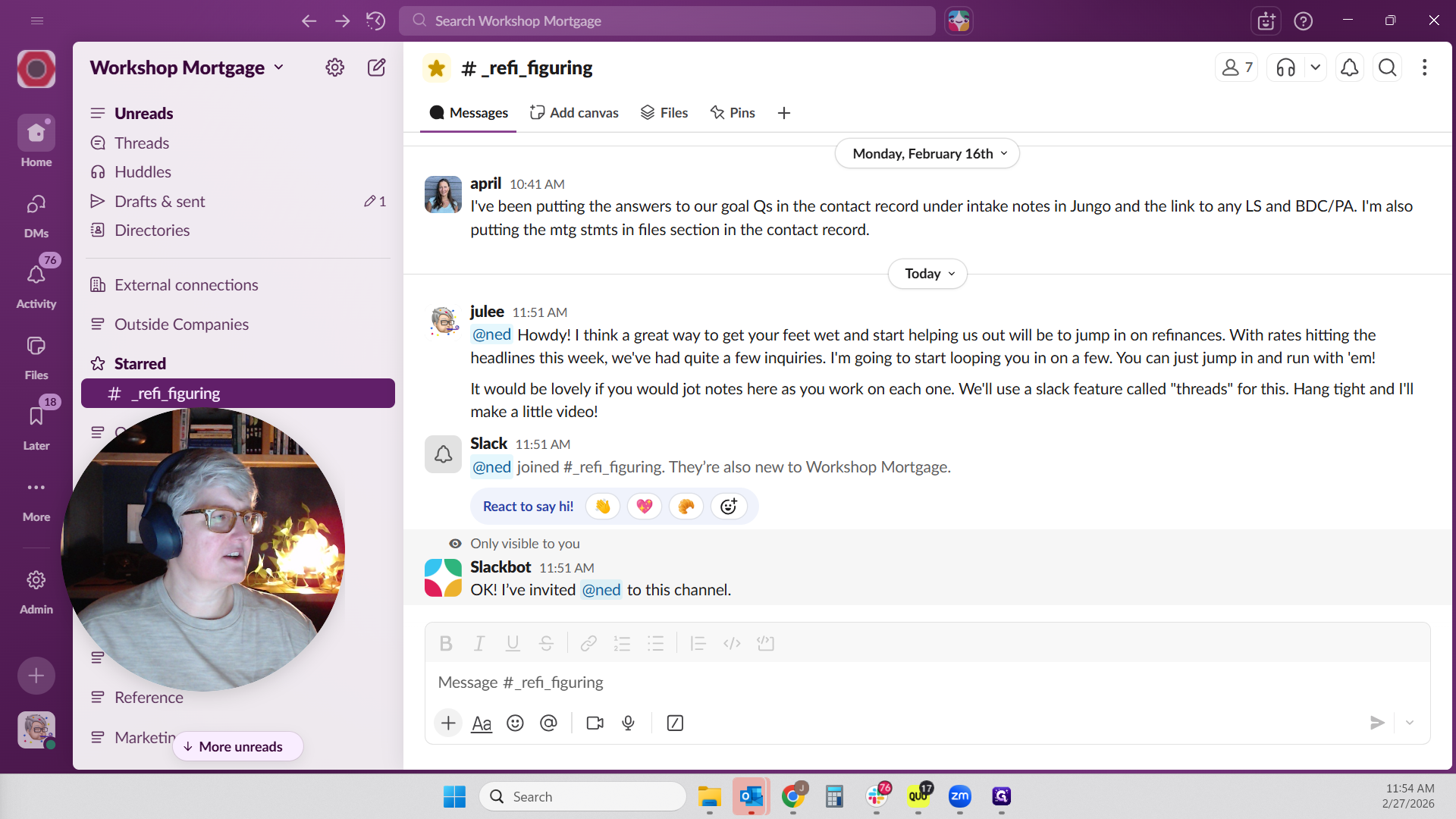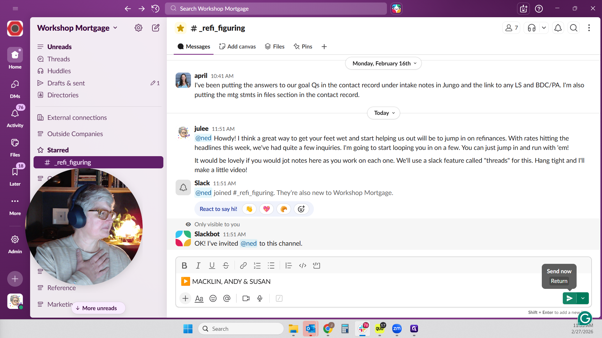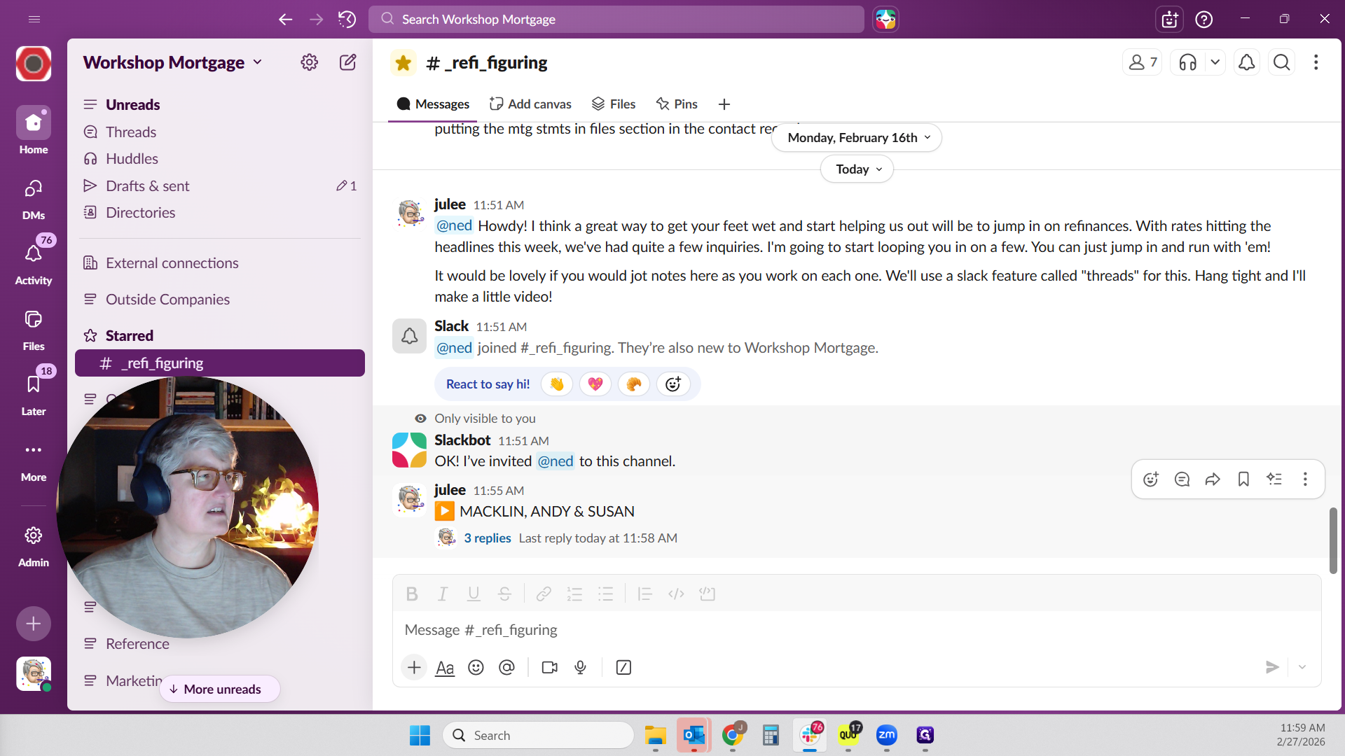 This is in the thread to the right, not the main channel. Here is the current loan statement. You can type notes and screenshot items here. If you want, you can paste screenshots as well.