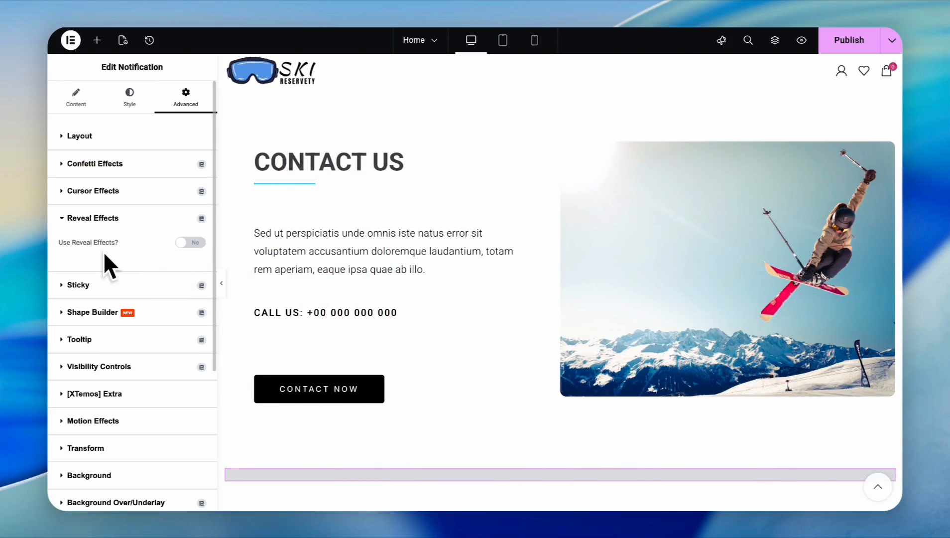 Enable Reveal Effects to control how the box animates into view (e.g., sliding from right to left or bottom to top)
