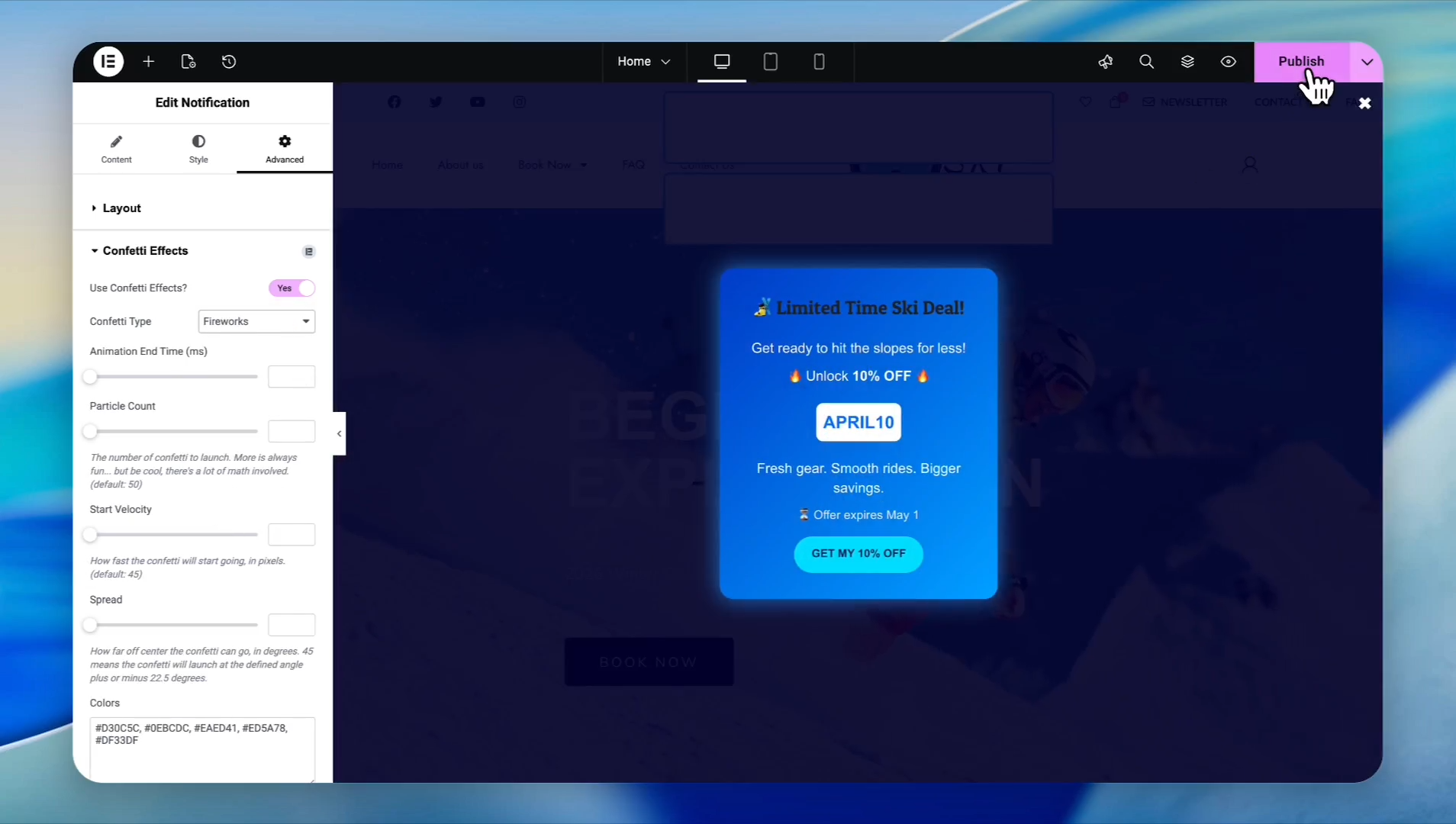 When you're happy with your new pop-up, click Publish