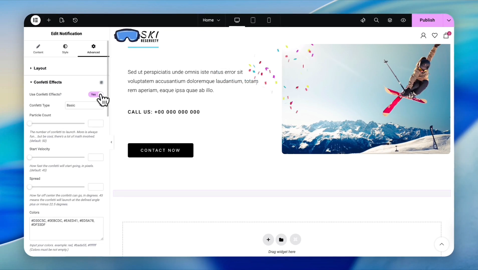 Click on the Advanced tab in the sidebar to add a special effect to the pop-up.