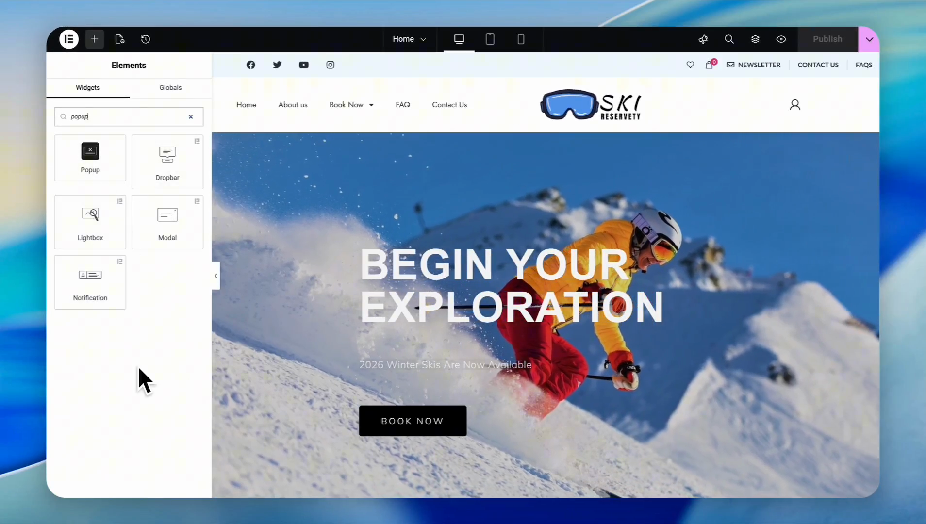 Select the page where you want the pop-up to appear (e.g., Home)