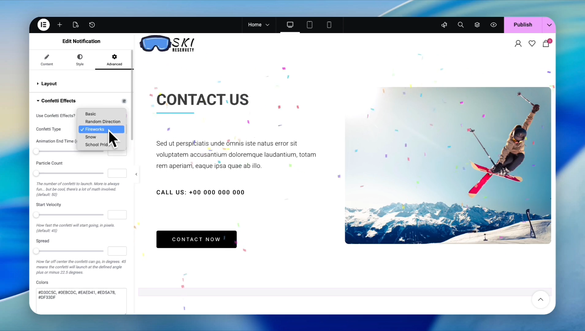 Toggle the Confetti Effects to activate background animations