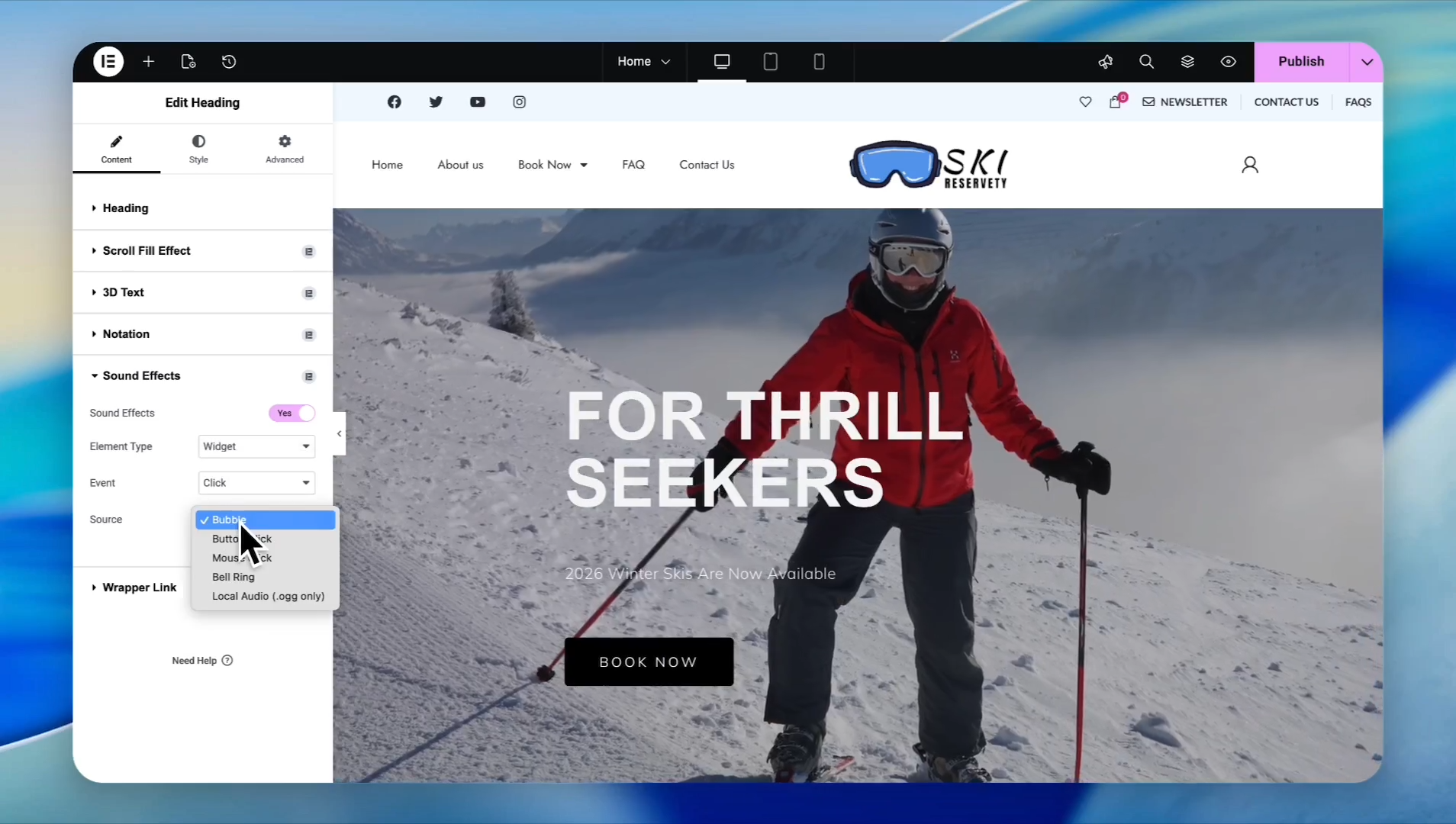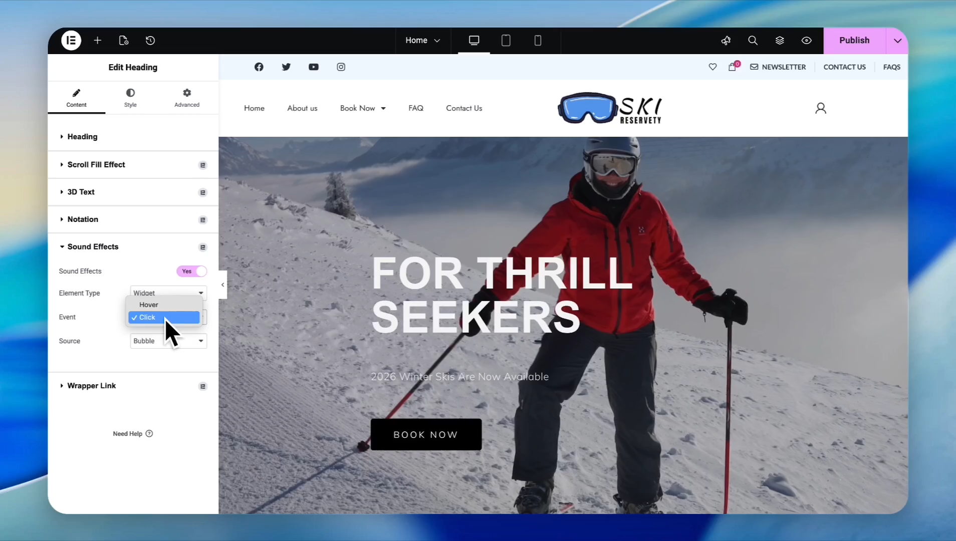 Under Sound Effects, choose whether the sound triggers on Hover or Click