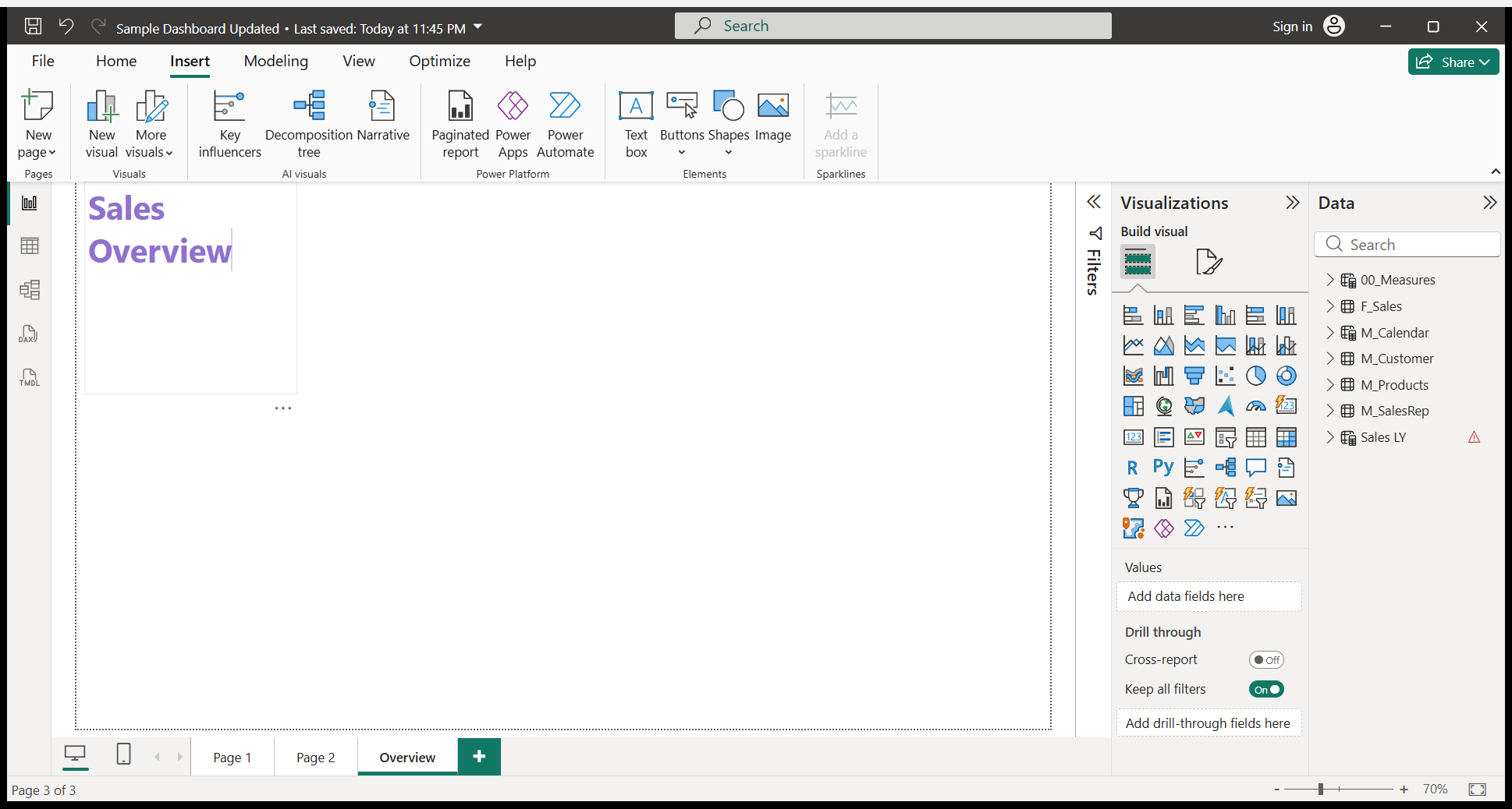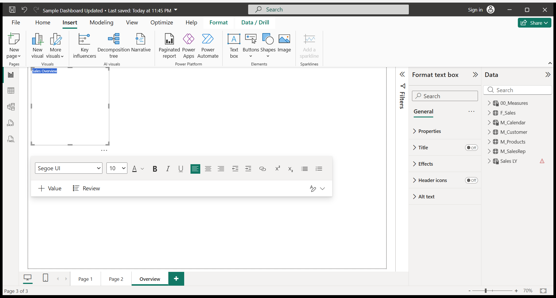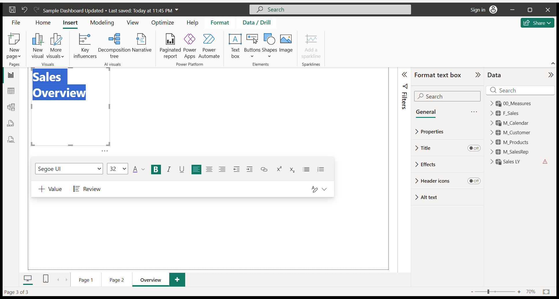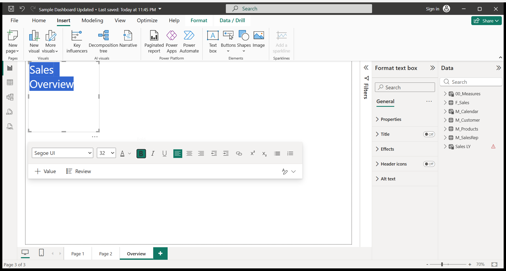 We will write a Sales Overview. I will do some formatting.