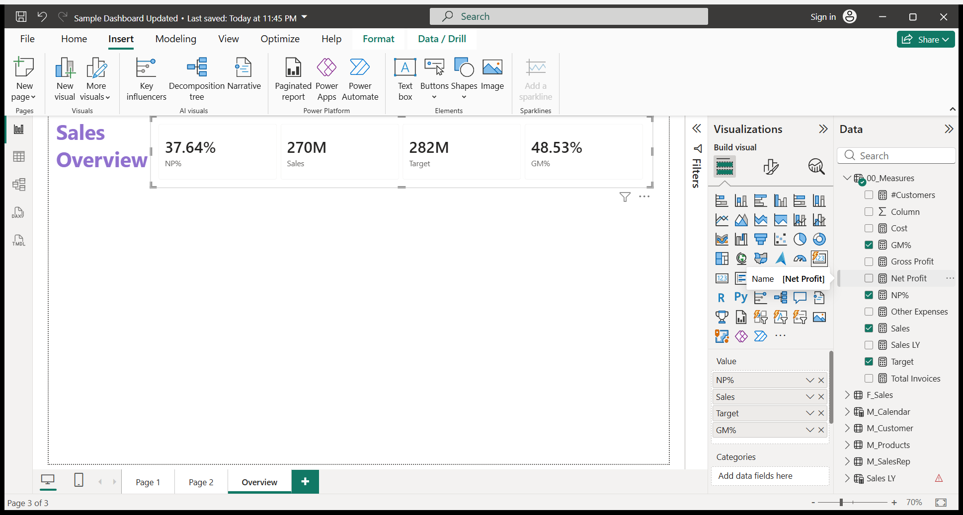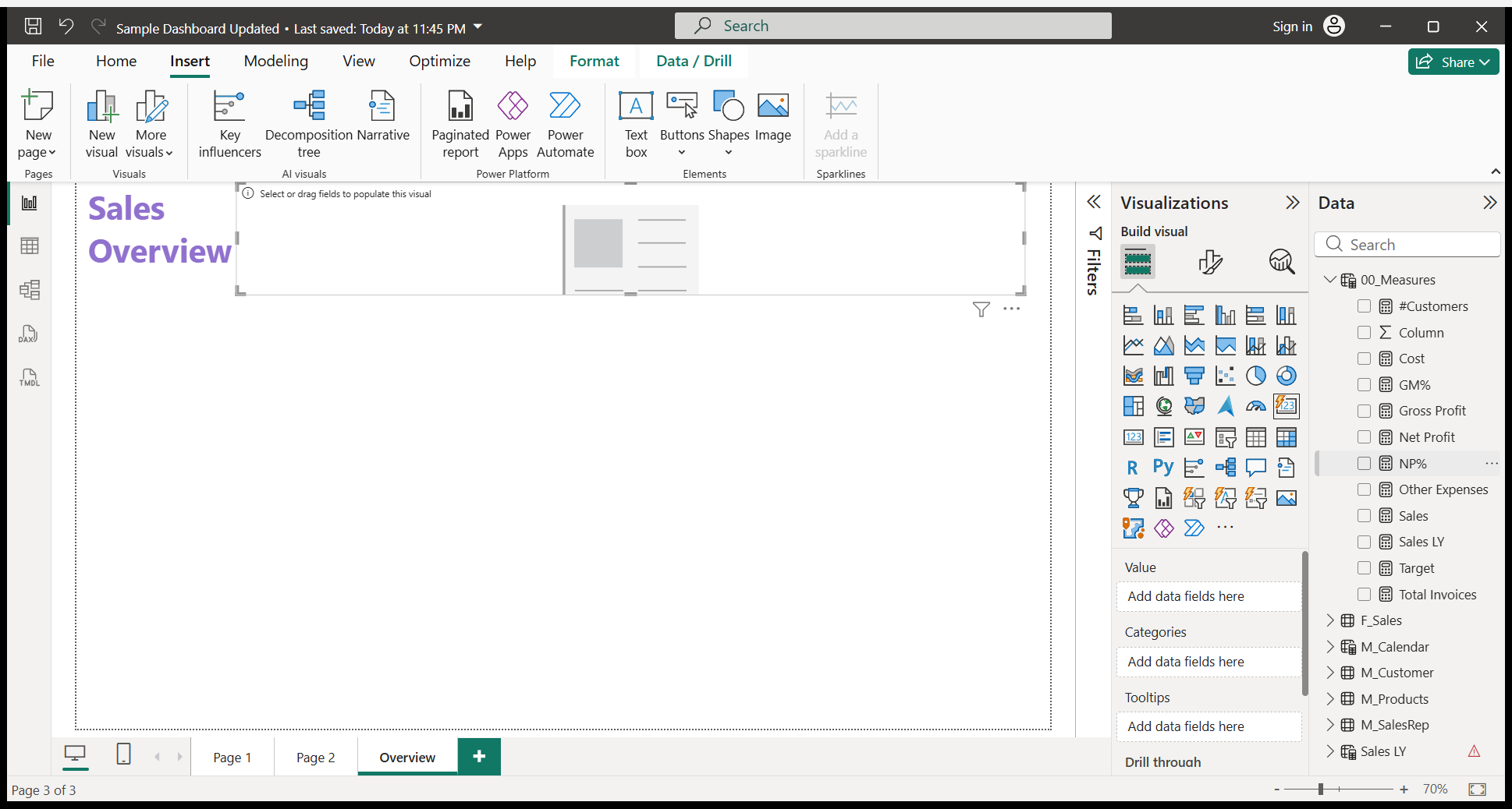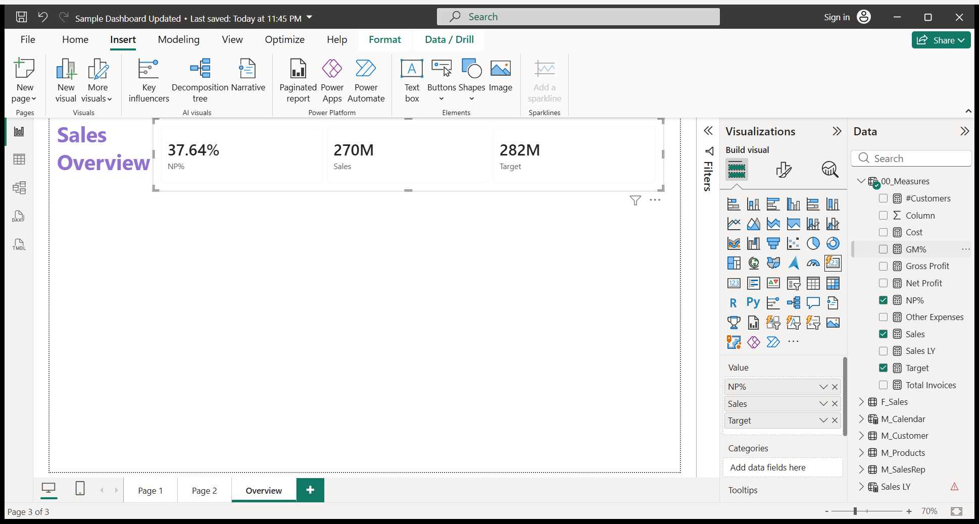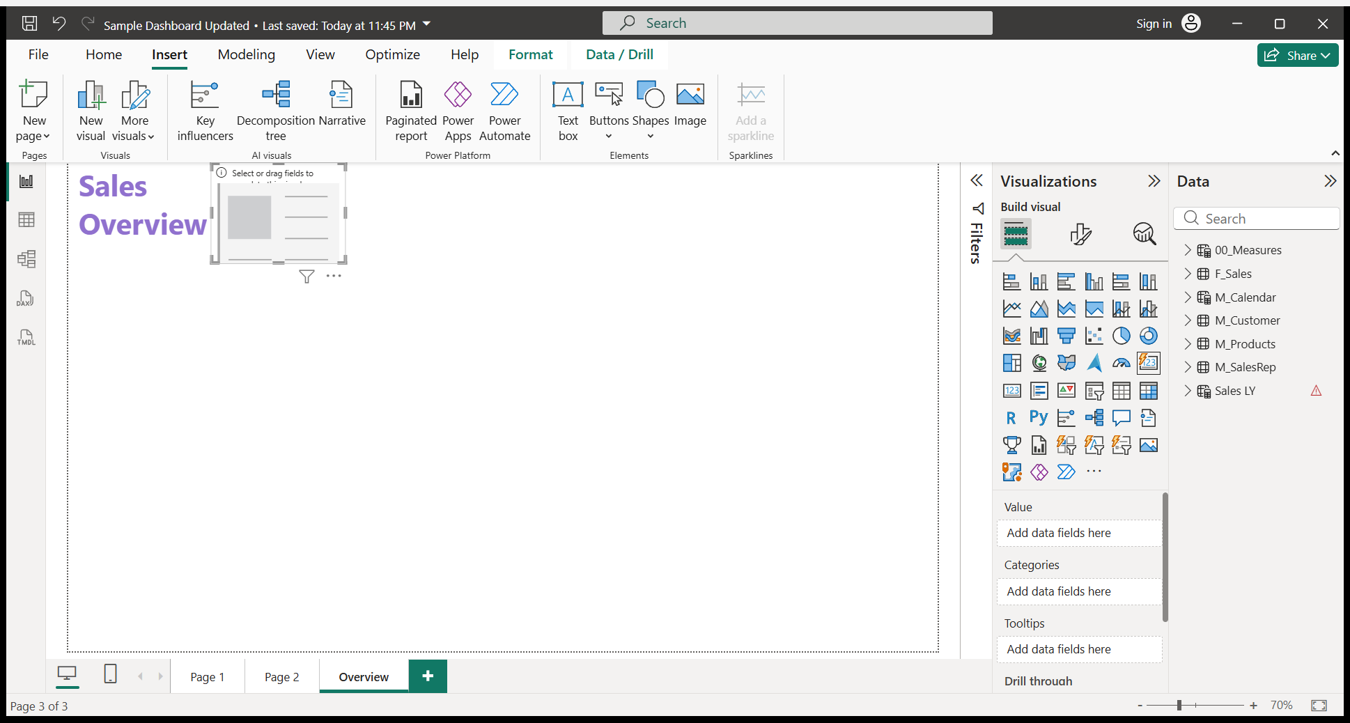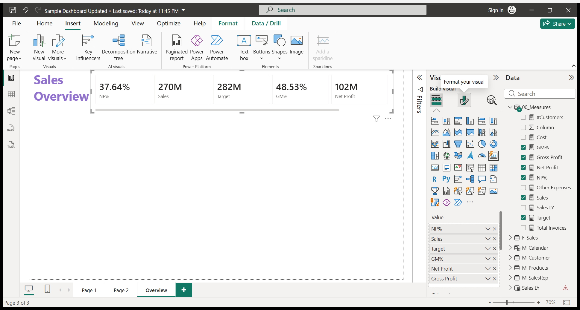We will write a Sales Overview. I will do some formatting.