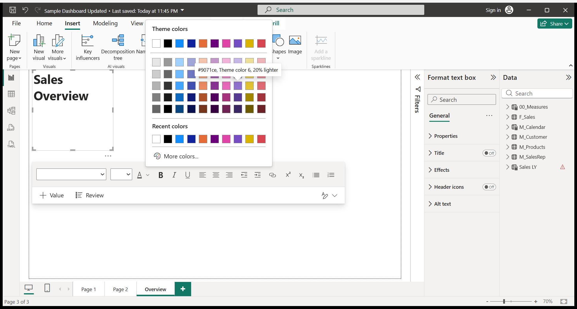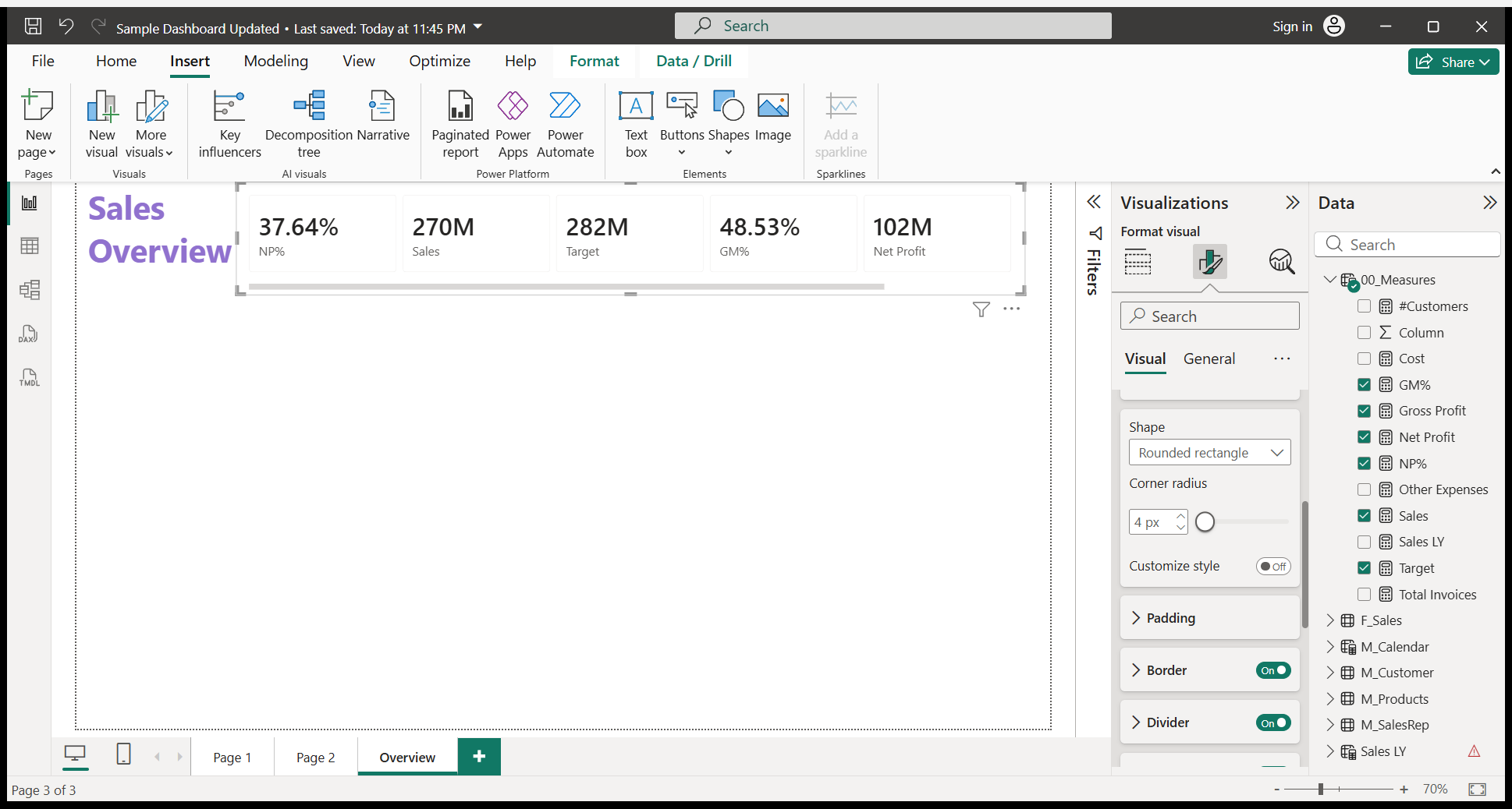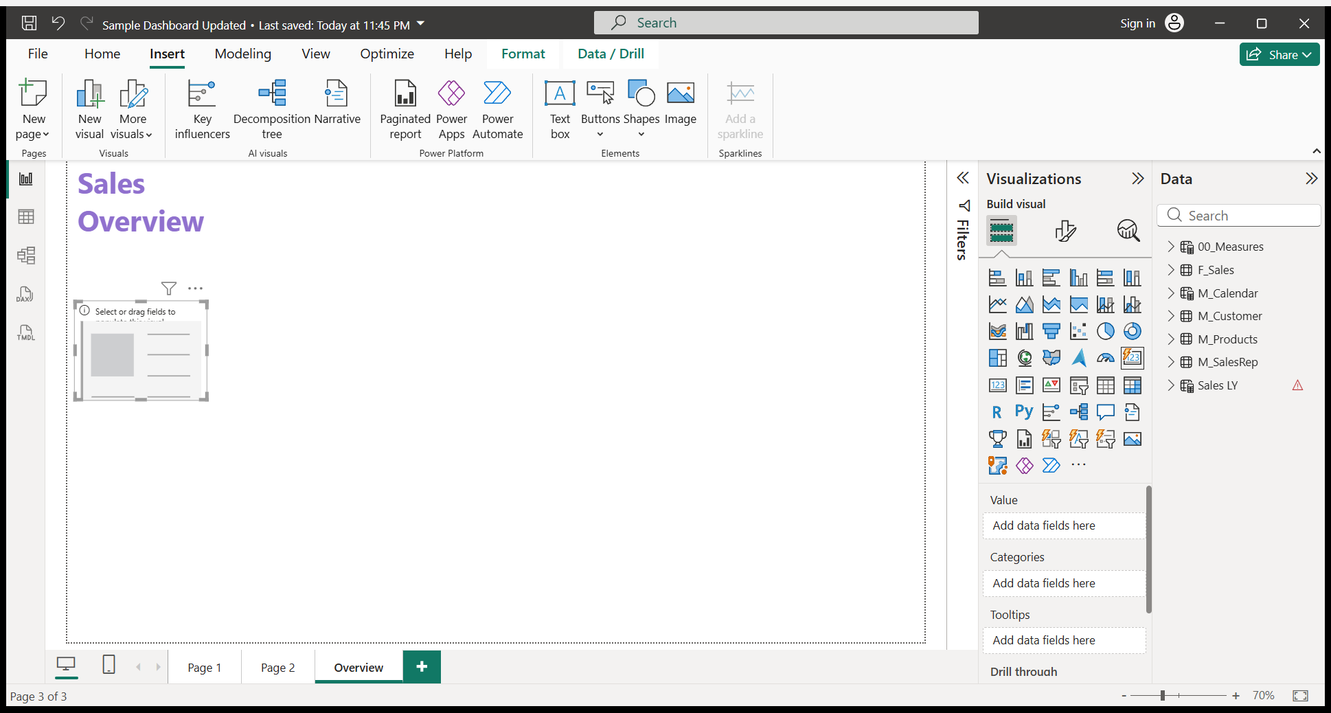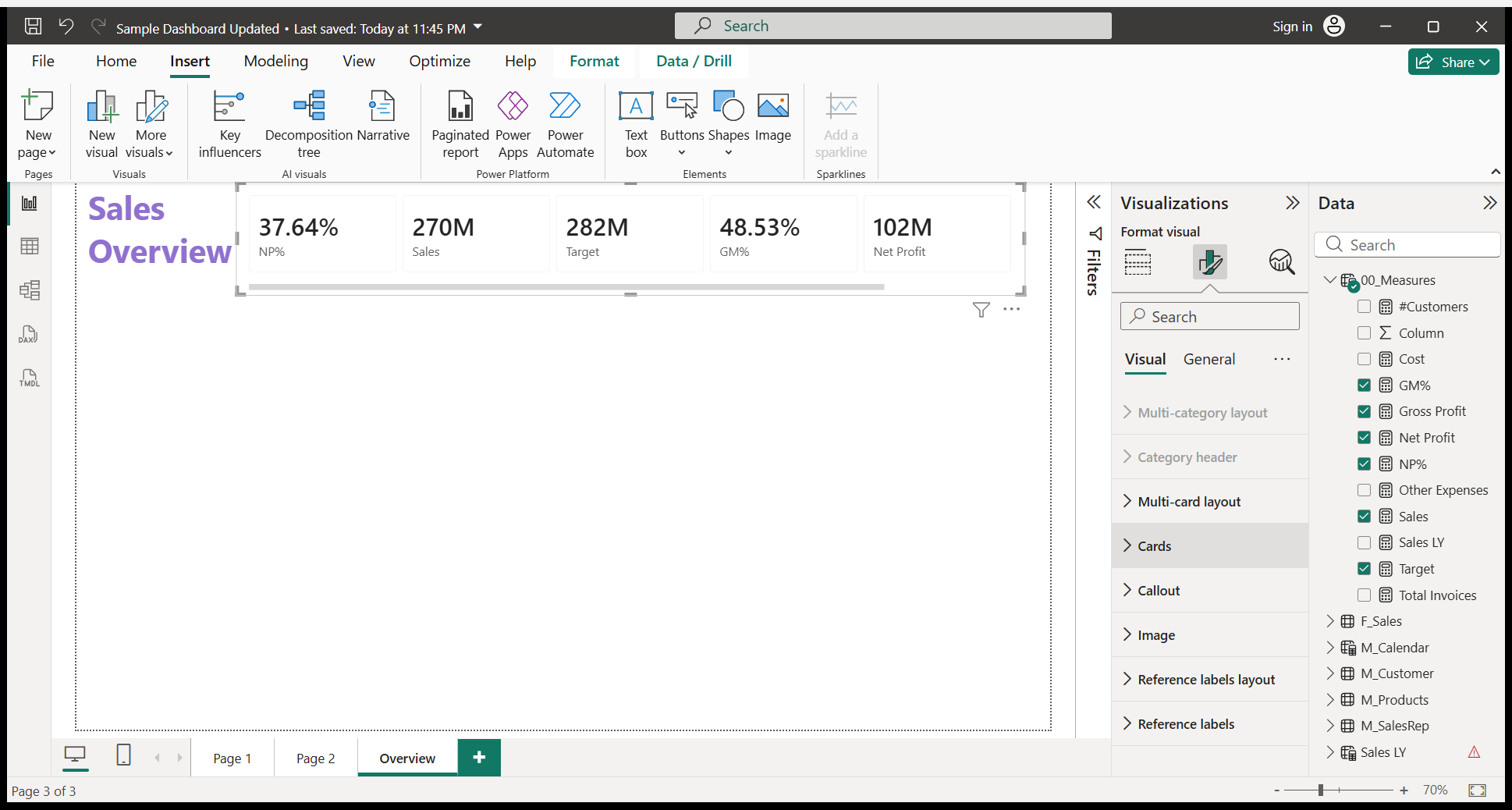 We will write a Sales Overview. I will do some formatting.