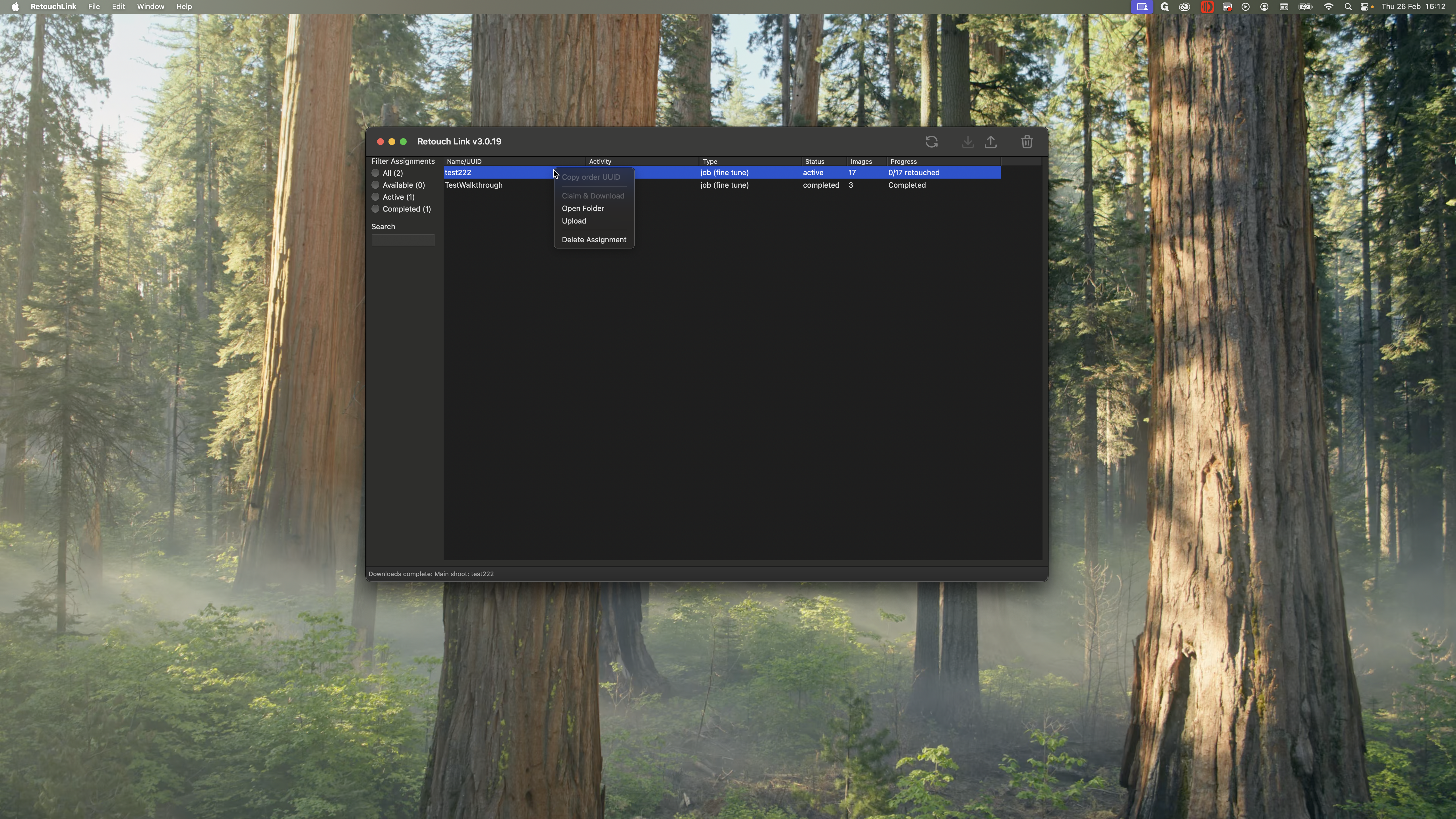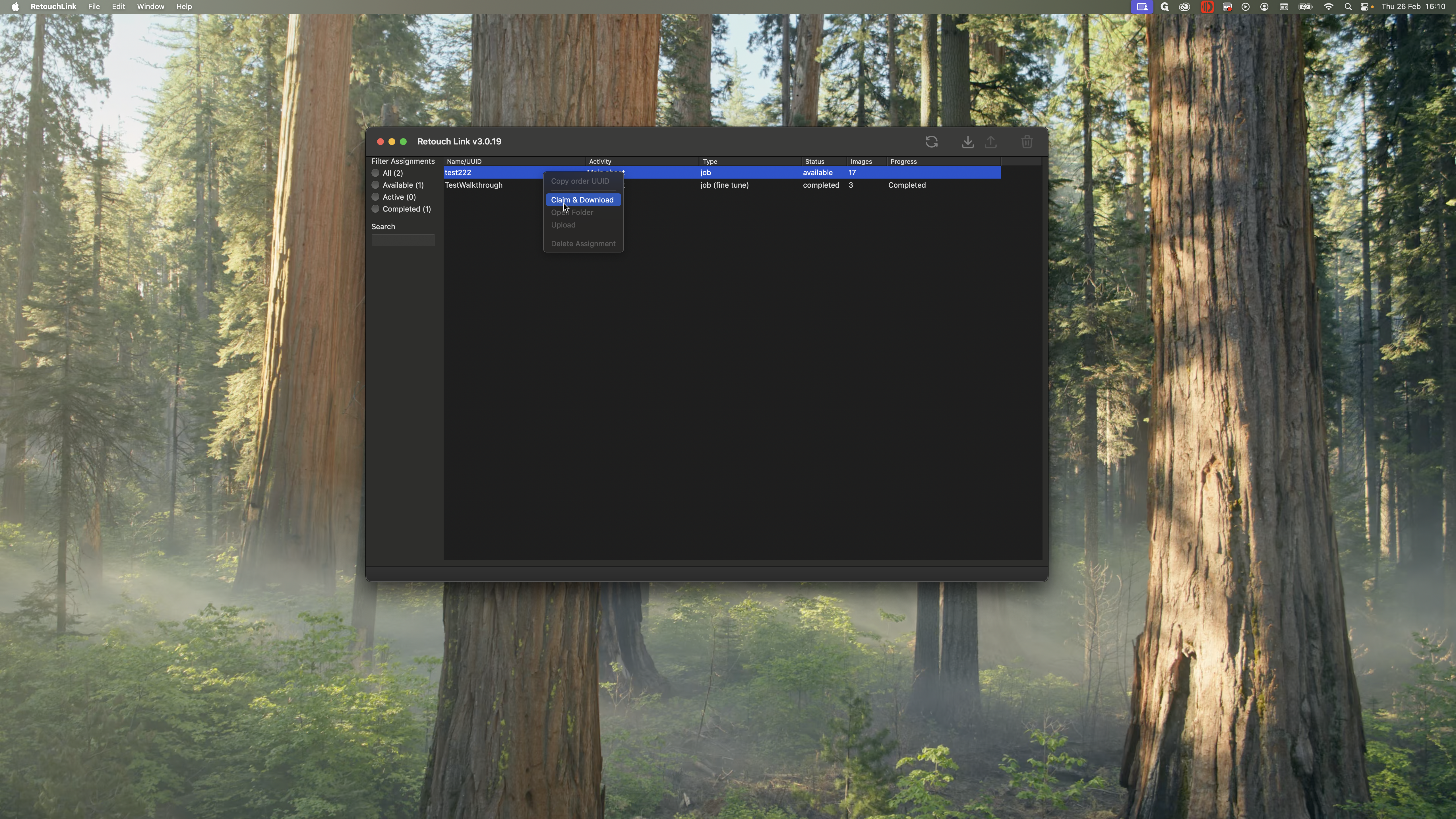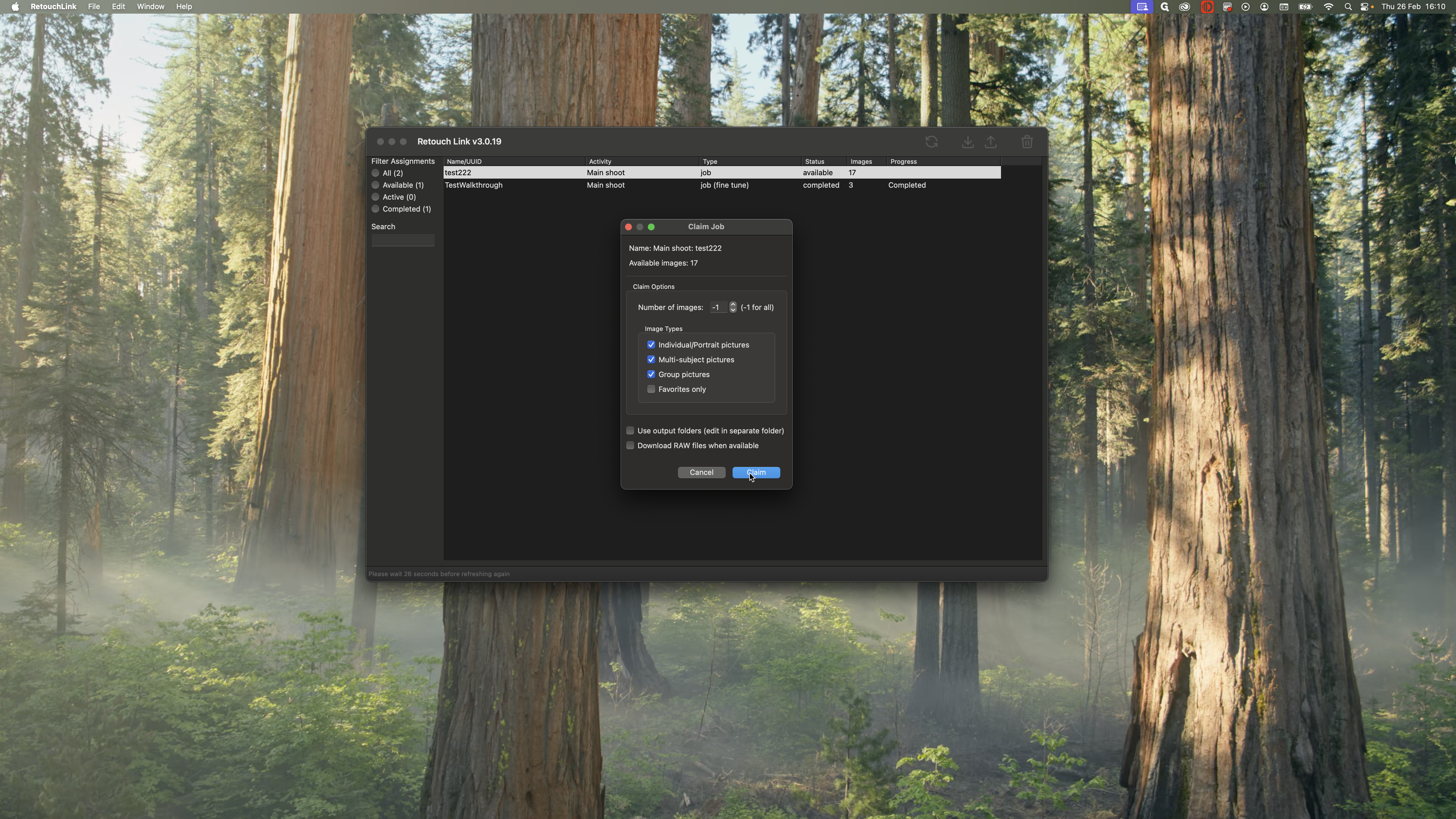 You want to work on the most recent one. This is the test shoot we completed in the previous steps. I see that it is available to me, and there are 17 images to work on. I can claim and download it to get all the photos.