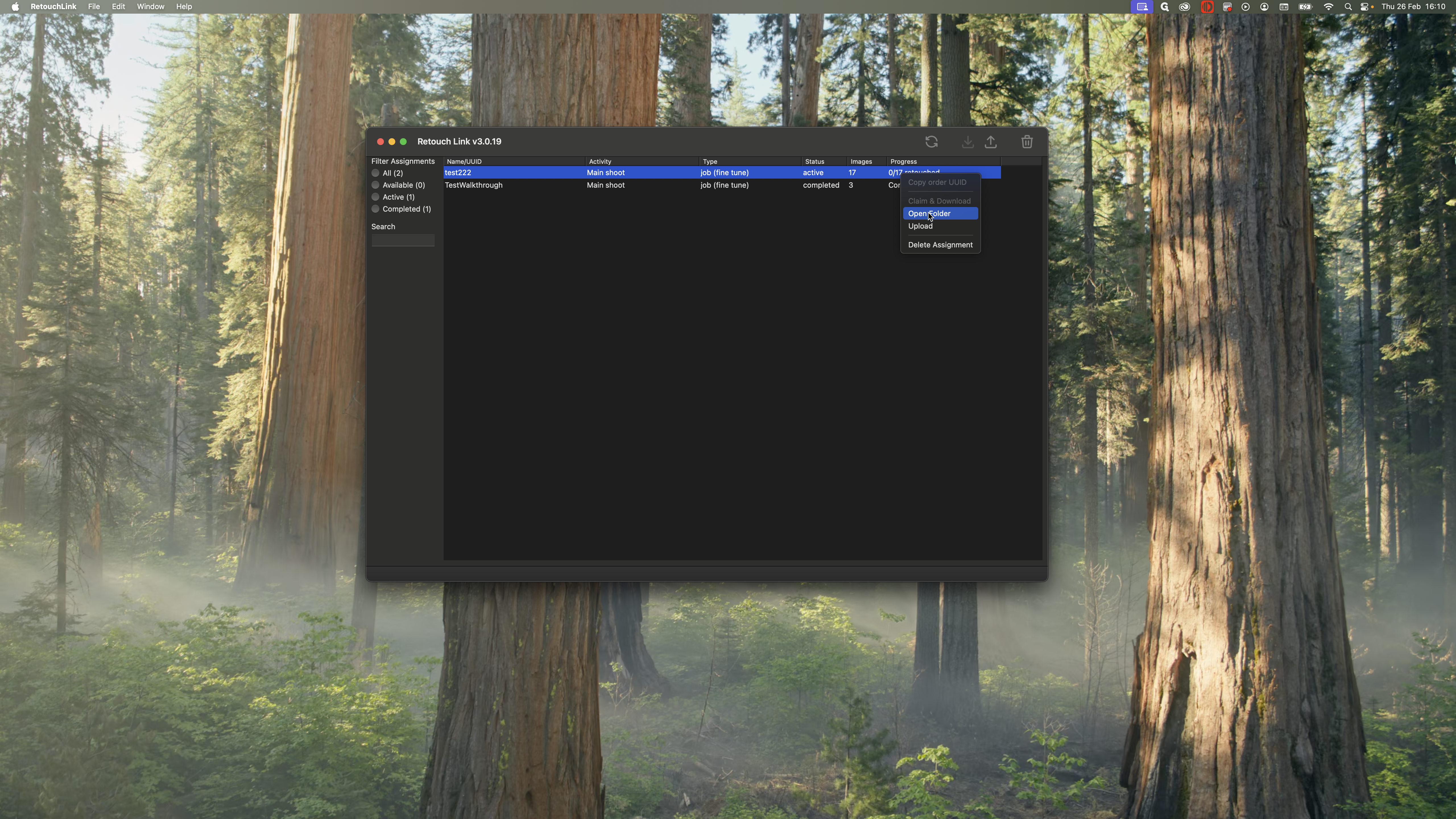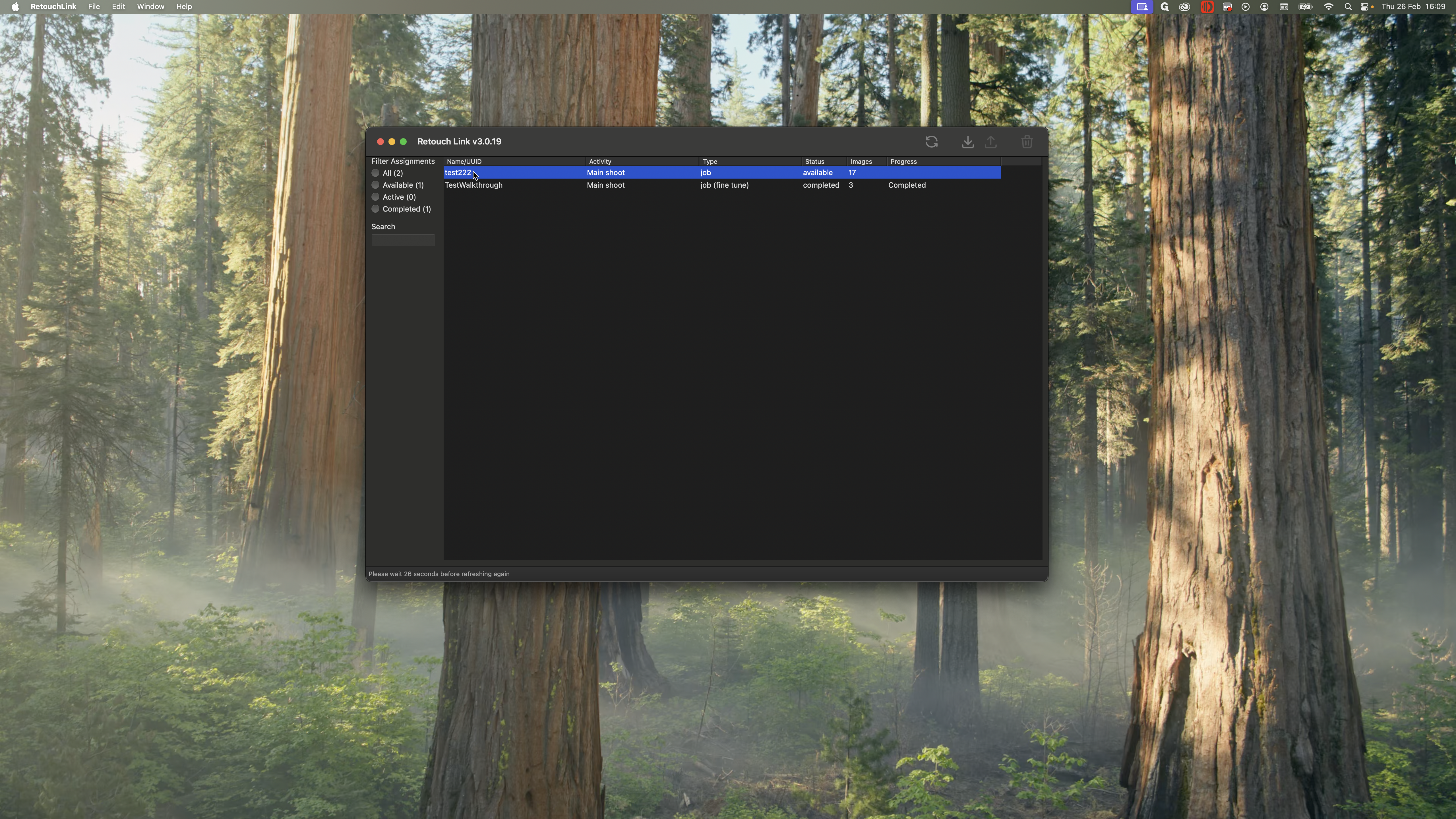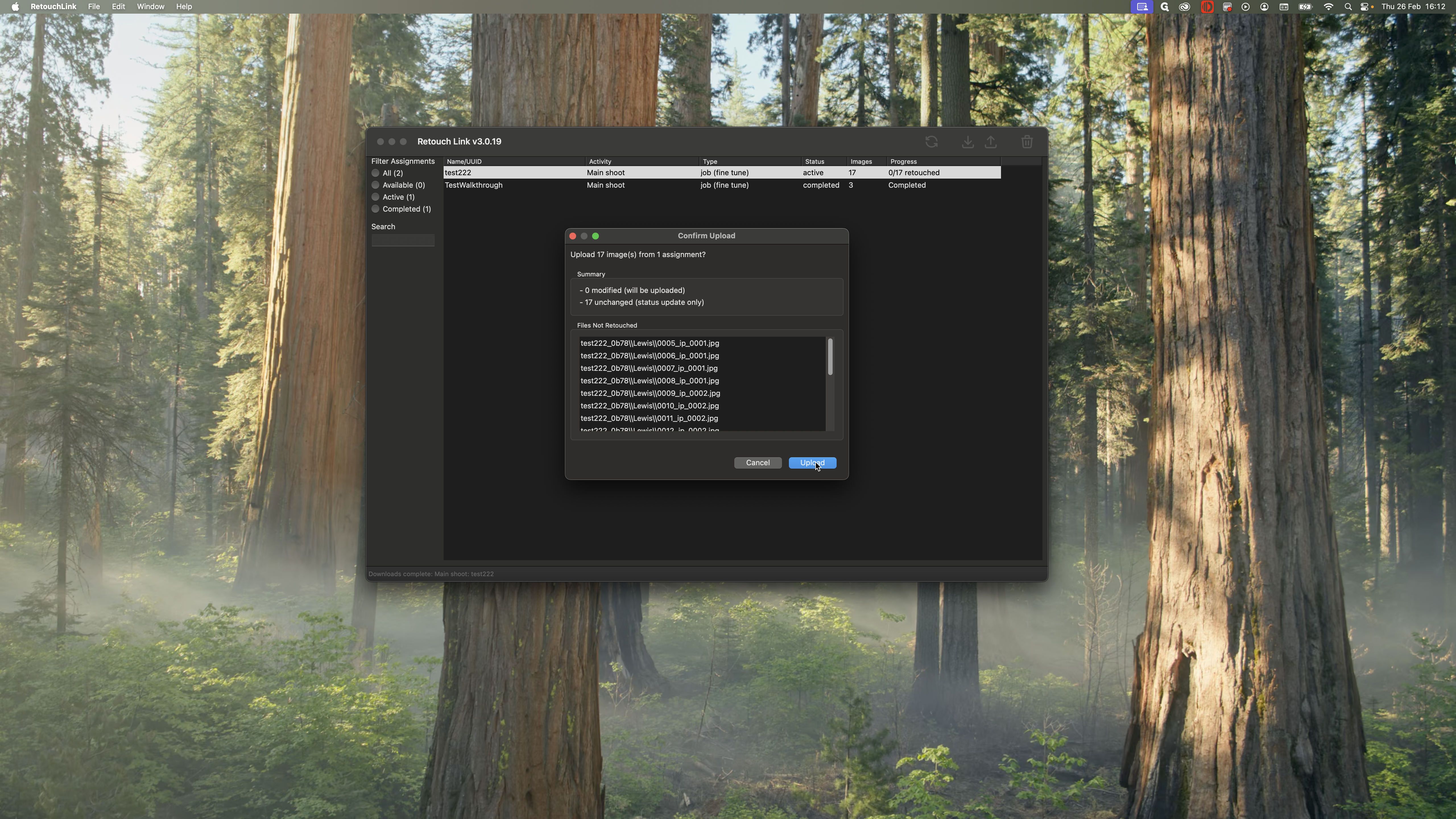 You want to work on the most recent one. This is the test shoot we completed in the previous steps. I see that it is available to me, and there are 17 images to work on. I can claim and download it to get all the photos.