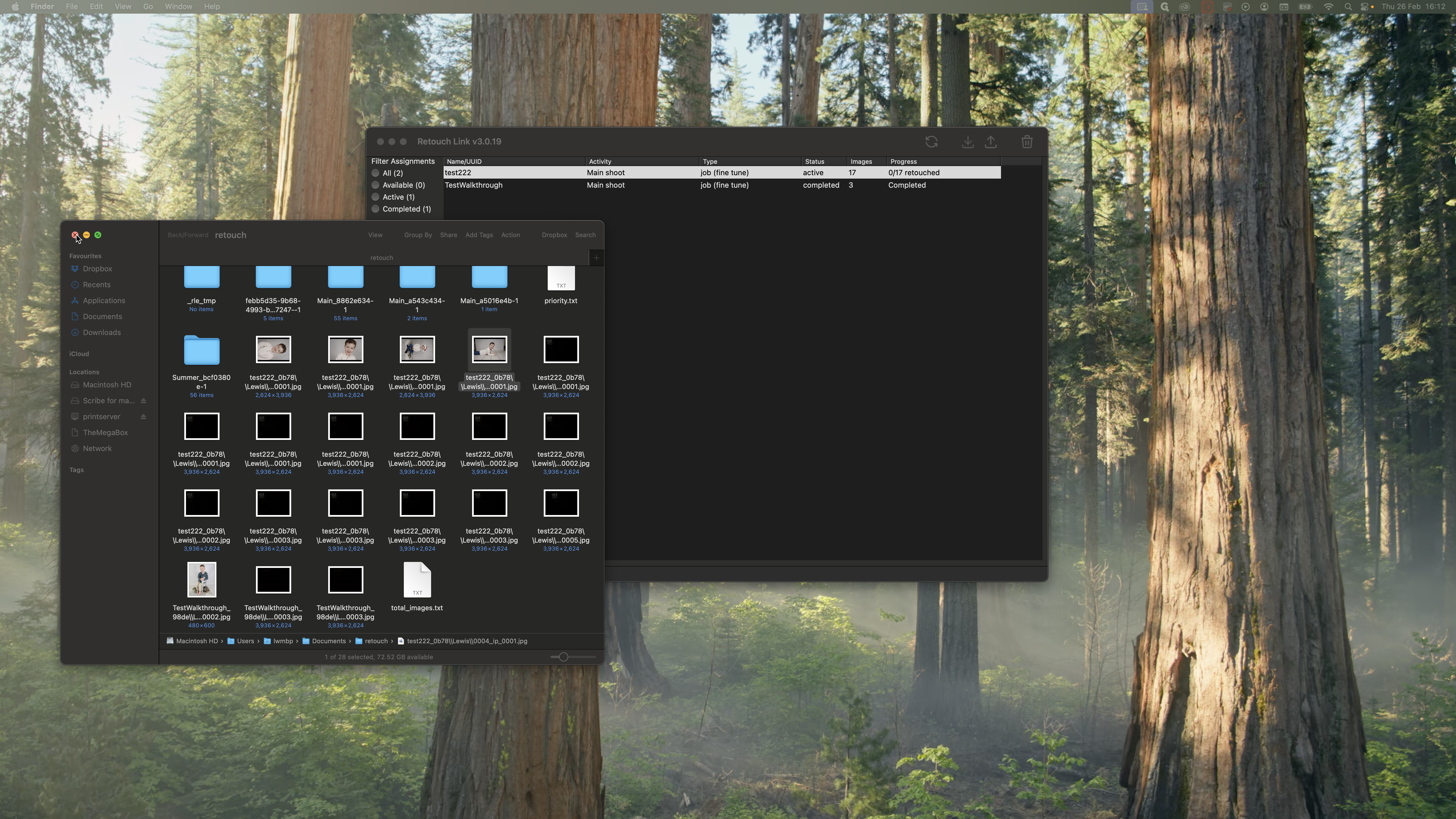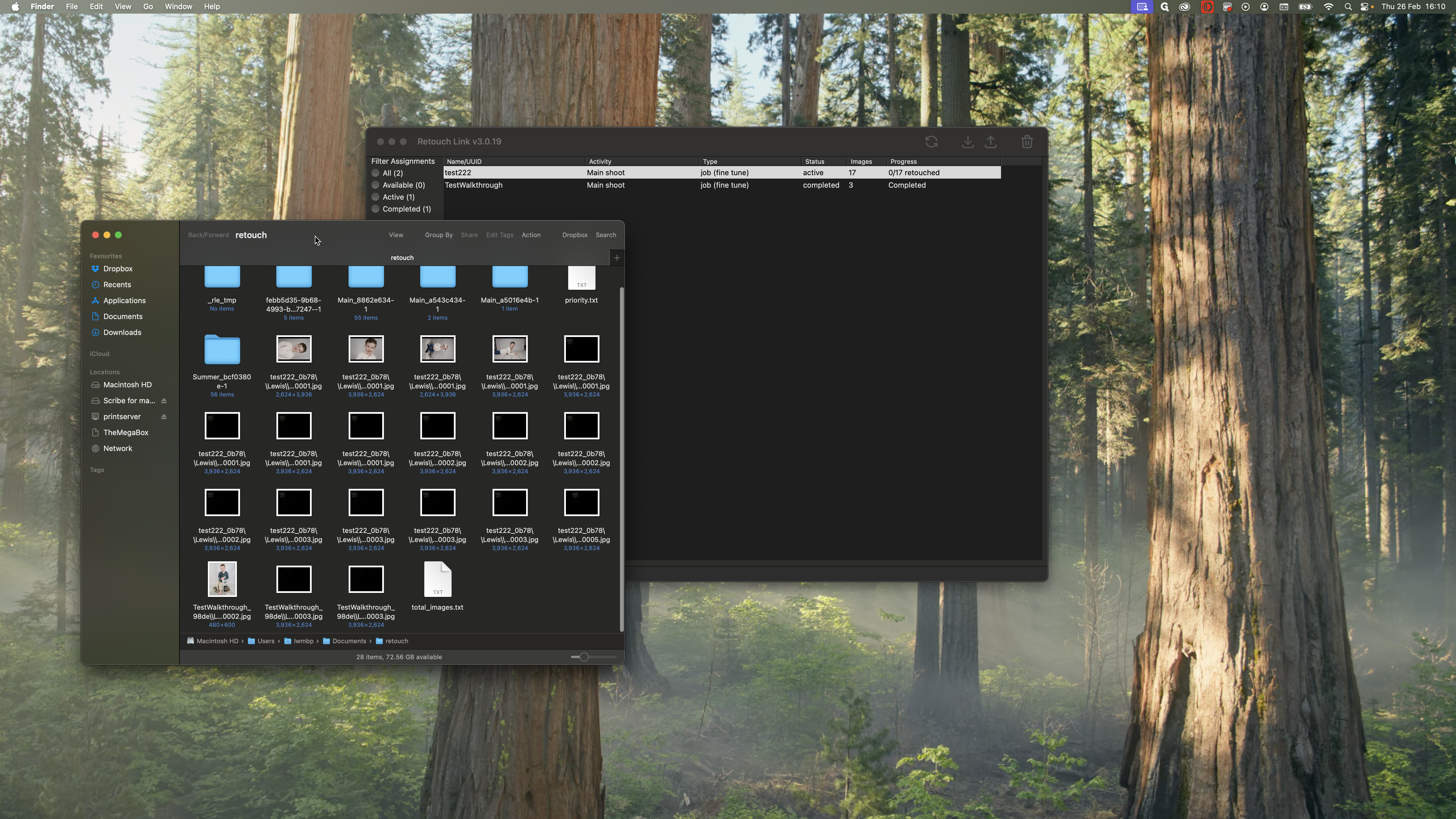 Drag the files into Lightroom or Photoshop. Edit them as you normally would. There are many black images here because that was part of the test. You can see that there are other ones here. Work on all the images in the main retouch directory. Once you're done, close it.