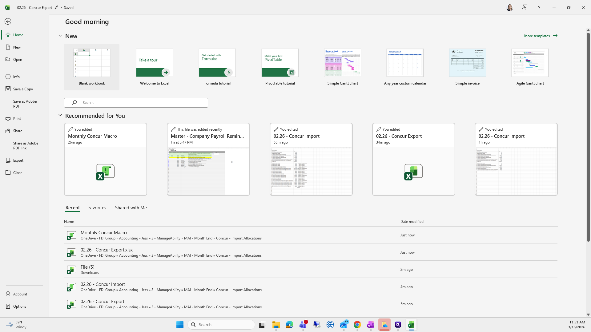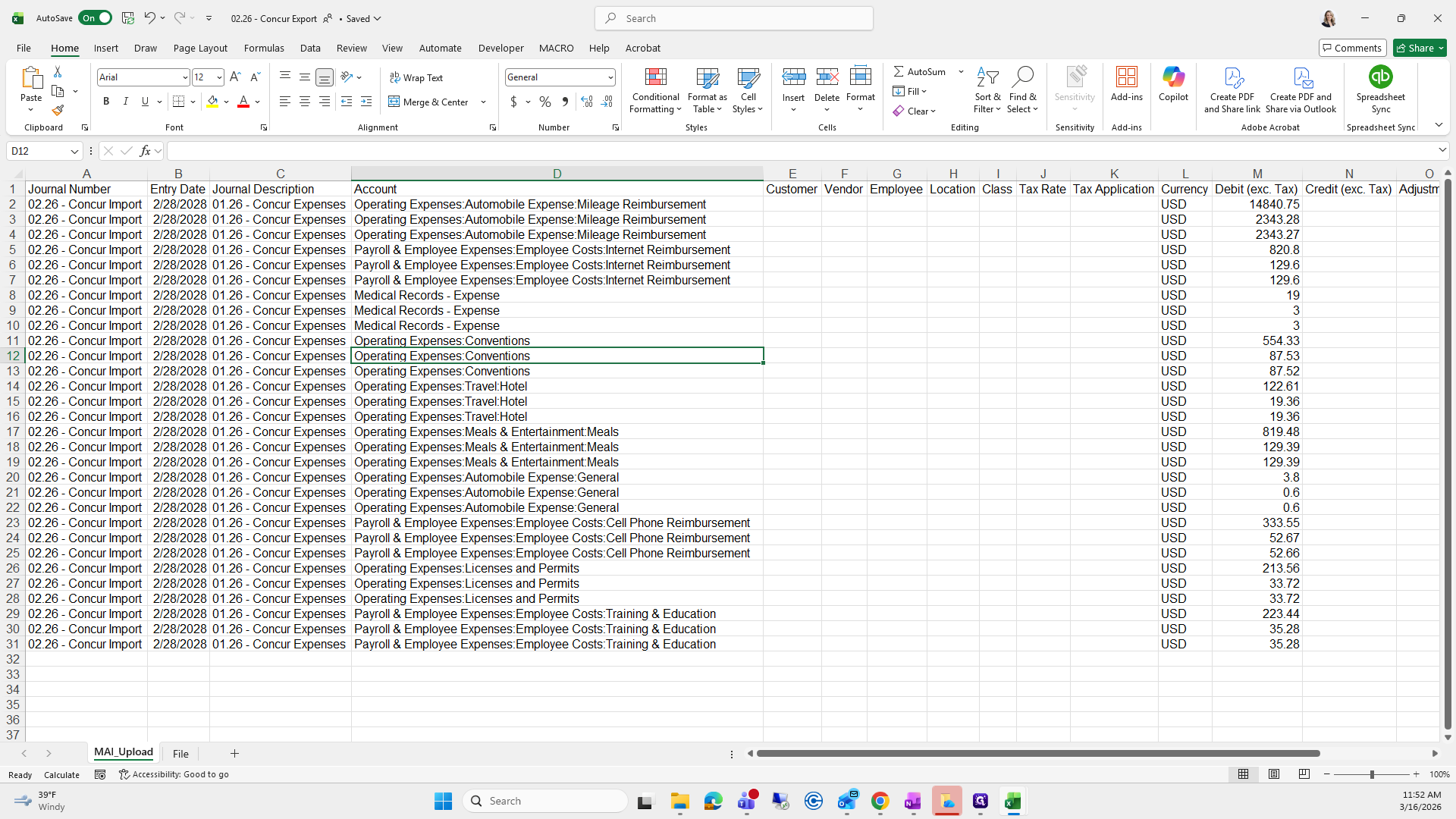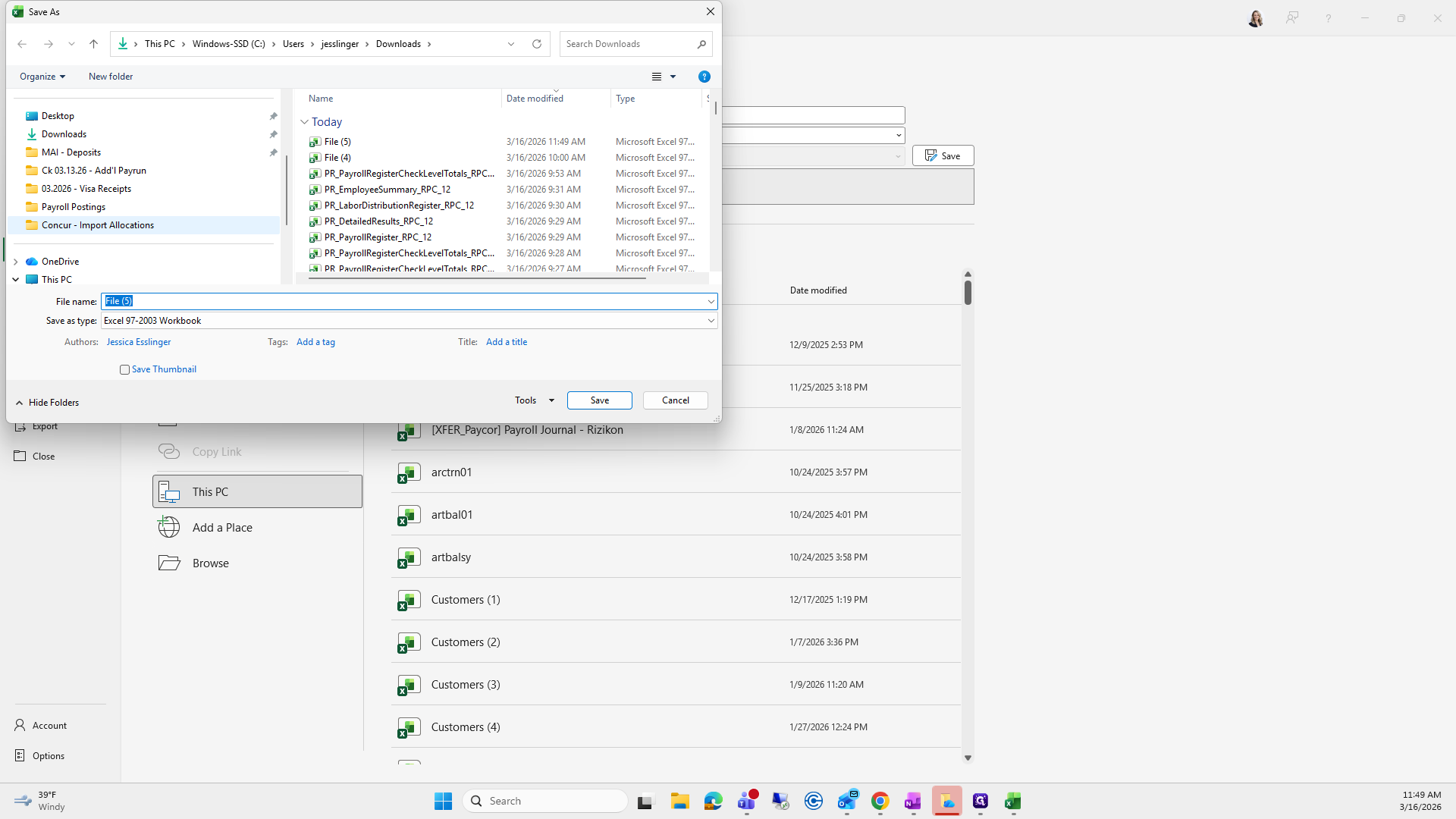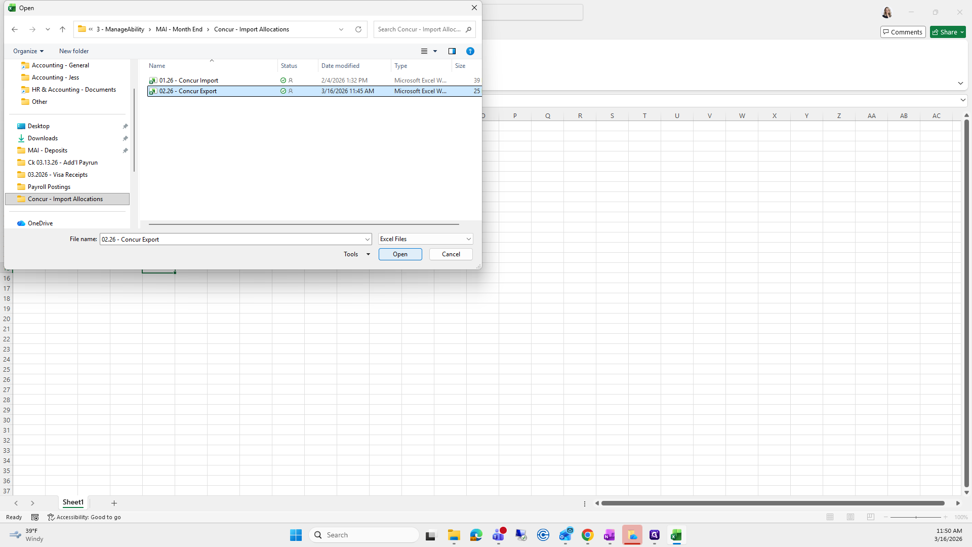 We will save it as the current month. Right now, it's "Concur Export," and I already have one saved here.