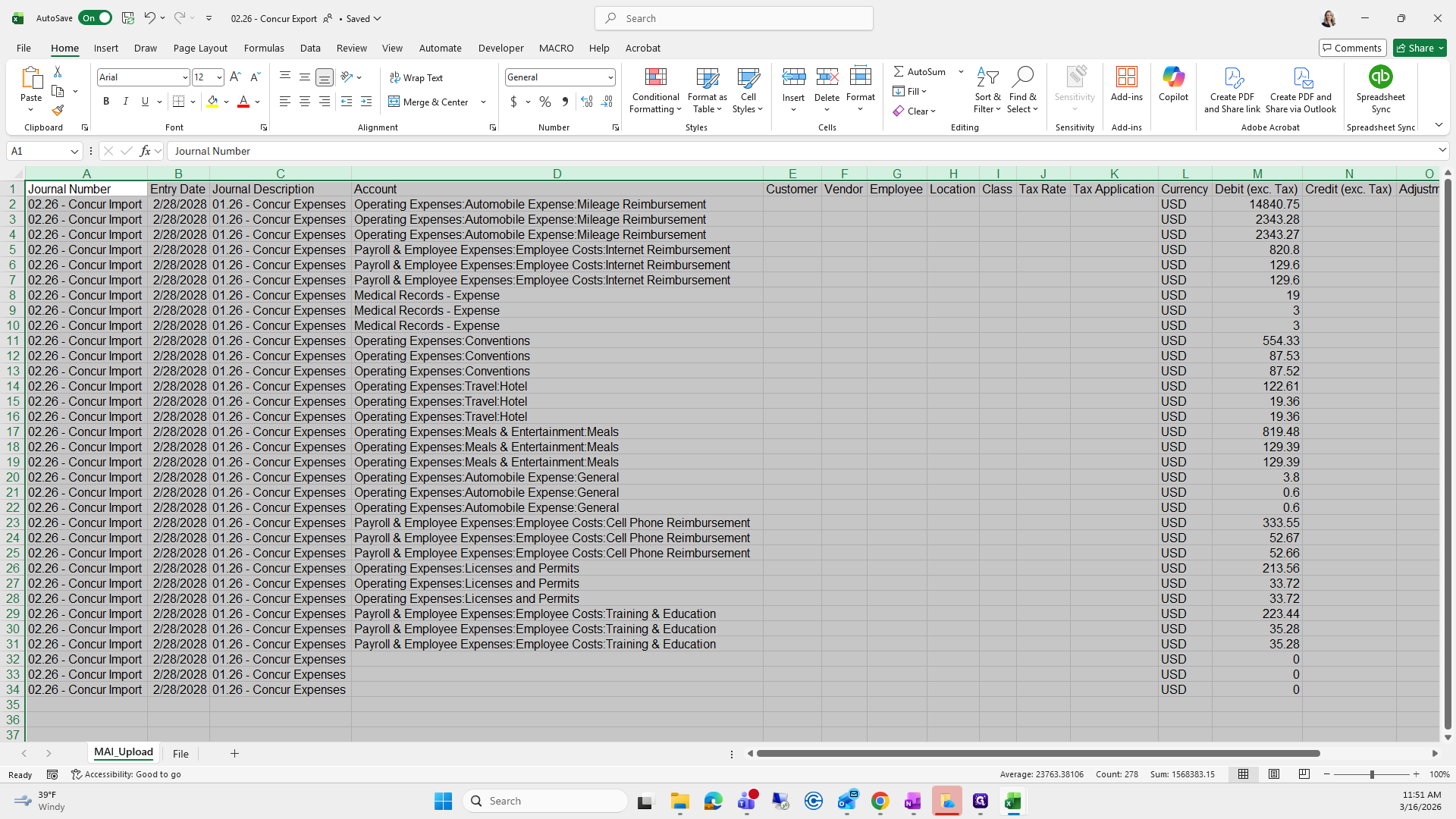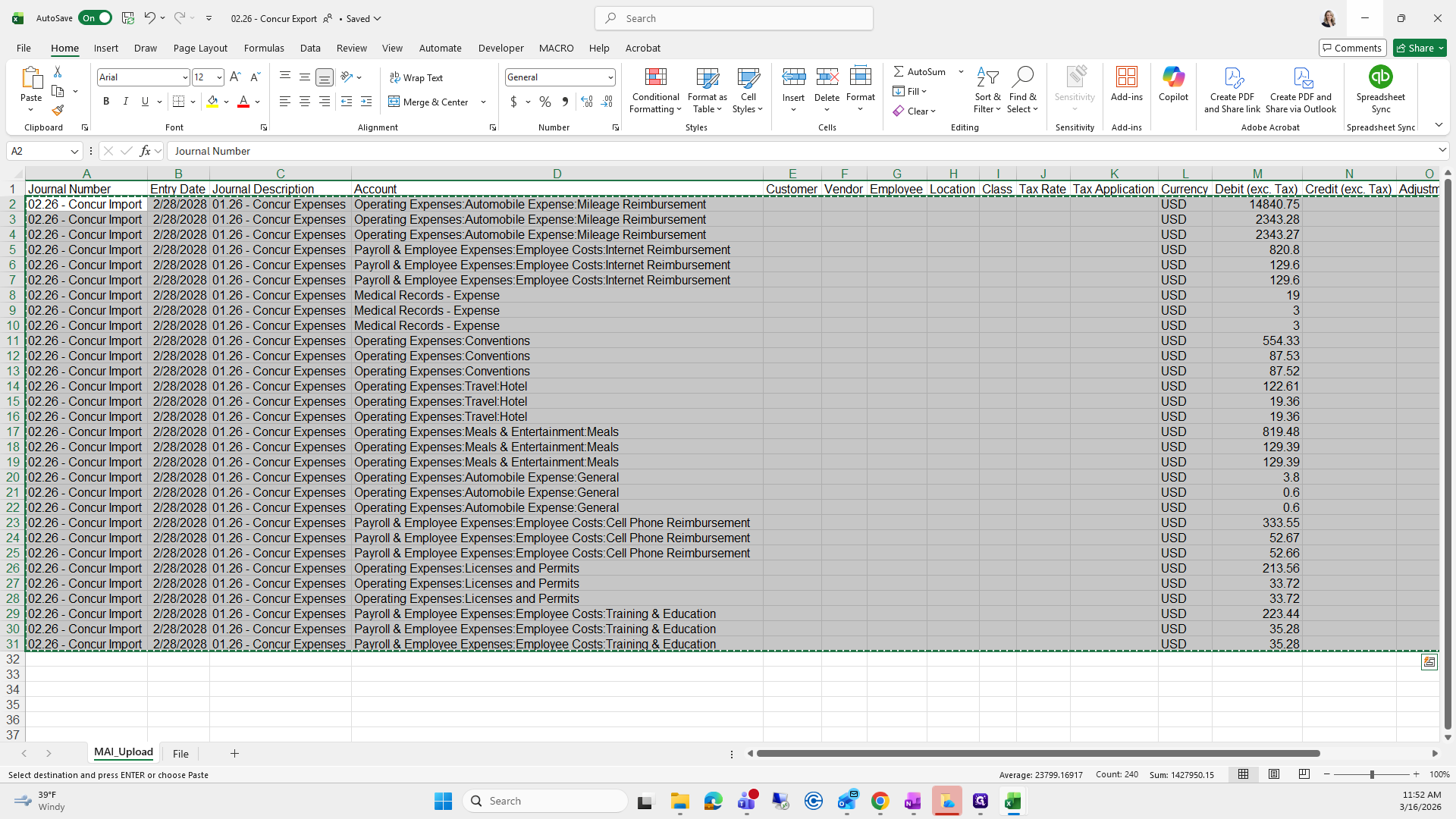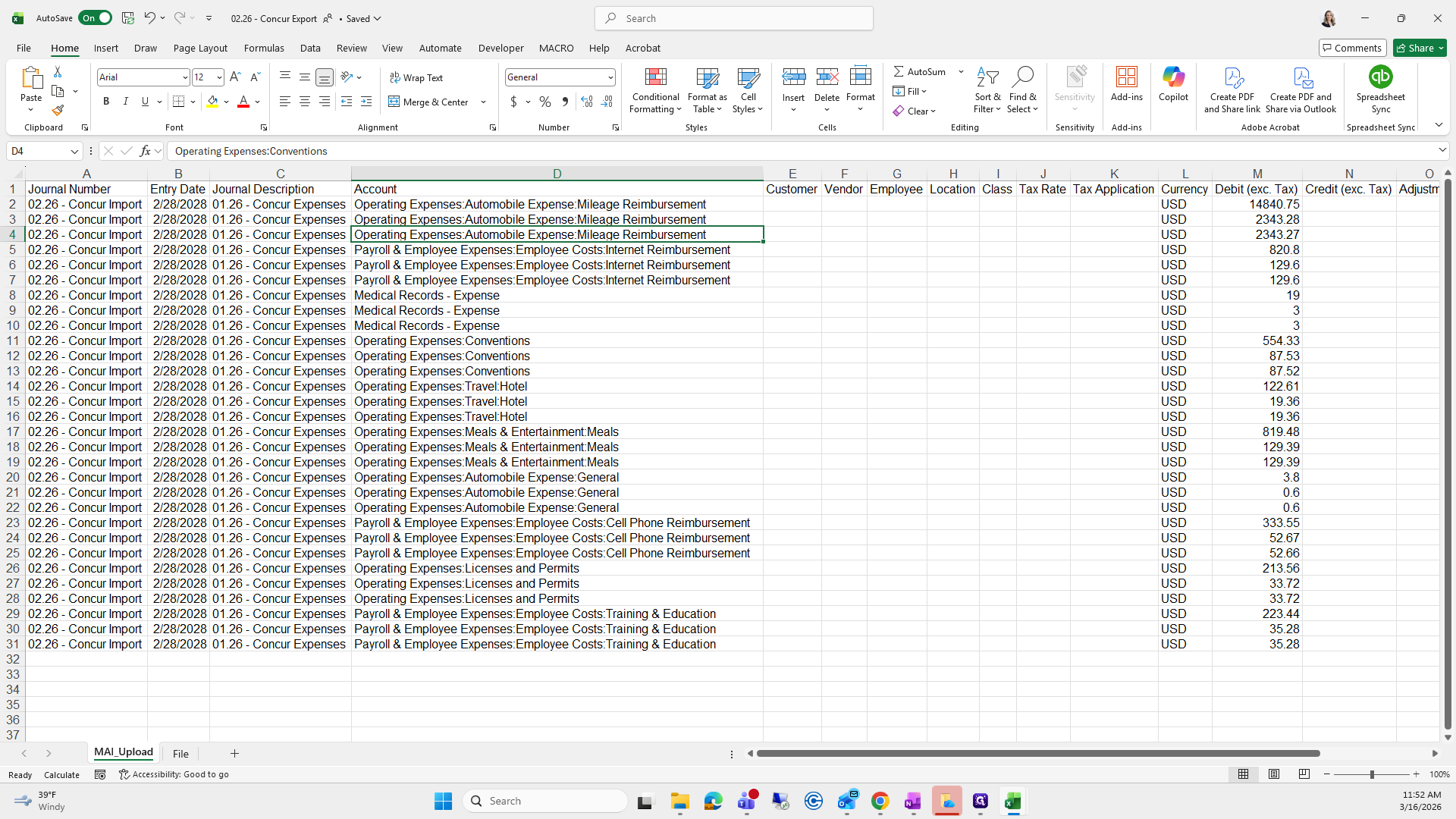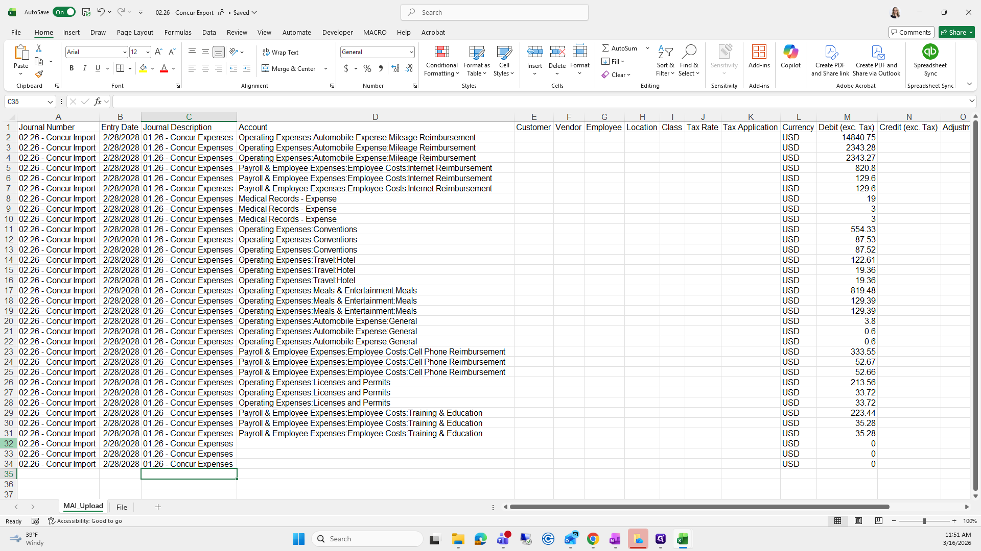 We will save it as the current month. Right now, it's "Concur Export," and I already have one saved here.
