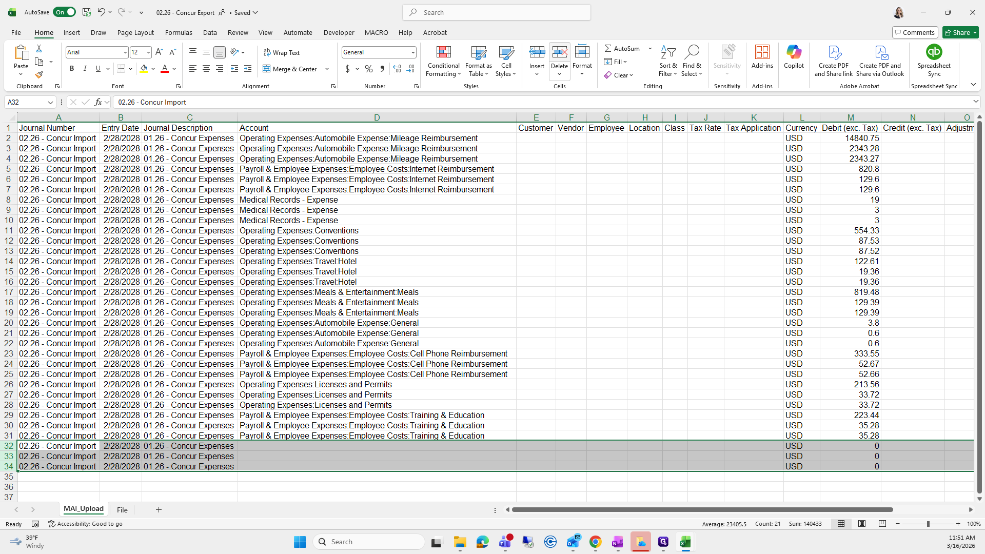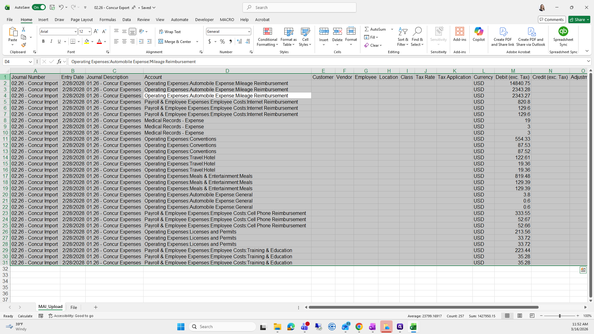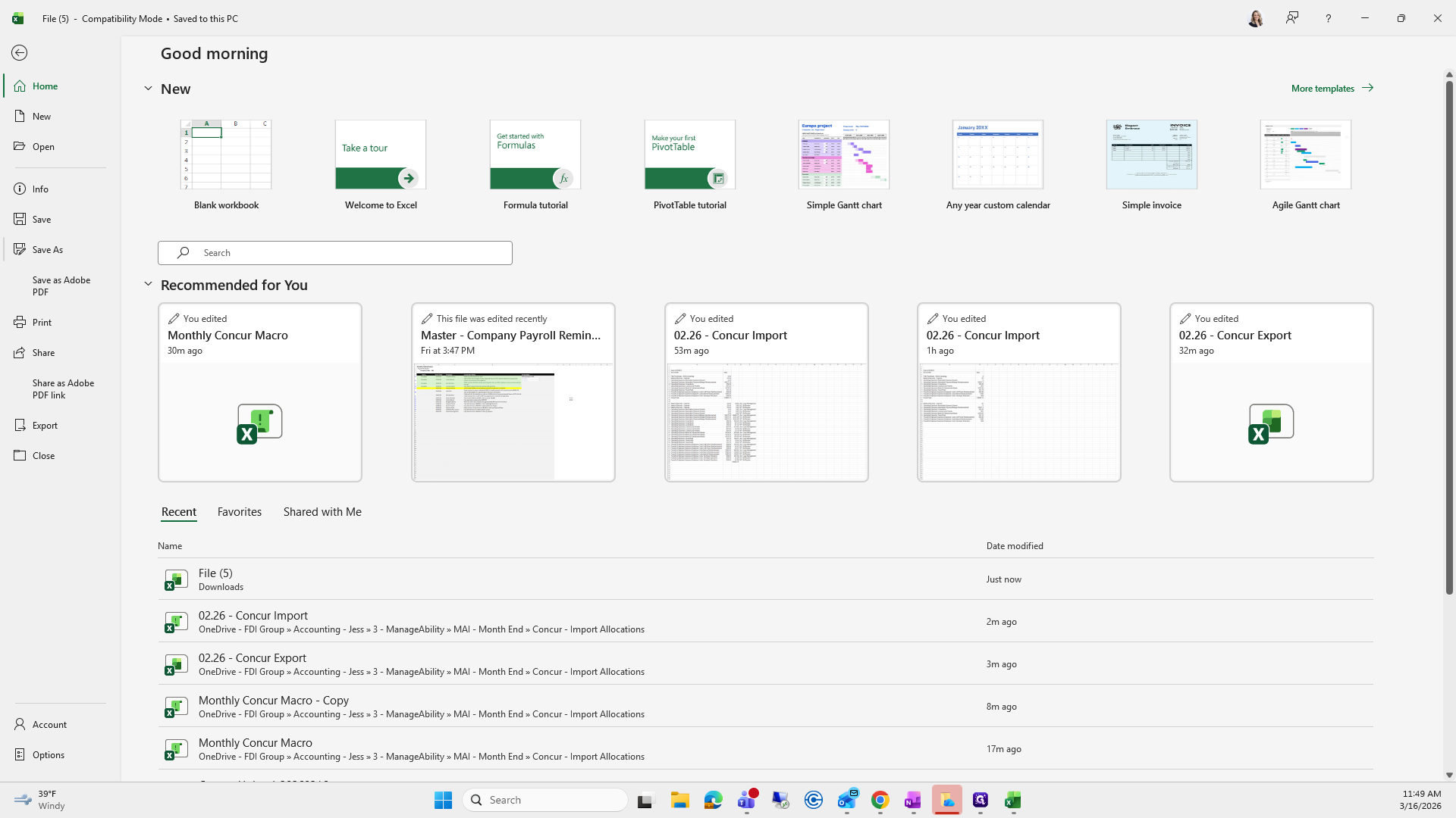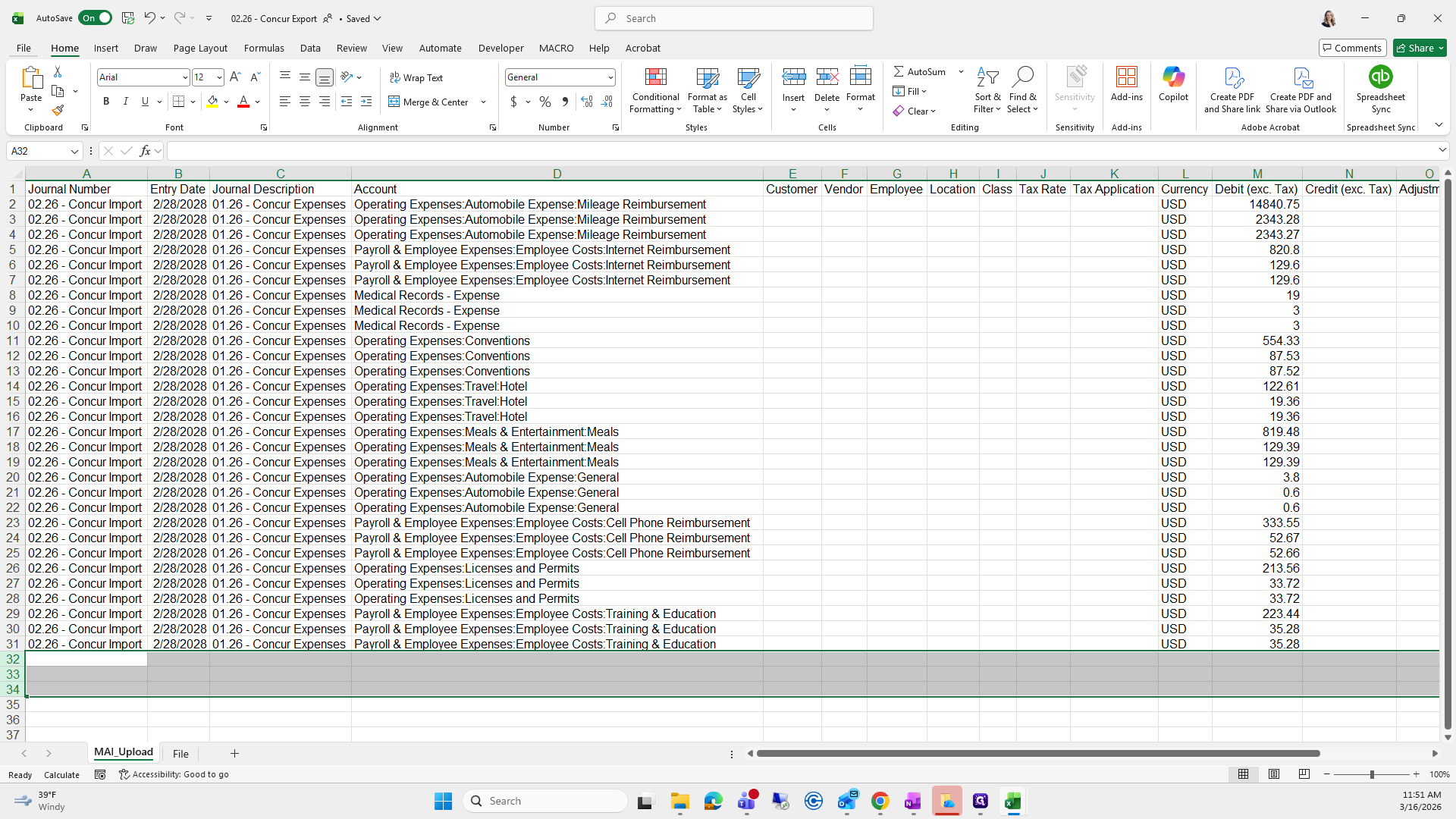We will save it as the current month. Right now, it's "Concur Export," and I already have one saved here.