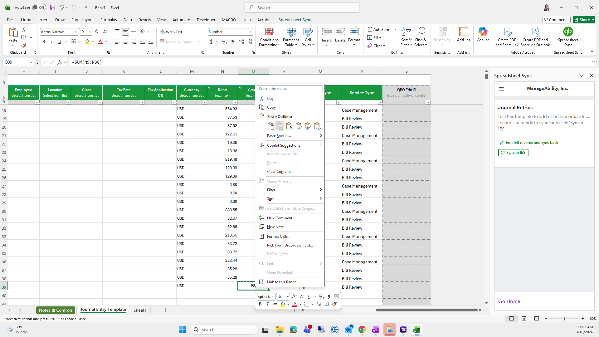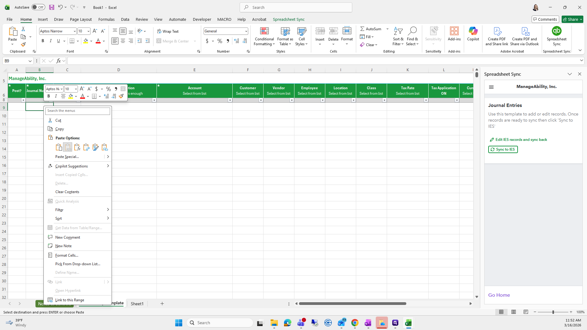 Right-click on the journal number, select Paste Special, and check that everything looks correct. It does.
