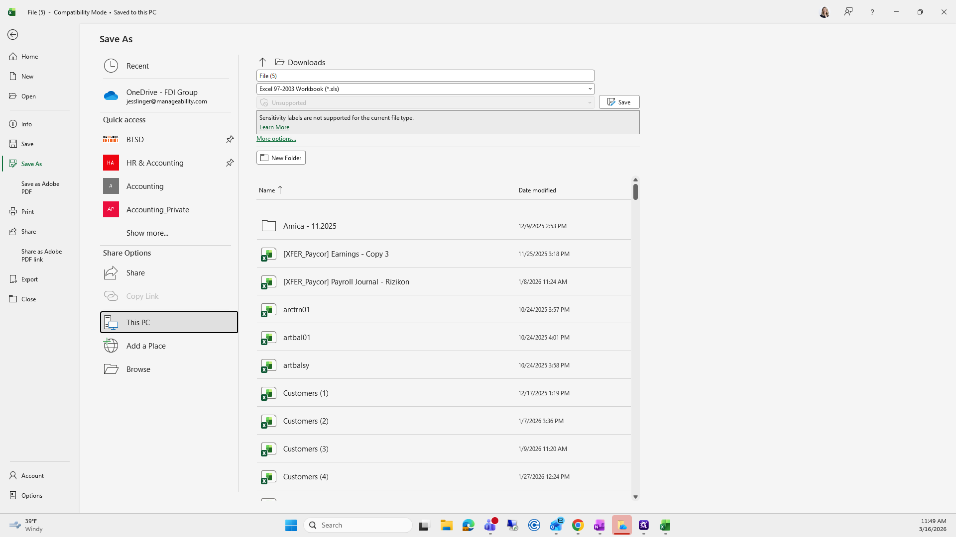 Next, go to File, select Save As, and choose This PC.