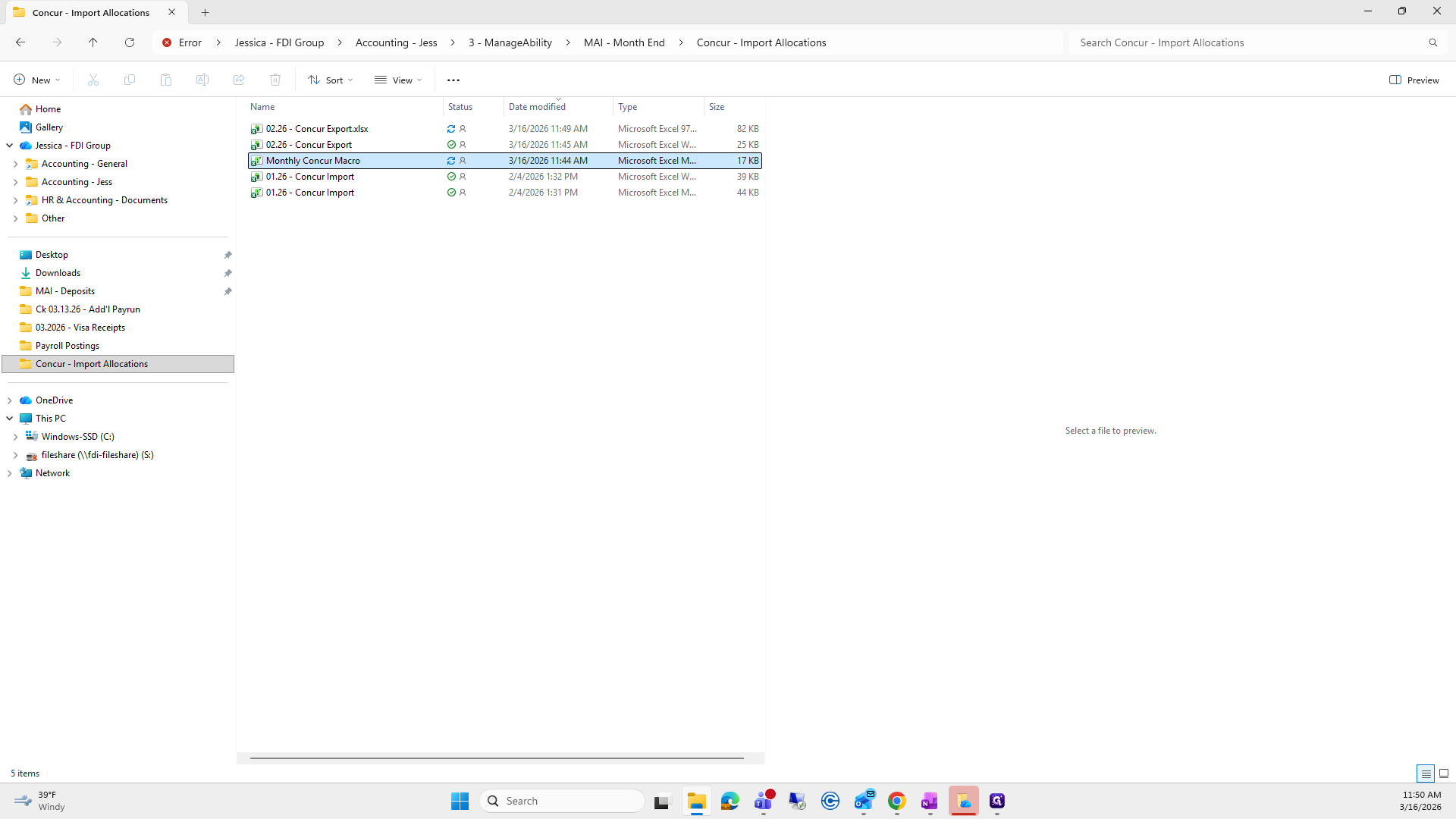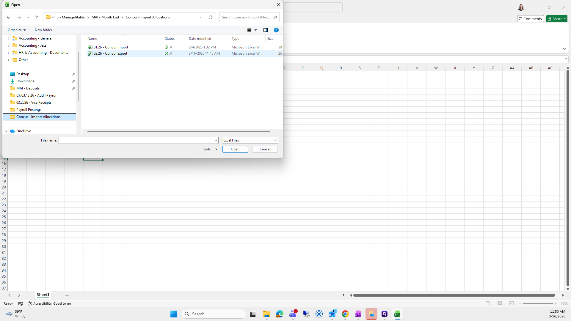 Next, go to the folder Concur Import Allocations. I will provide you with the path.