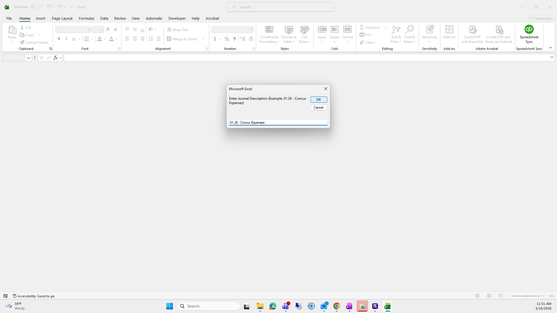 Since this was for January Concur expenses, that is what I'm going to type. Click OK, and it generates your sheet automatically. It allocates everything you need.