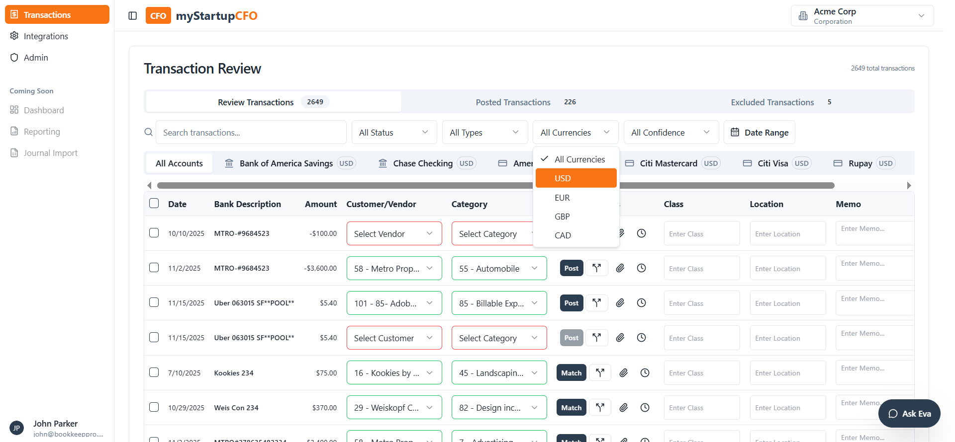 In this guide, we'll learn how to filter transactions by currency. This process helps you view only the transactions in a specific currency, such as USD. Filtering by currency can make it easier to review and manage your financial records.