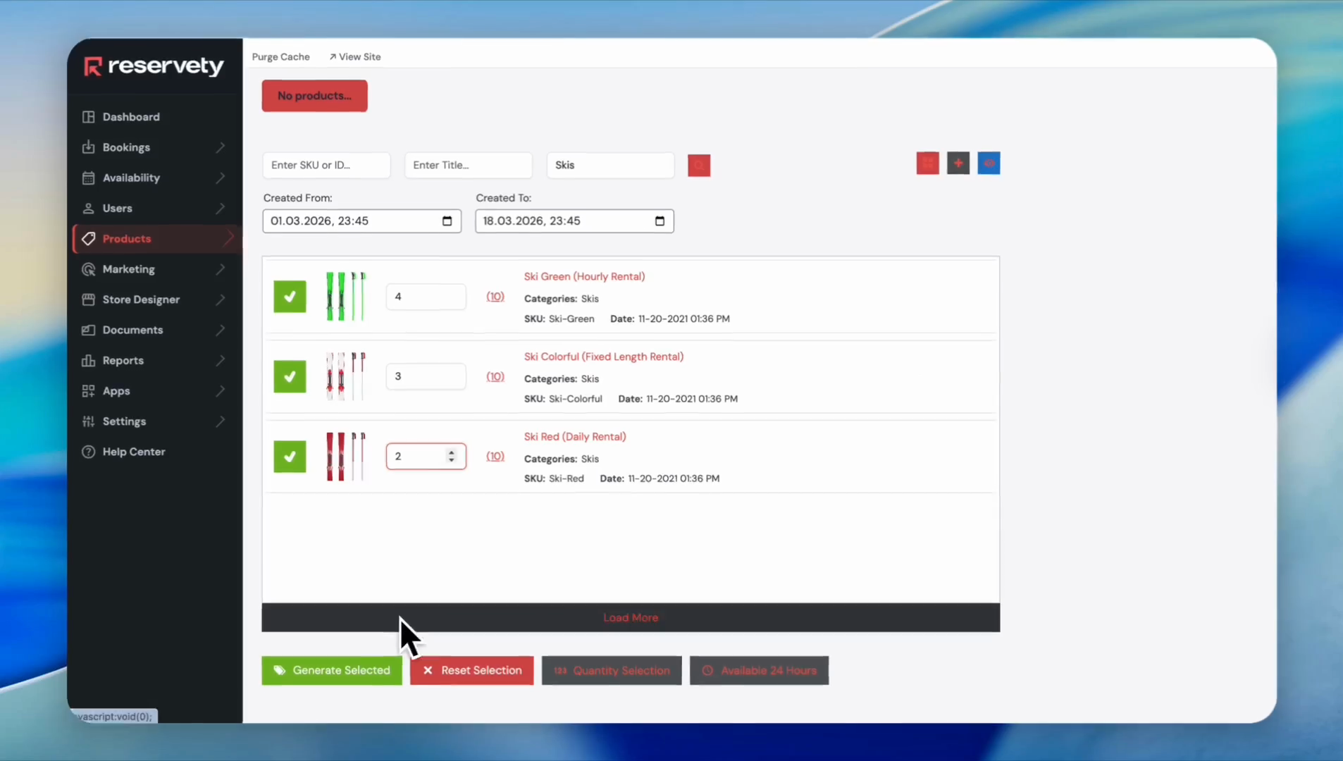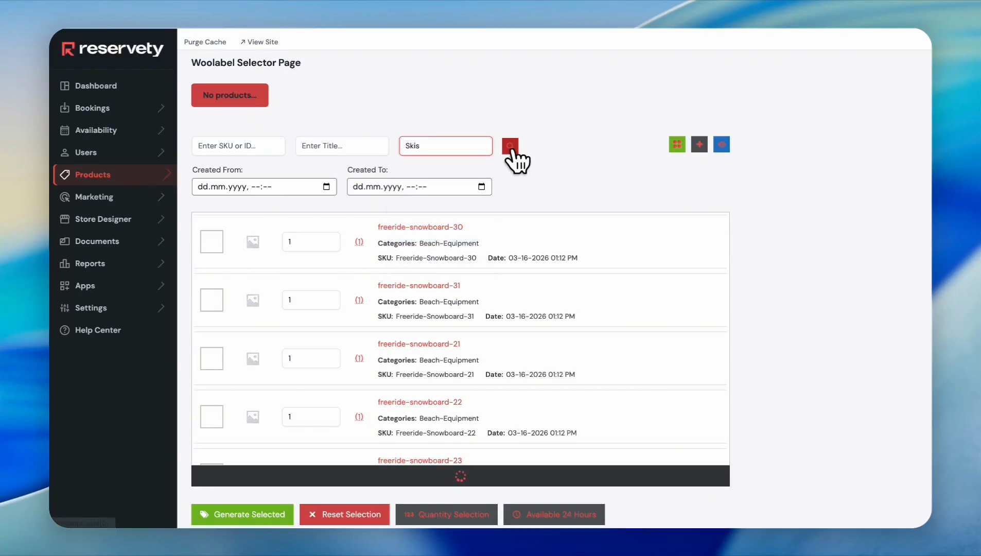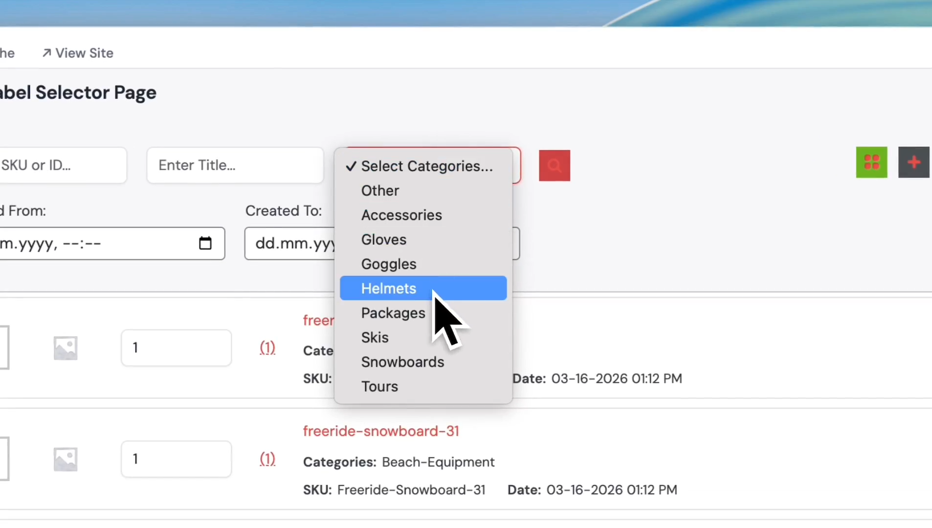 Let's discuss the fast selection feature. For example, we selected Skis from the category and clicked Search.