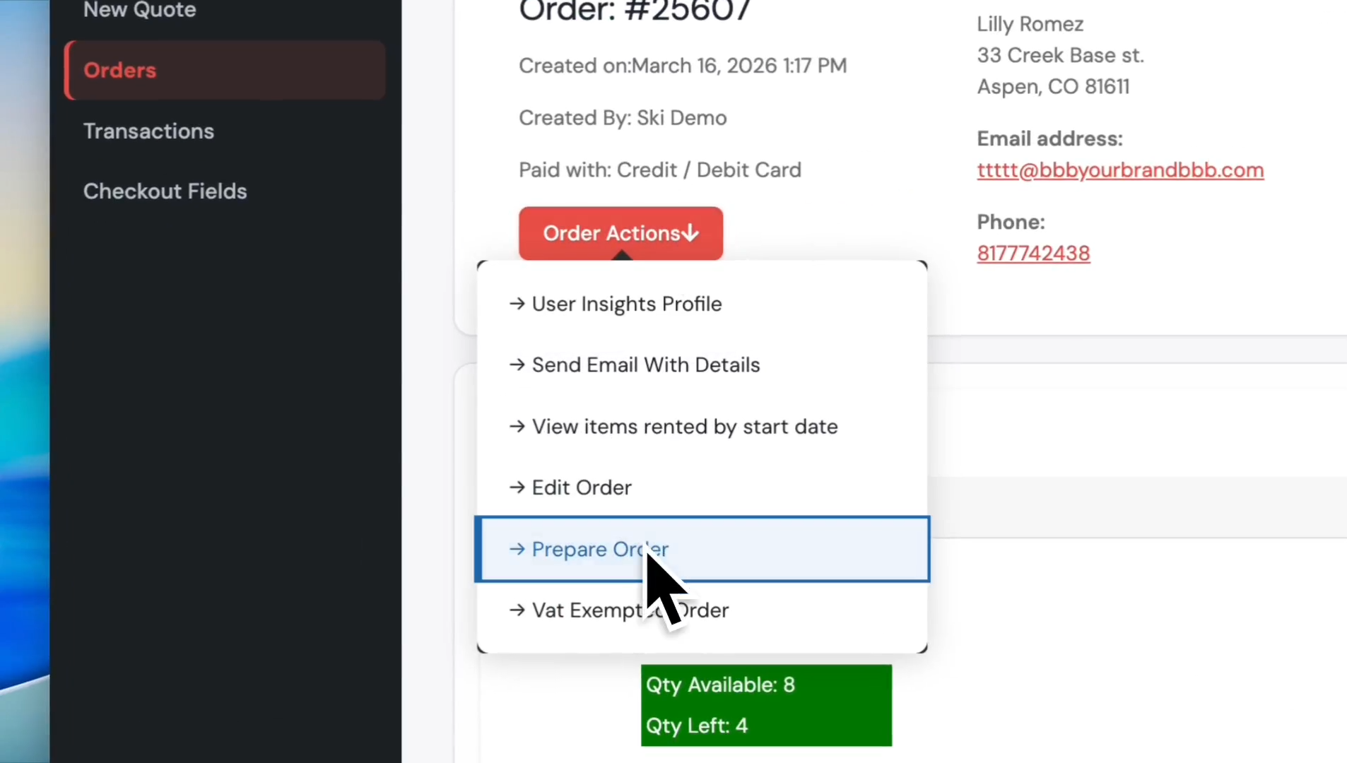 Click on 'Prepare Order' from the dropdown menu.