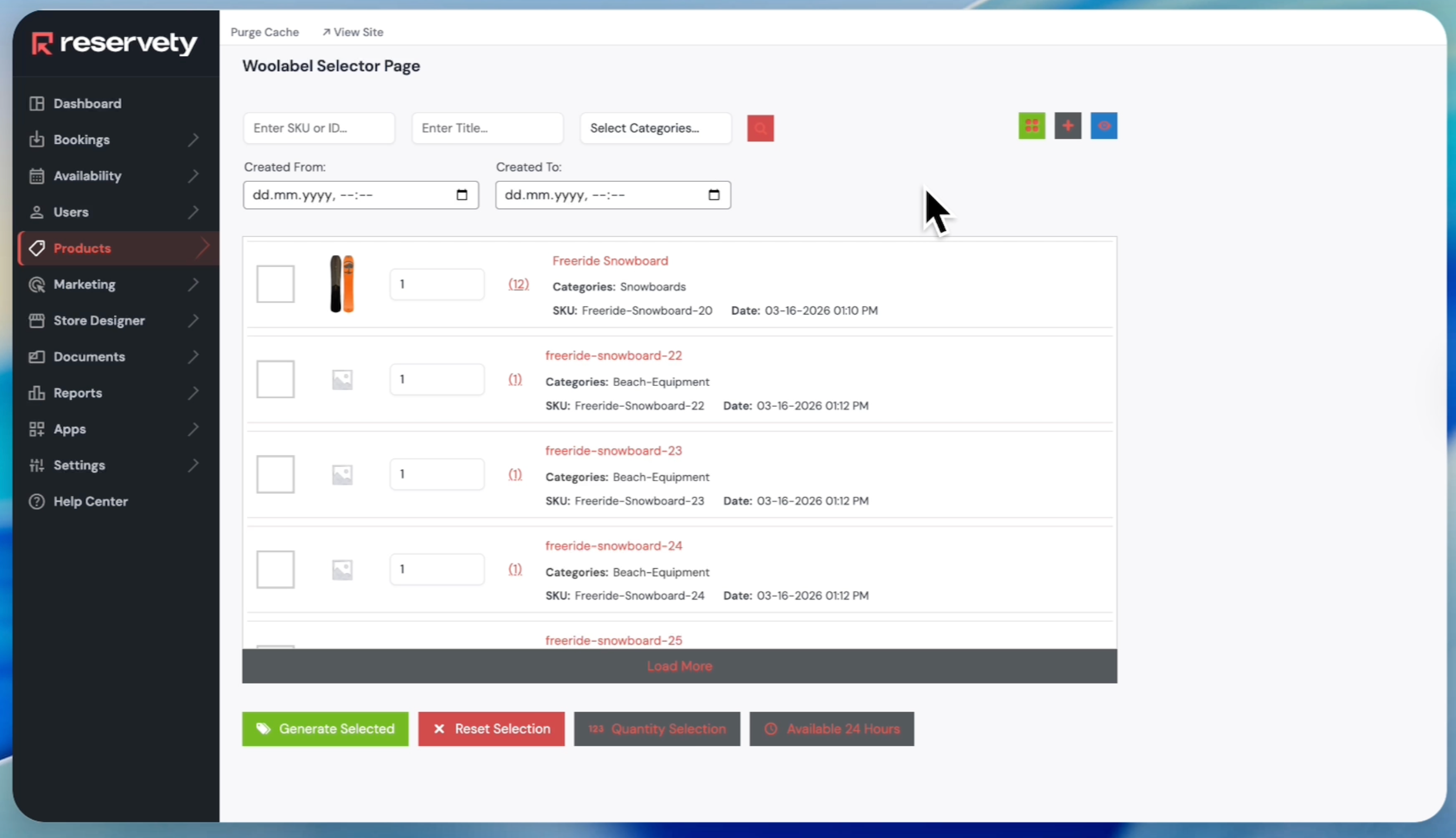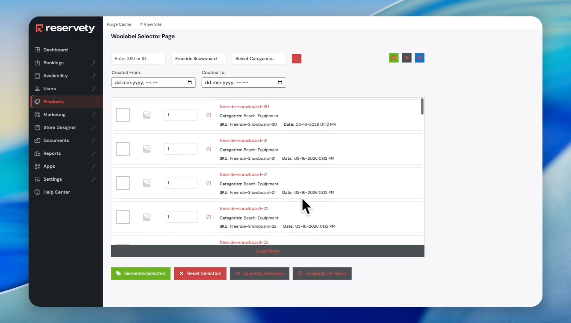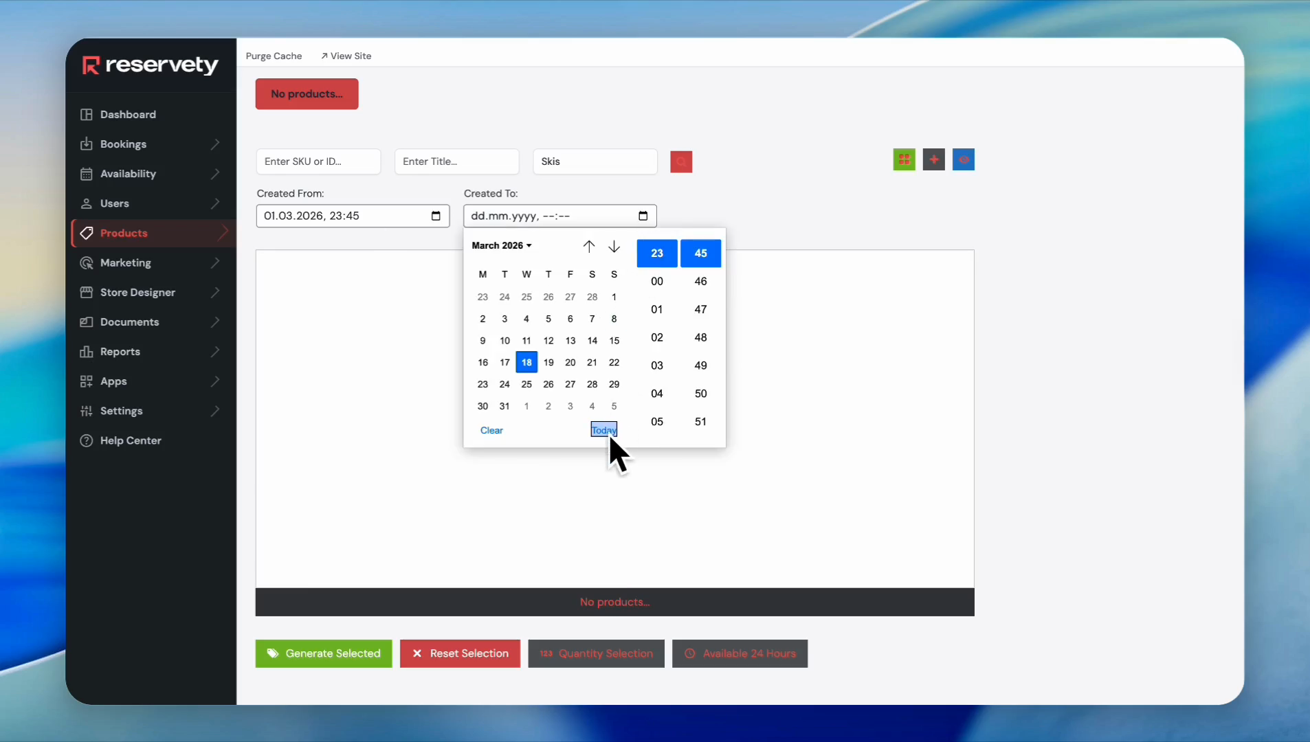 The system also lets you select products added within specific time ranges.