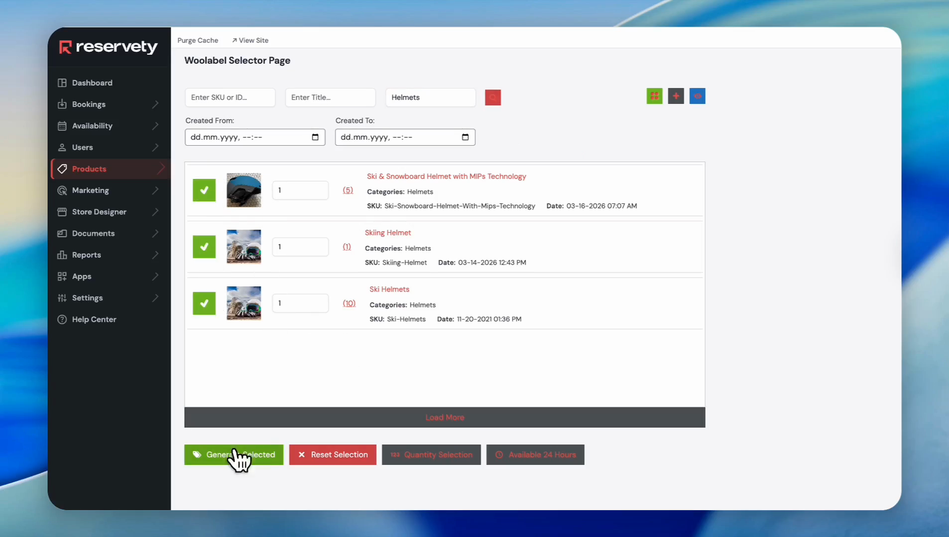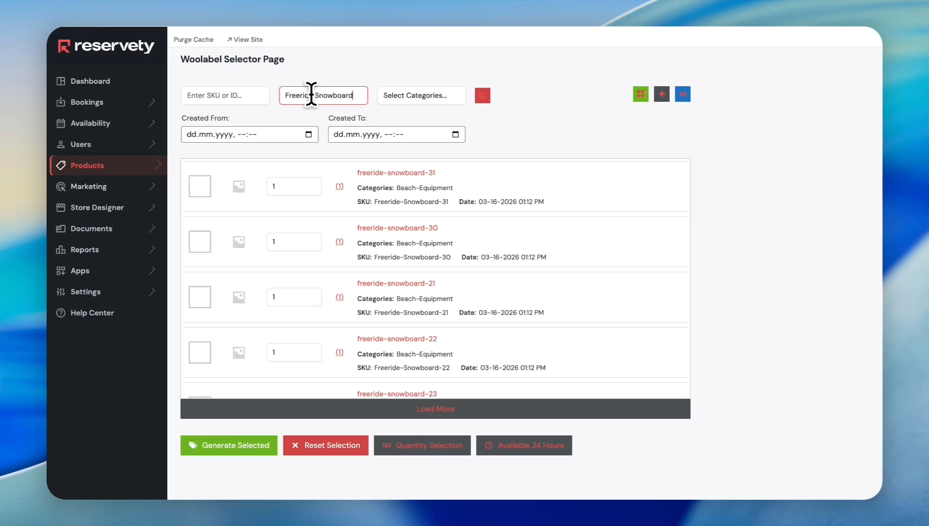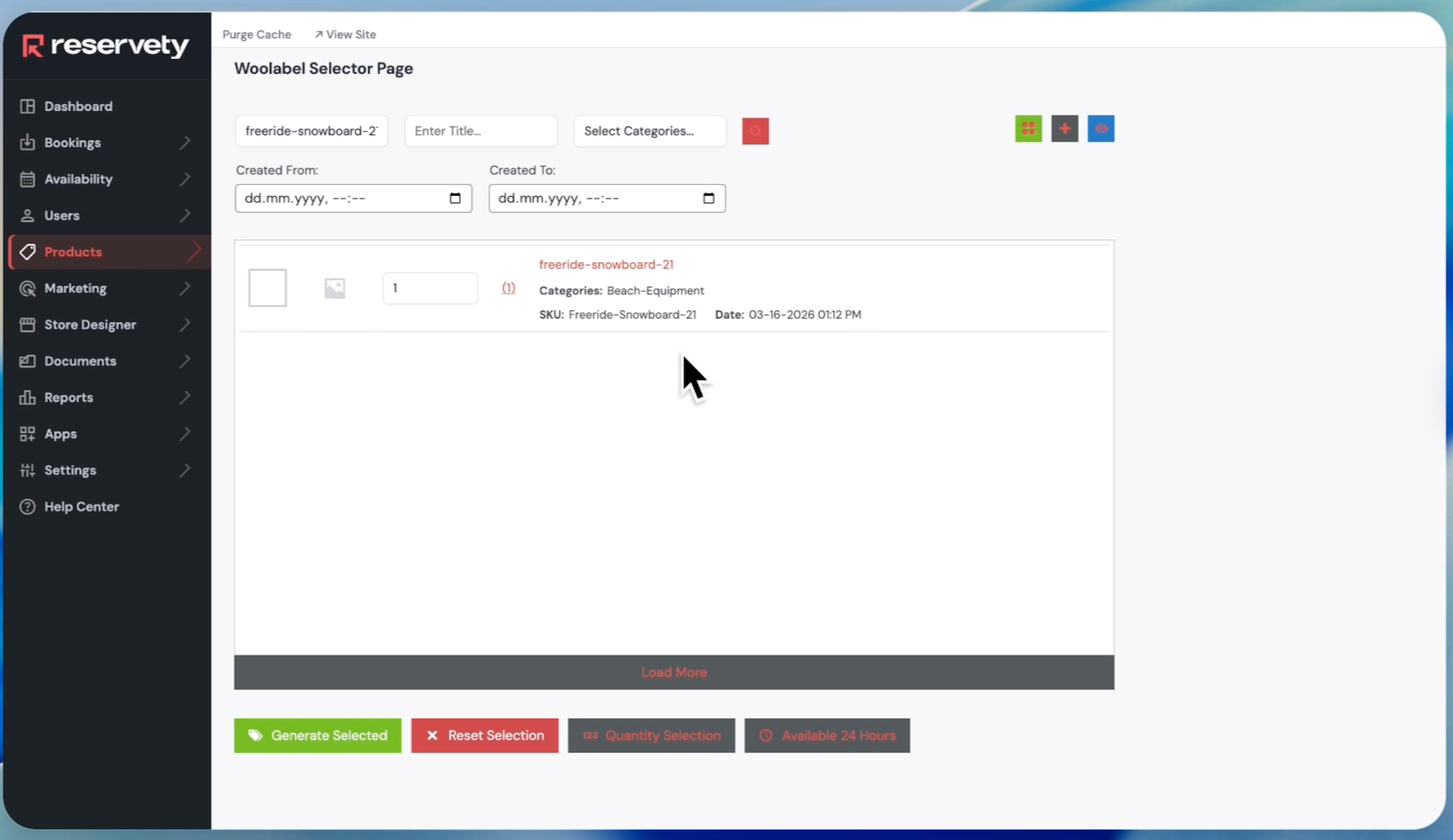 The system also lets you select products added within specific time ranges.