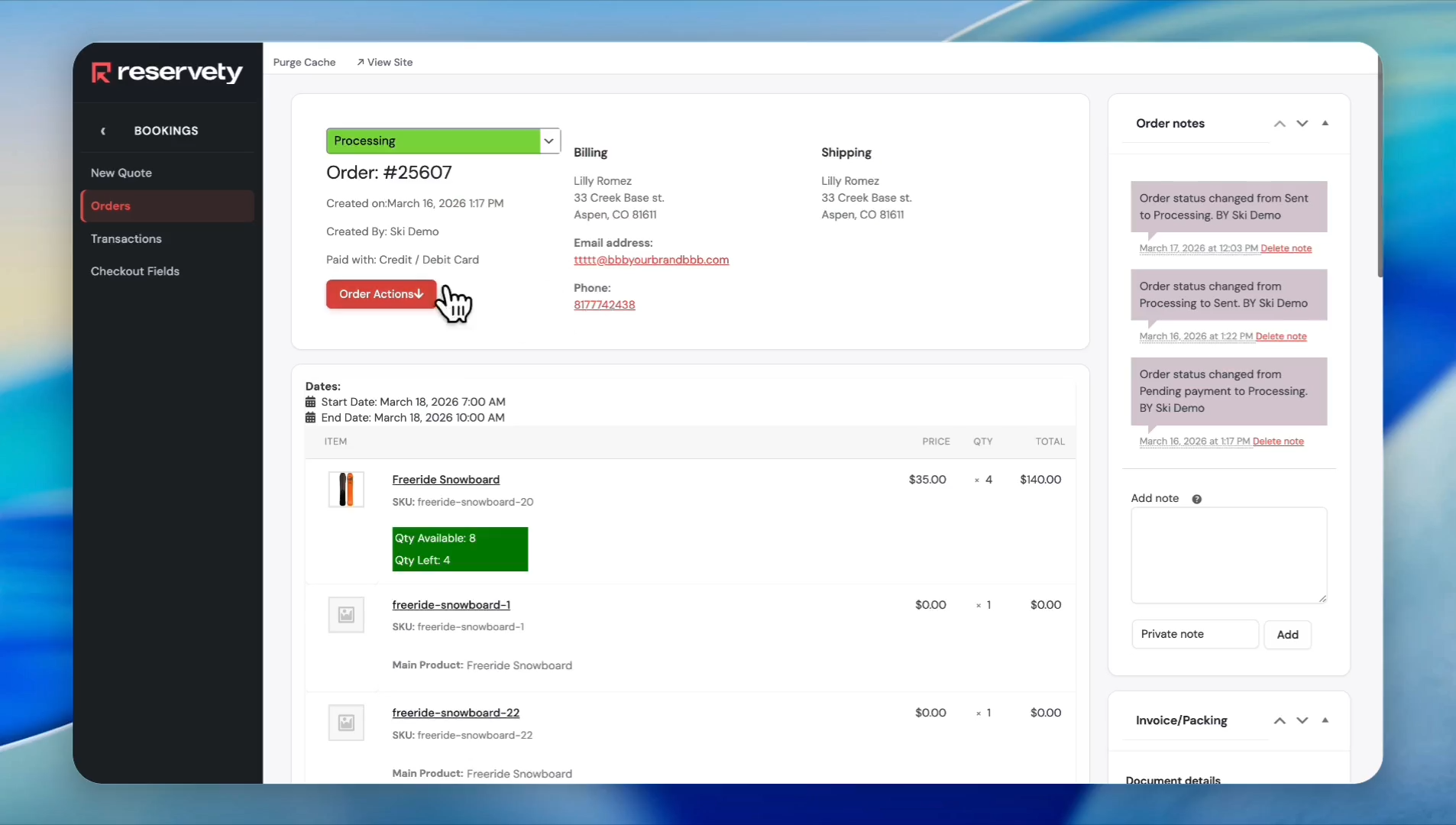 Click the 'Order Actions' button.