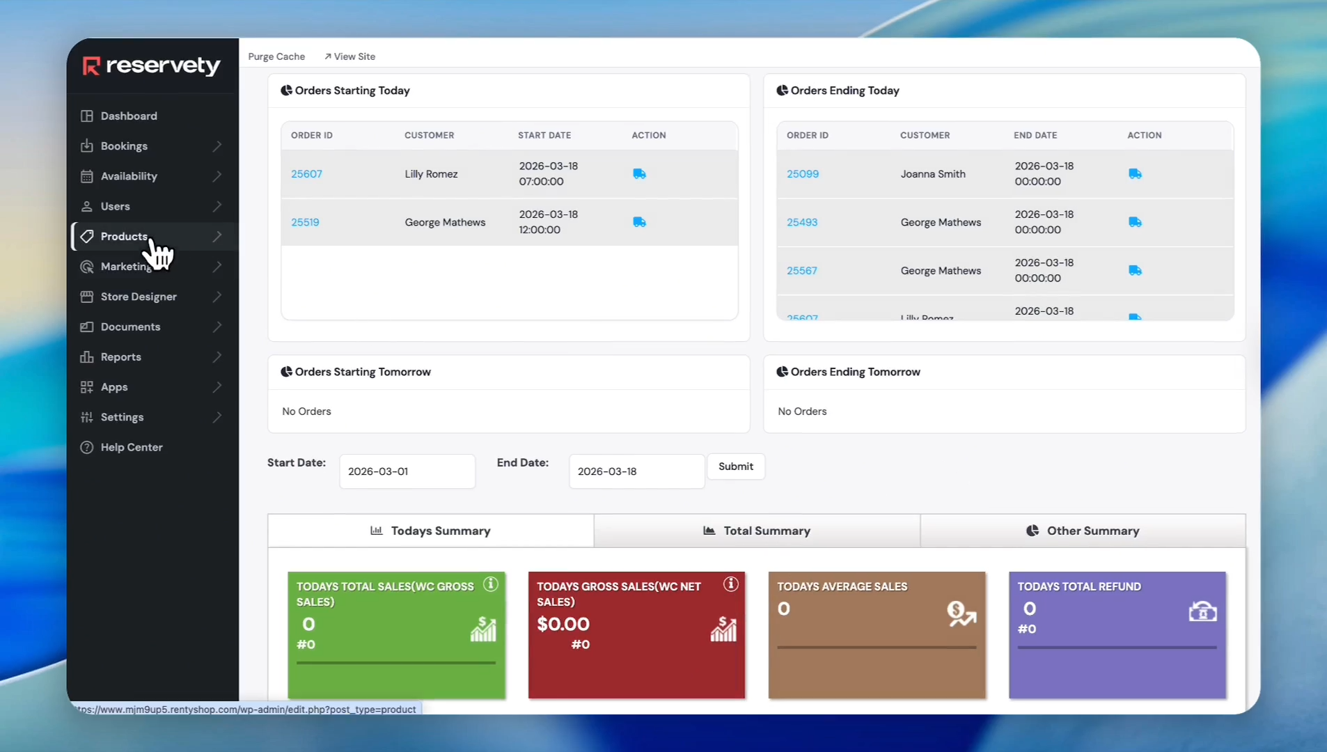Log in to your rental dashboard, then click Products in the left sidebar.
