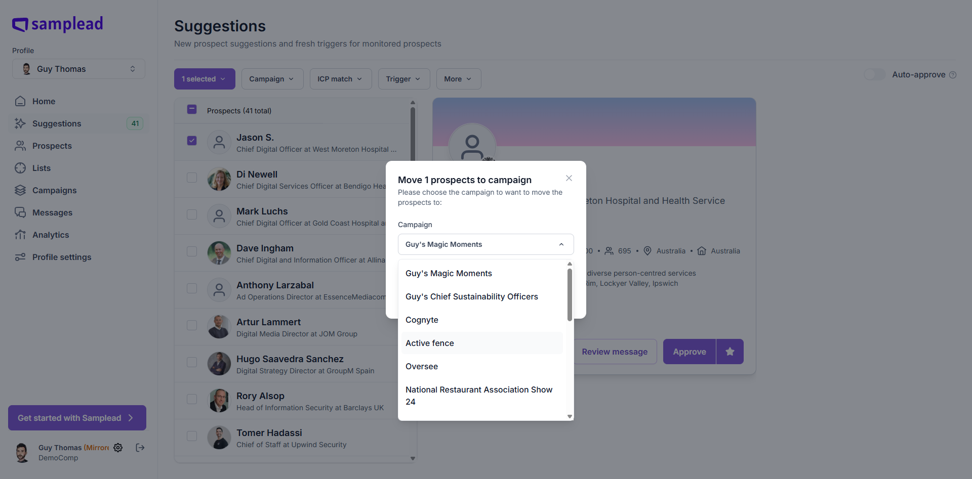 In this guide, we'll learn how to move prospects between campaigns in Samplead. This process helps you organize your prospects and ensure they are assigned to the right campaigns. You will see how to select a prospect and transfer them to a different campaign.