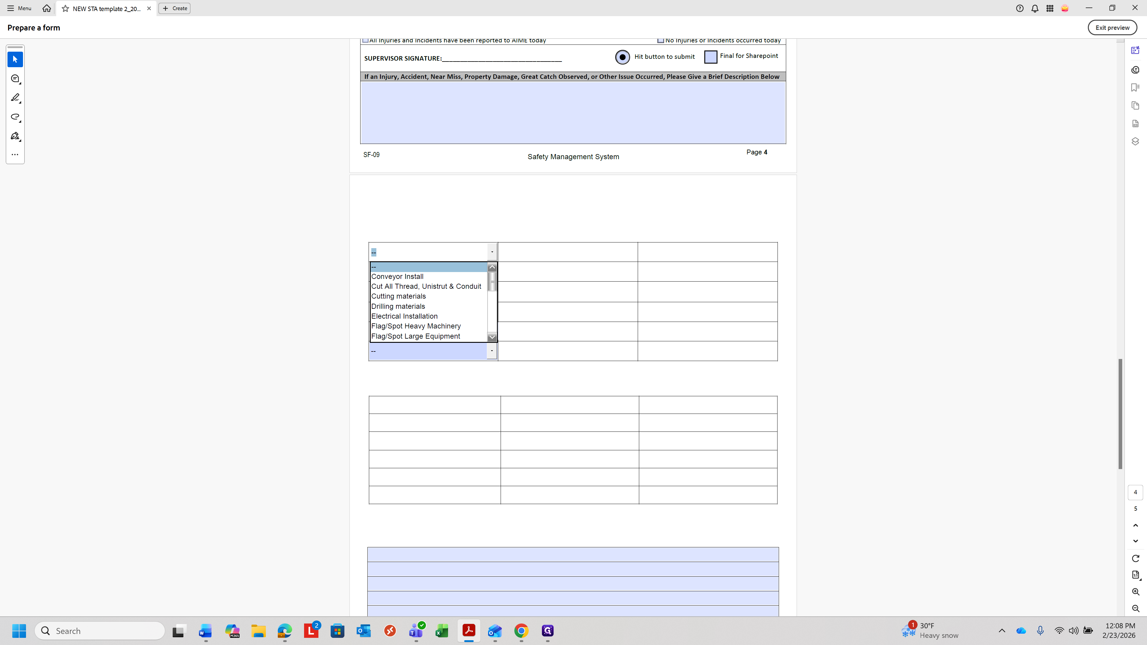 Once it opens, you will see the STA form. Next, select the specific field, which is important.