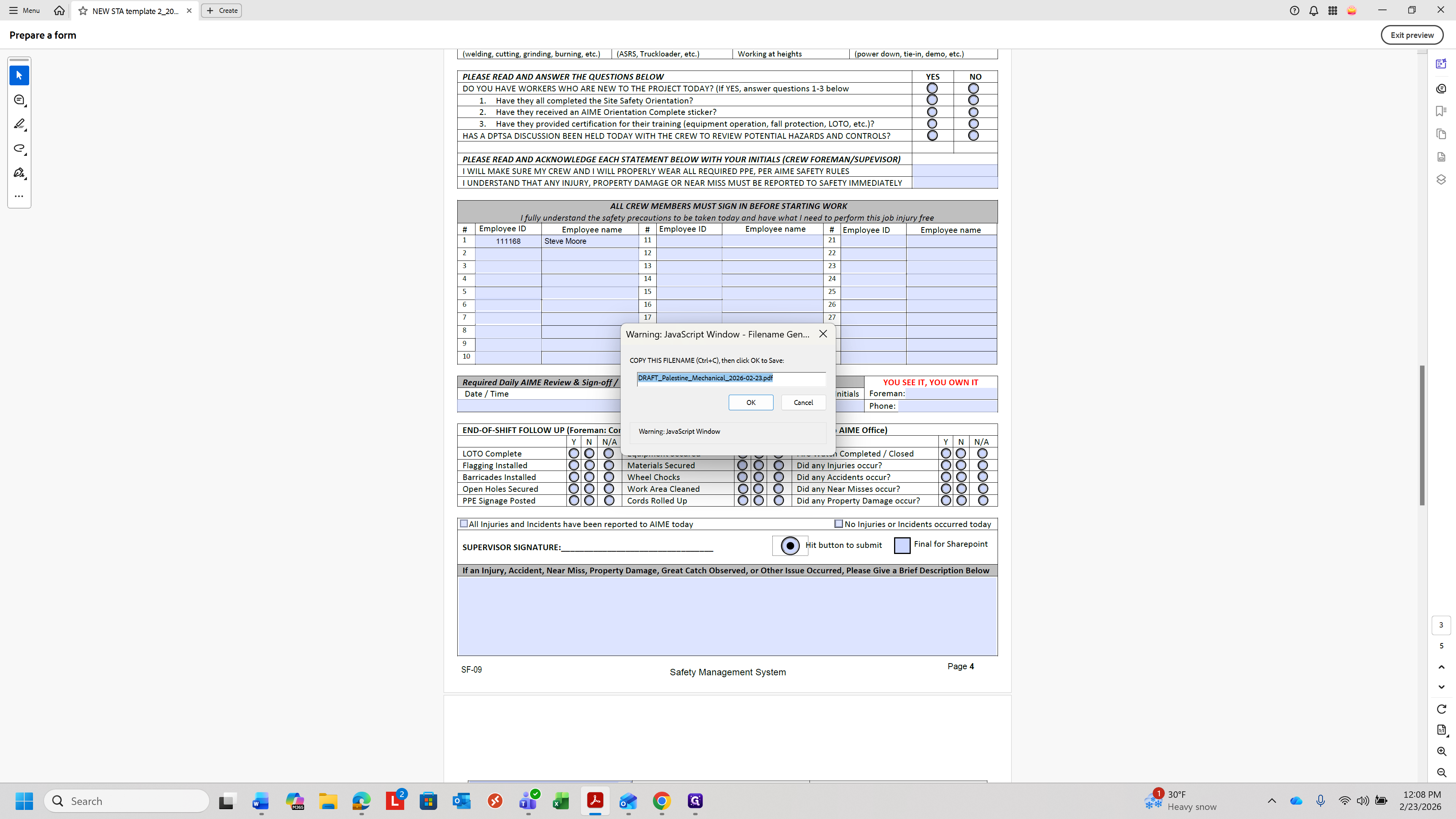 That will give you a name, which you can copy using Control+C when saving. If it is ready to be saved as a final version, you can save it for SharePoint.
