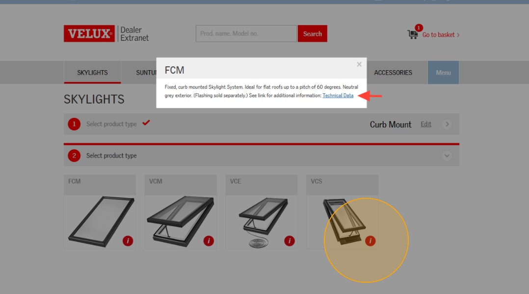 Clicking the red "i" in the lower right will display detailed information including a clickable Technical Data link which includes installation instructions, product testing data, measurement guides, and more.