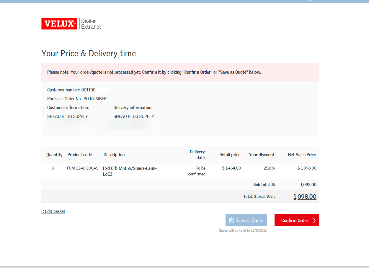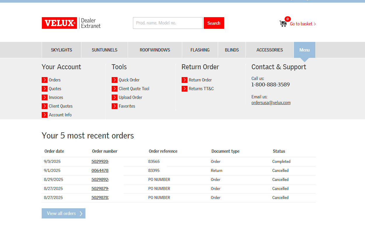How to Place an Order/Quote Using the VELUX Dealer Extranet: Step-by-Step Guide
