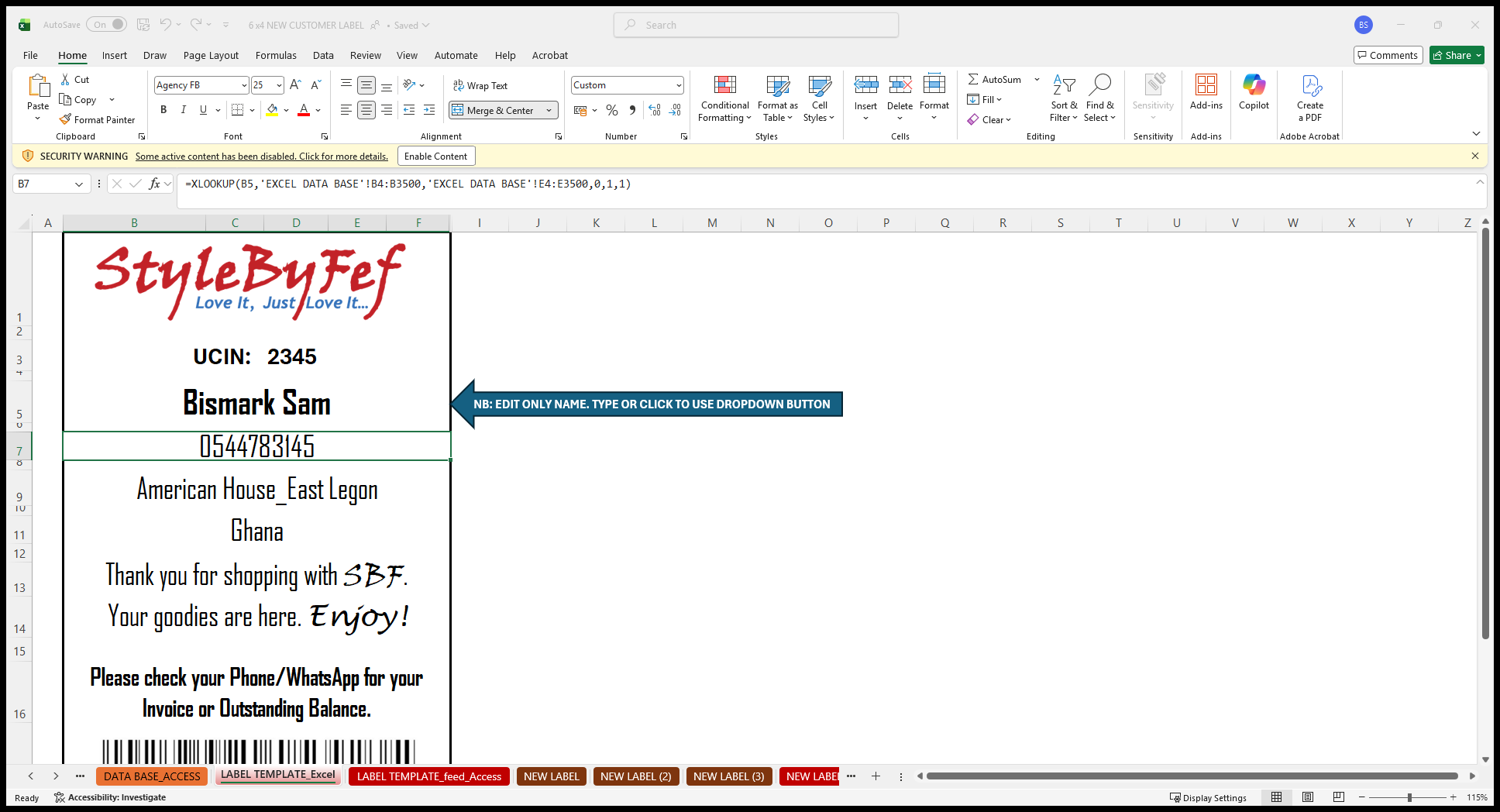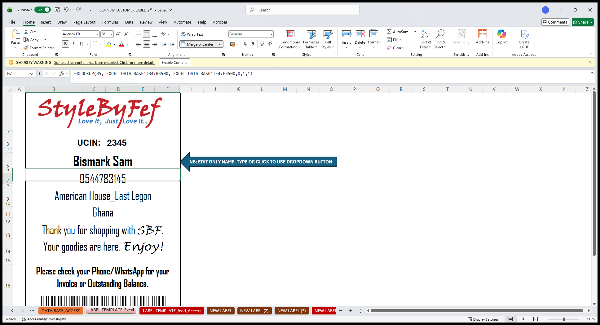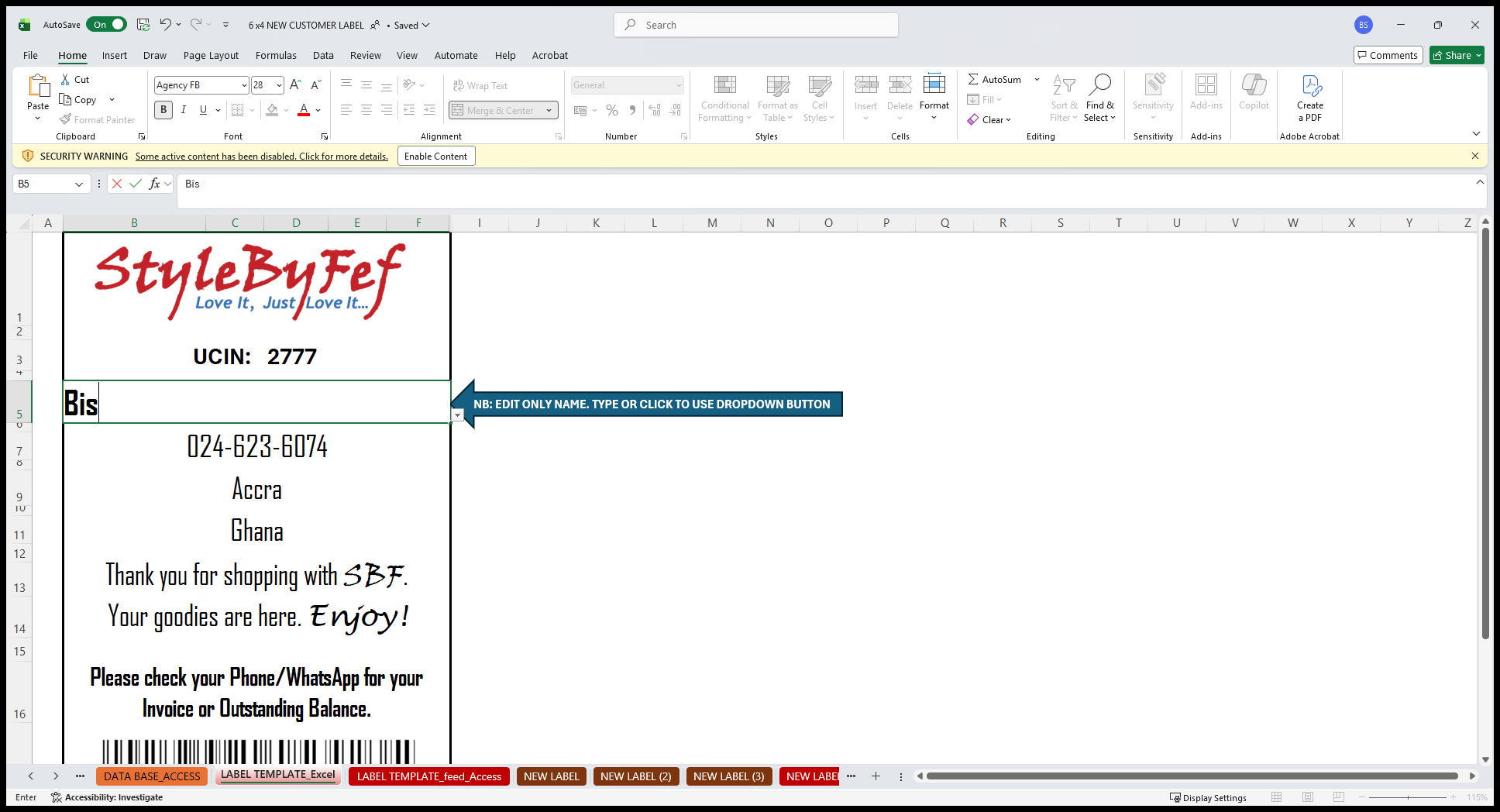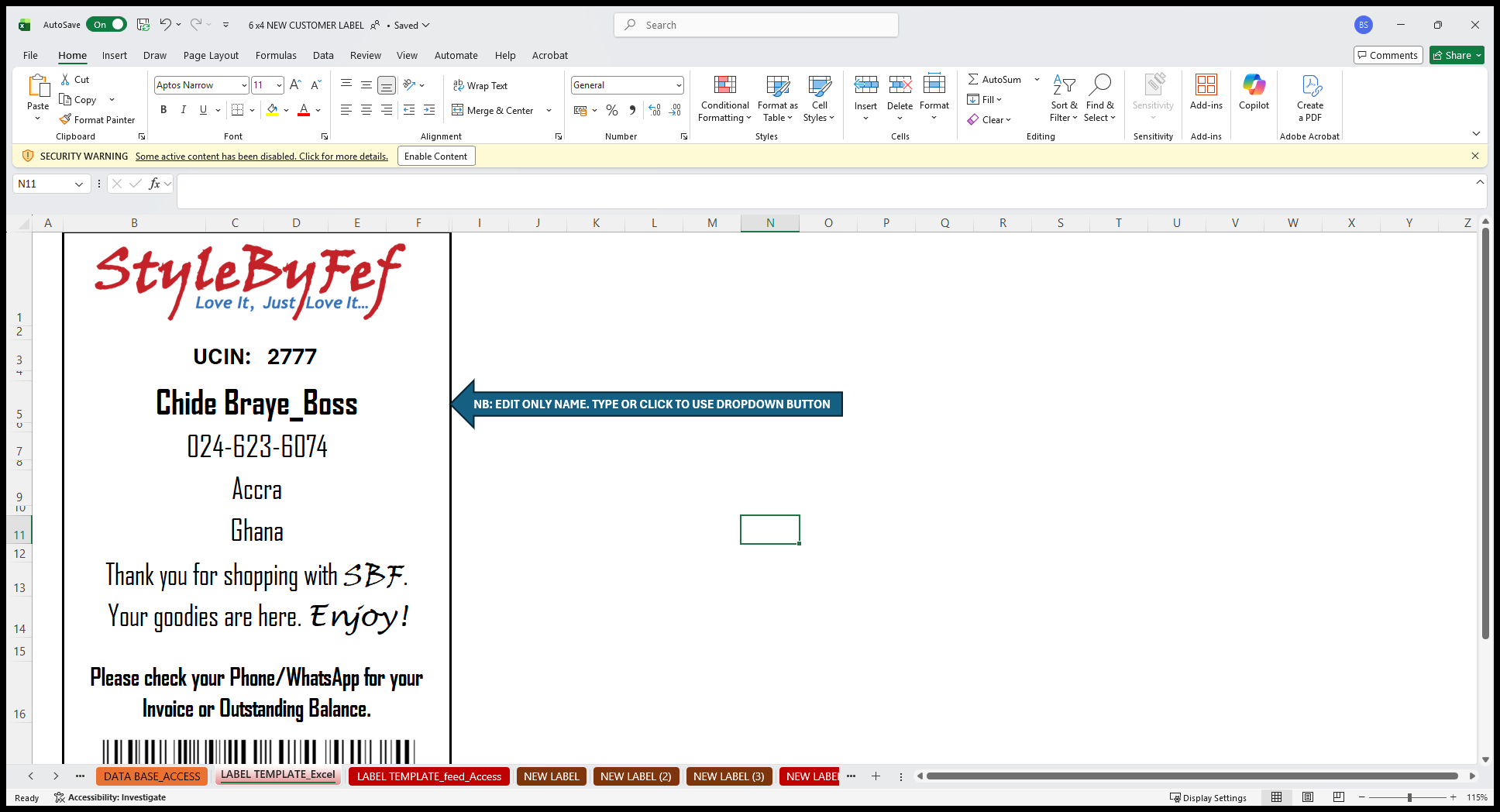Click on "SECURITY WARNING Some active content has been disabled . Click for more details . Enable Content"