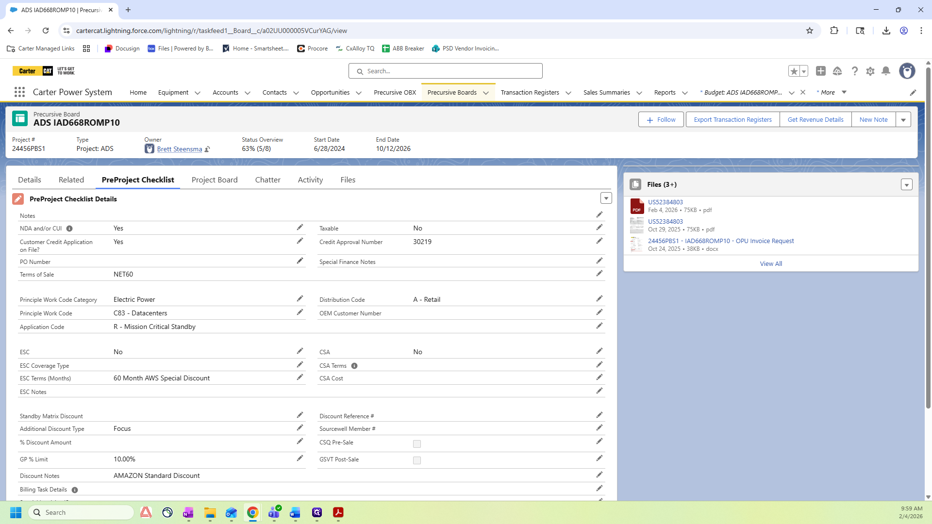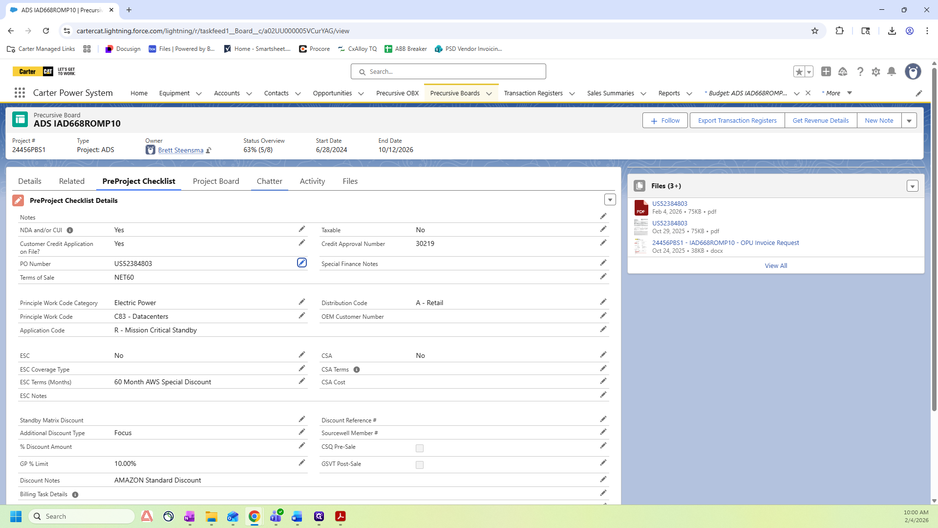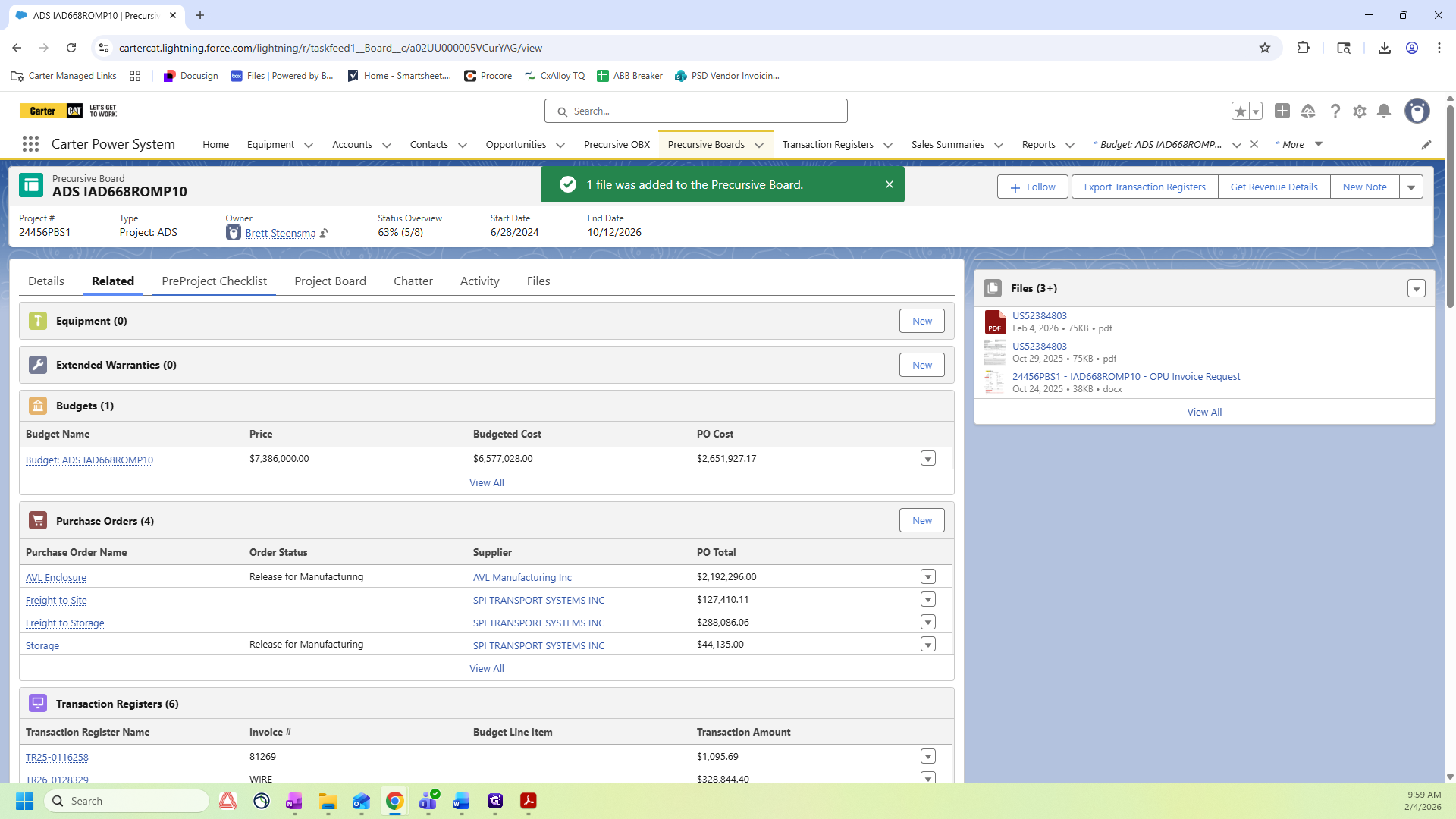 If the purchase order and Budget match, as well as the Need By Date, move on to the next steps. Steps 7-10 walk through how to attach a PDF copy of the purchase order to the Salesforce Board.