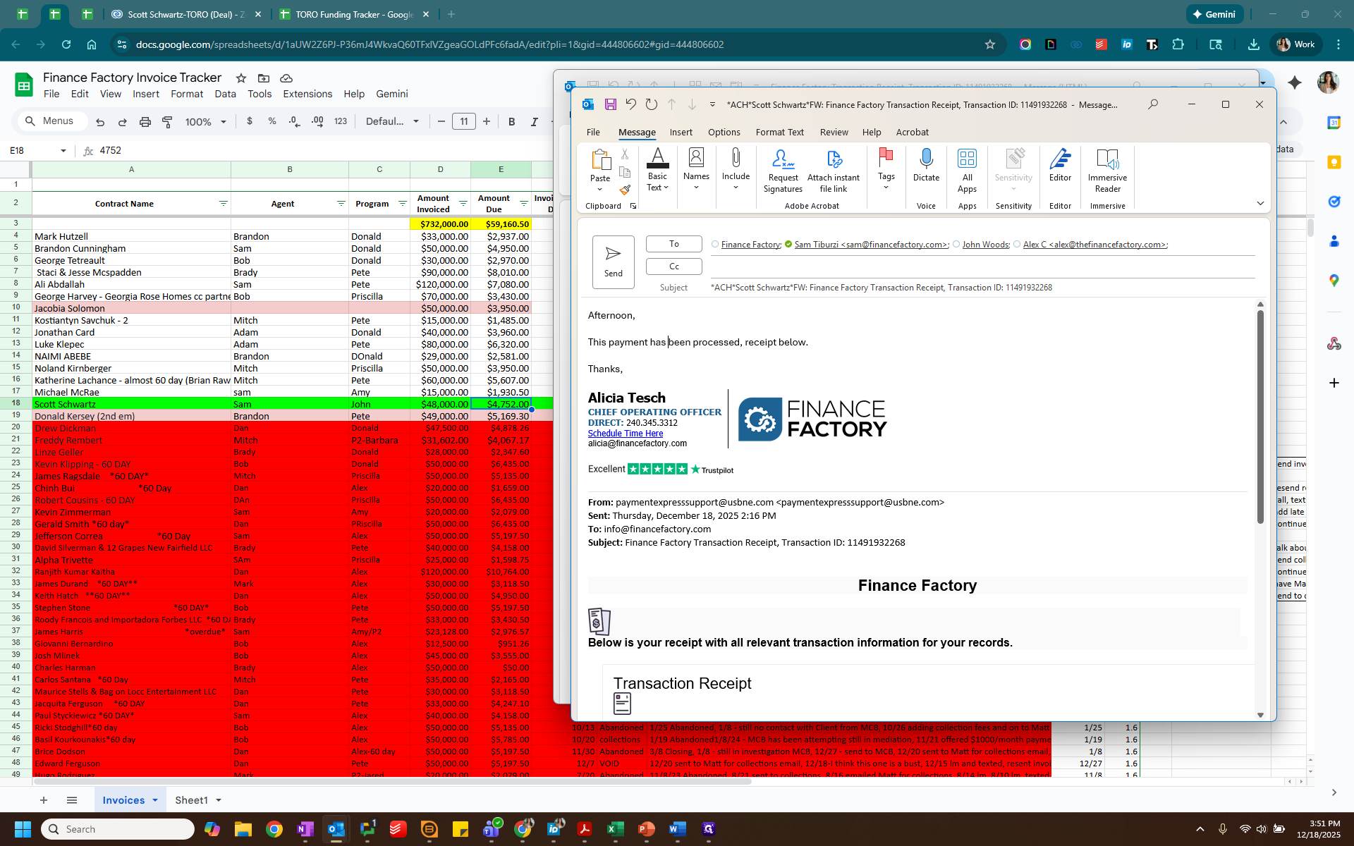 This video will show you how to record a payment that has already been made. If a client pays using the link in the invoice, you will receive an email notification. It will indicate either a check sale or a card sale, along with the client's information at the bottom. First, find the clients on the Toro tracker.