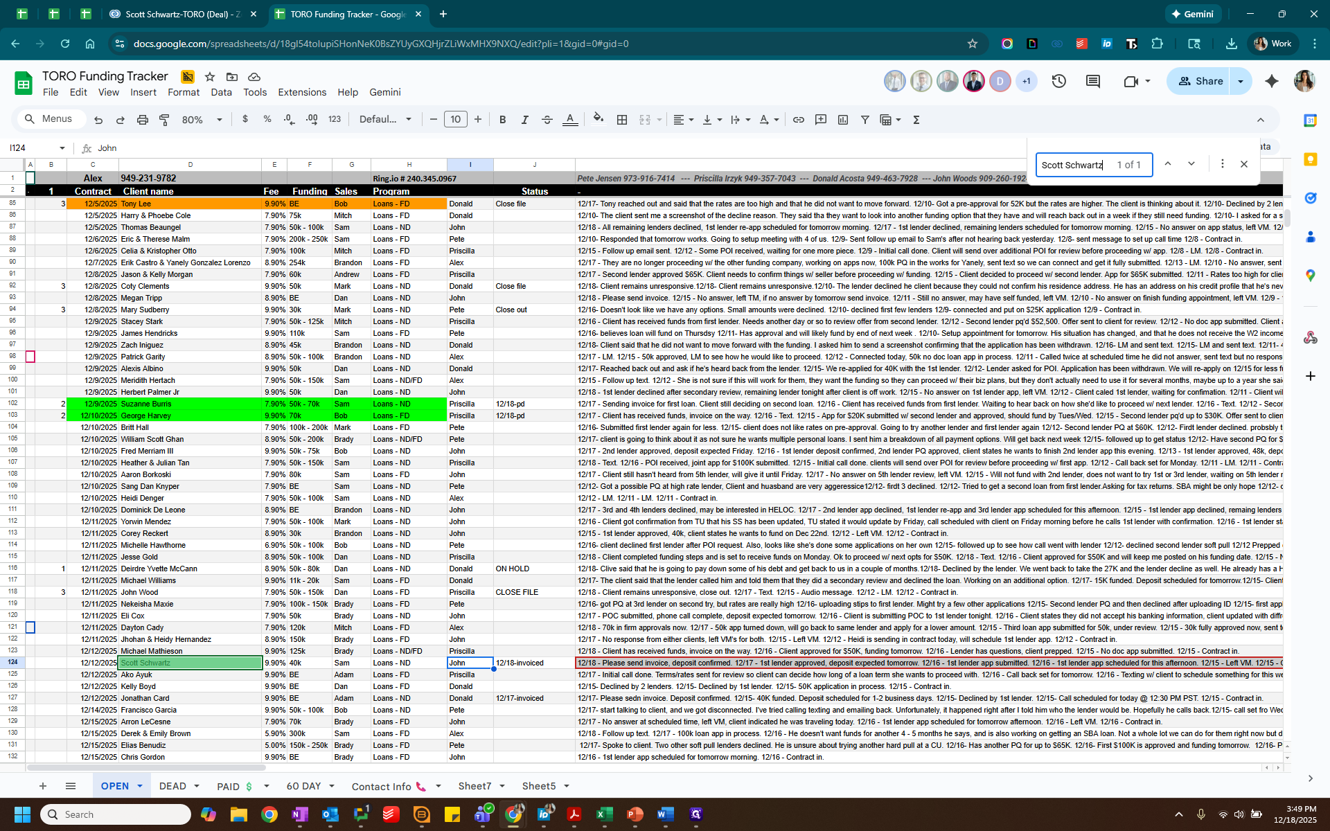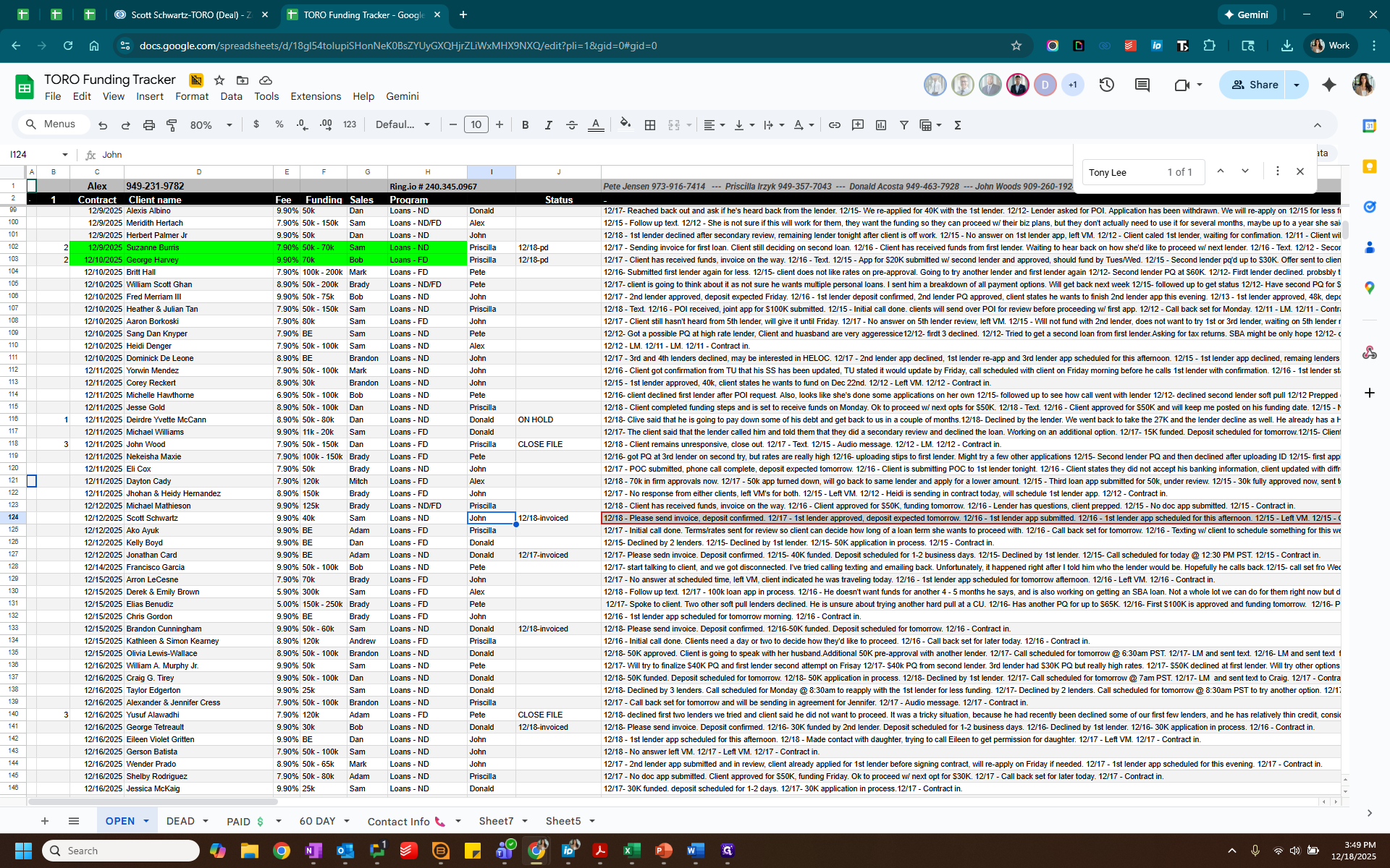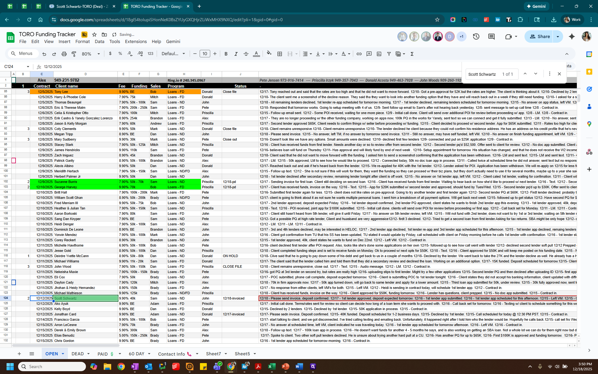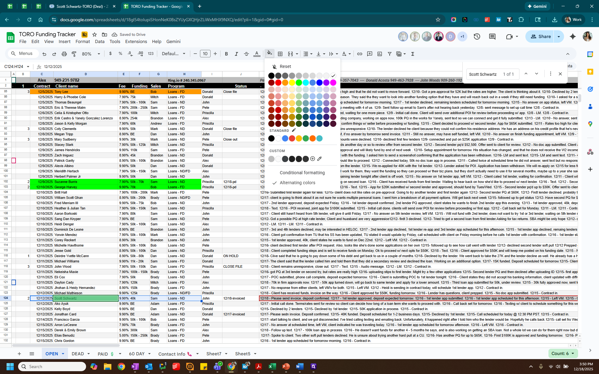Label this as "2" for Paid. Highlight the paid client in green and change the status to "paid."